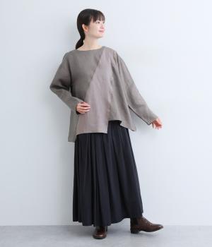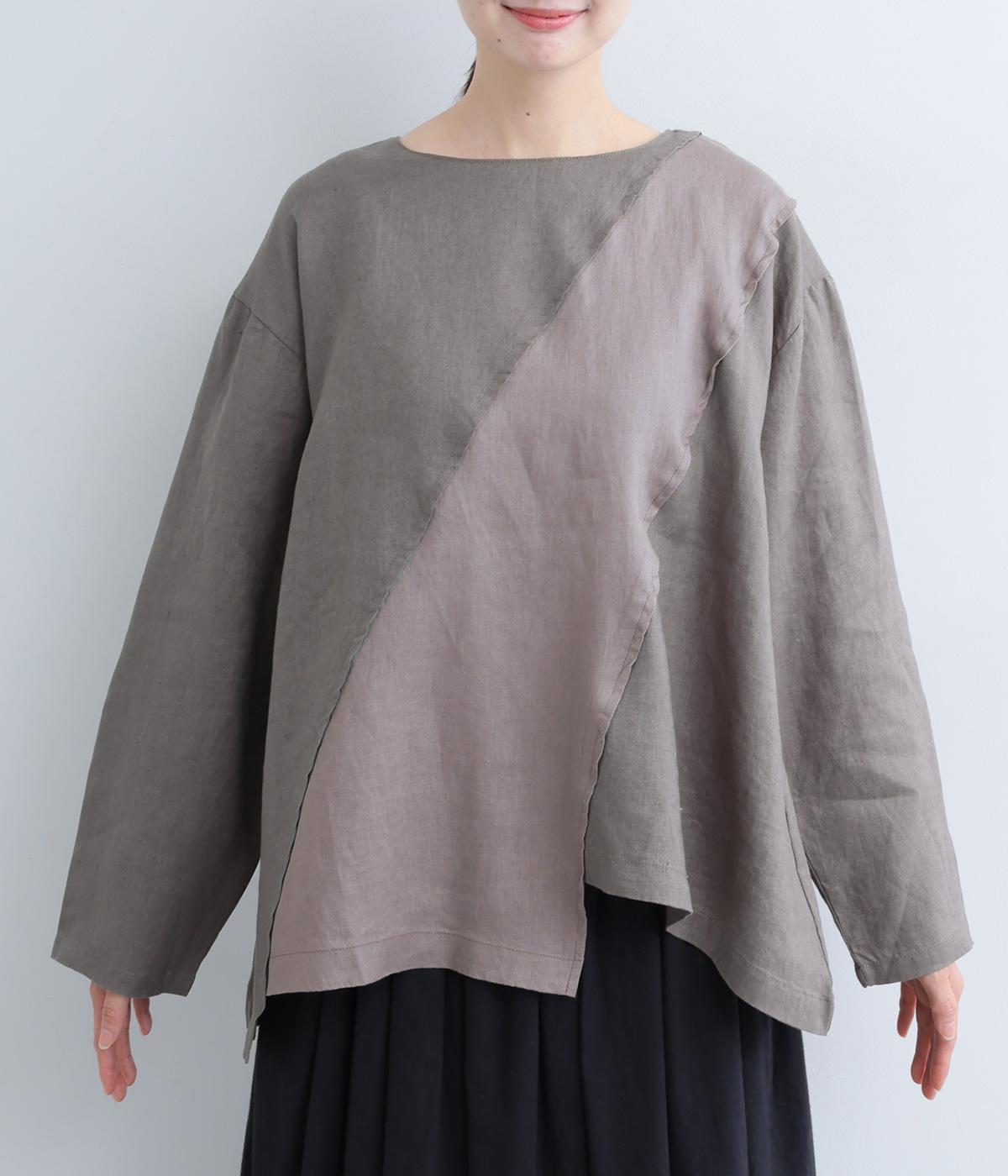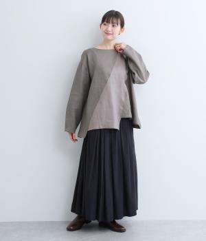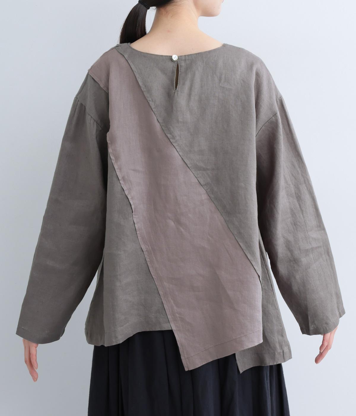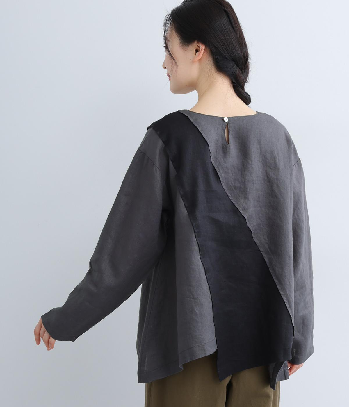 前後に斜めに入れた配色切り替えがポイントのプルオーバー。シンプルながらも大胆なデザインが、着こなしをスタイリッシュに導きます。アシンメトリーなヘムラインがシルエットに動きをプラス。後ろネックには着脱をアシストする涙開きをつけました。