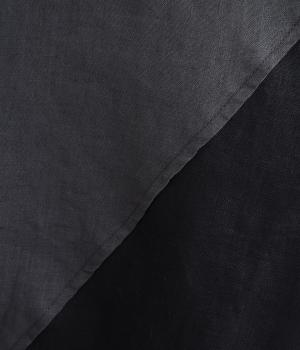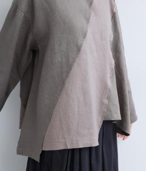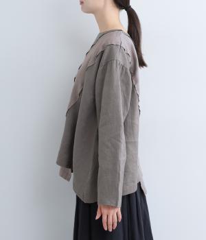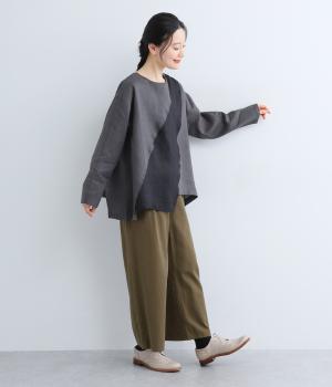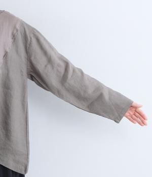 14番手リネン糸を使用した、ほどよい厚みとタフさが特徴の生地。麻ならではのハリコシがありながらも、着込むほどにくったりとしたやわらかな風合いに変化します。