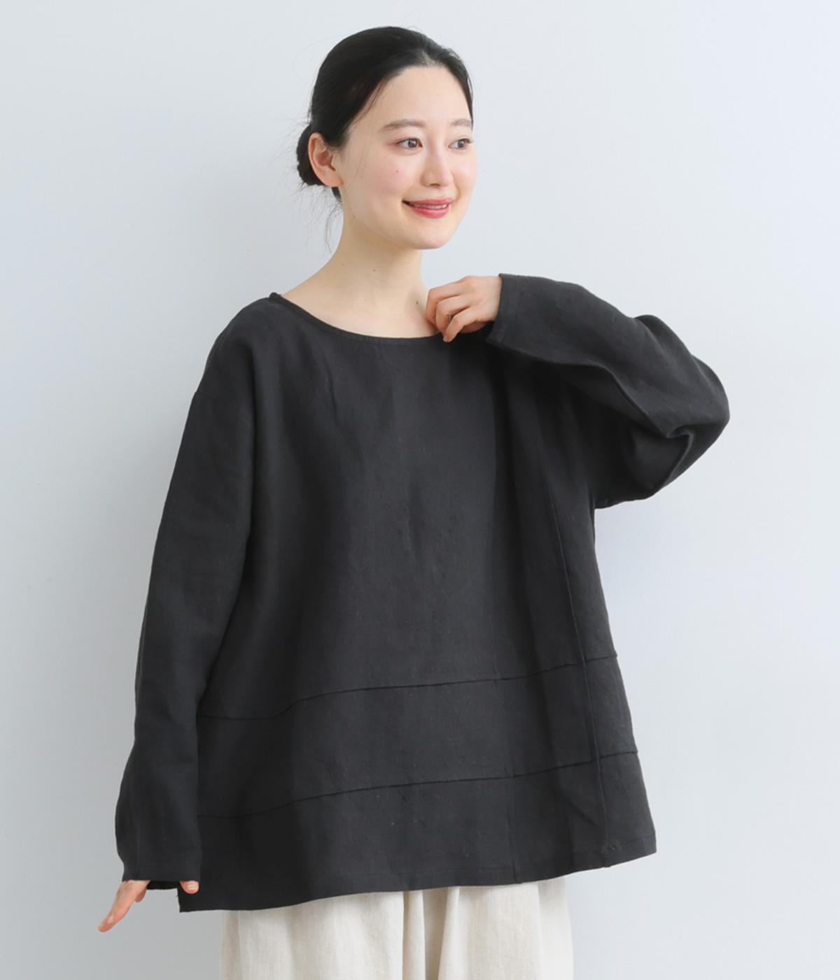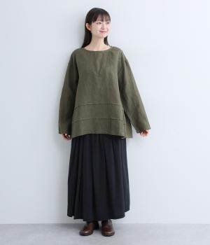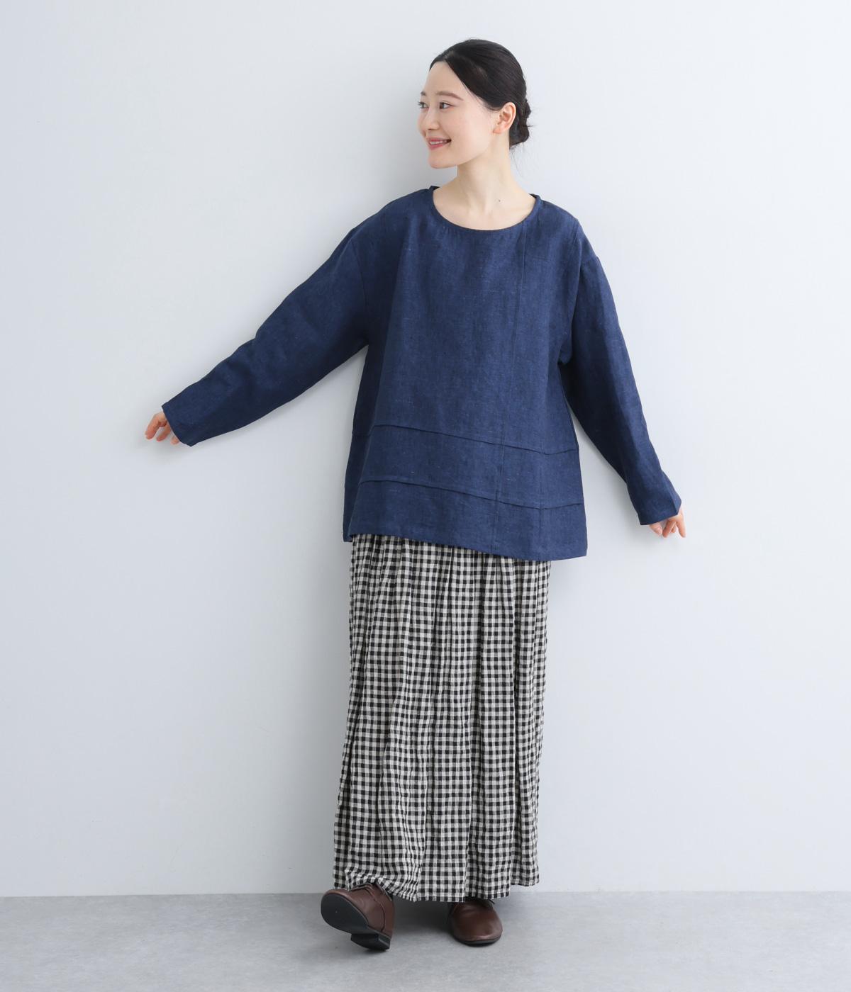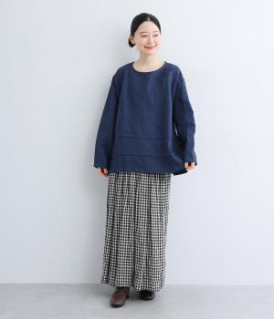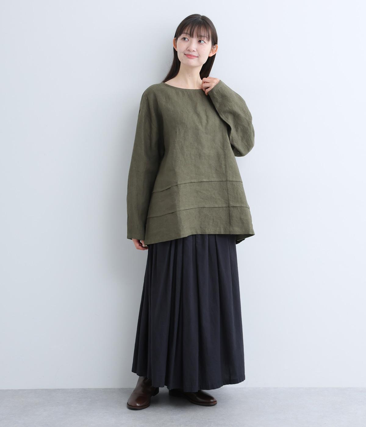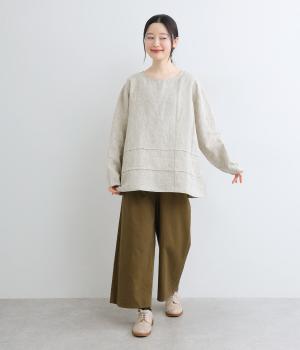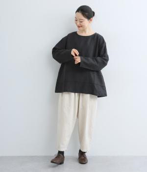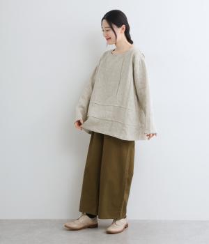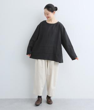 前後の身頃にタックを入れたさりげないデザインが光るプルオーバー。ゆとりのあるシルエットを、縦横に入ったタックがすっきりと見せてくれます。ナチュラルな生地の風合いが映えるシンプルさが◎。活用度が高く、長く愛用したくなる一枚です。