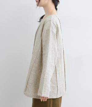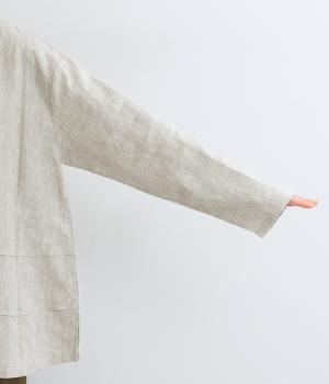 太めの9番手リネン糸を使用して密度高く織りあげた、しっかりとした厚みとハリコシのあるタフな生地感です。表面のネップも映え、ナチュラルな風合いを存分にたのしめます。