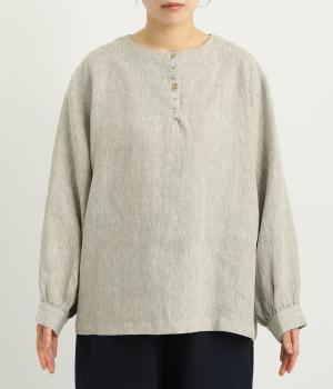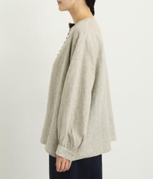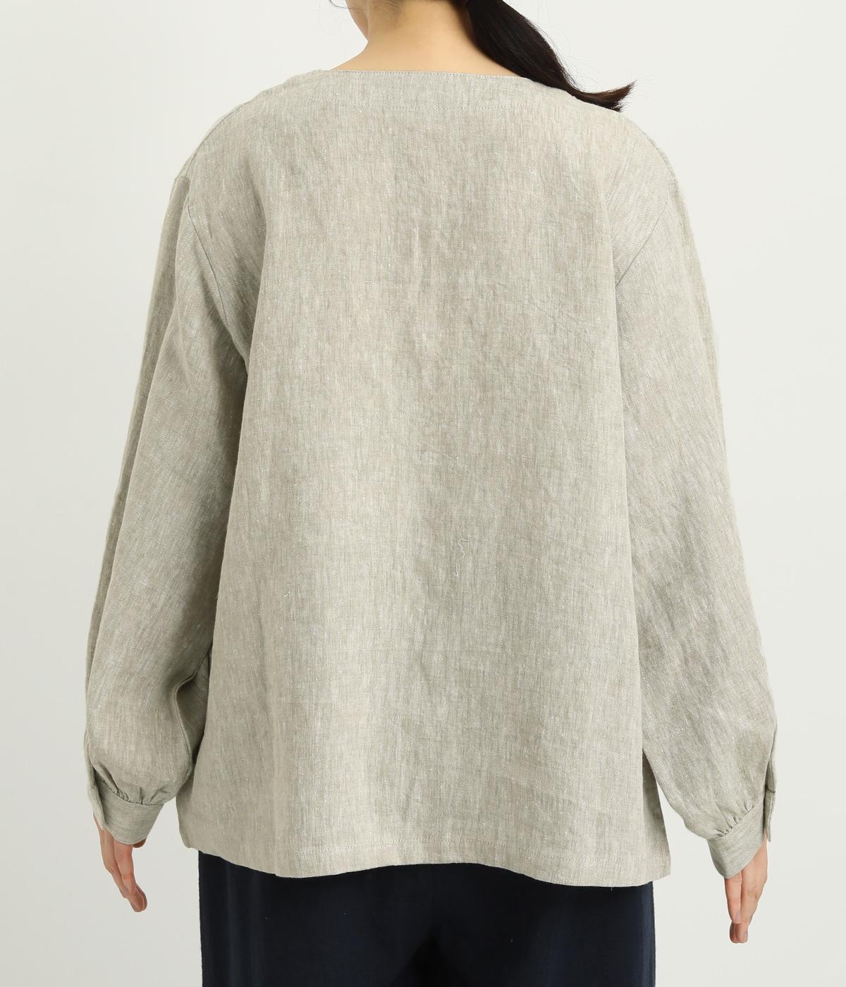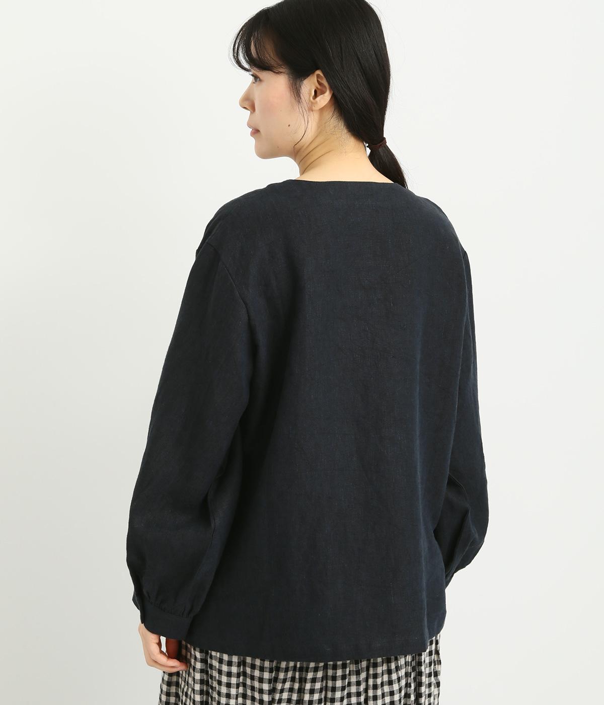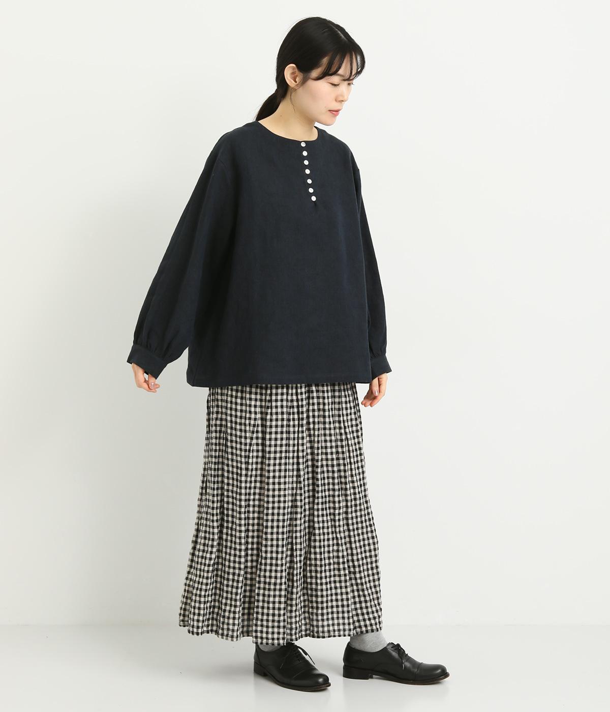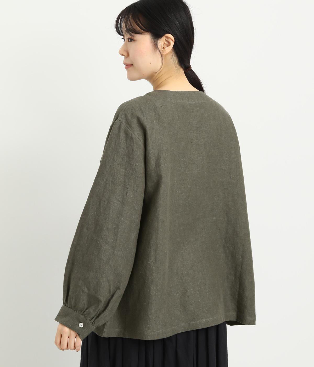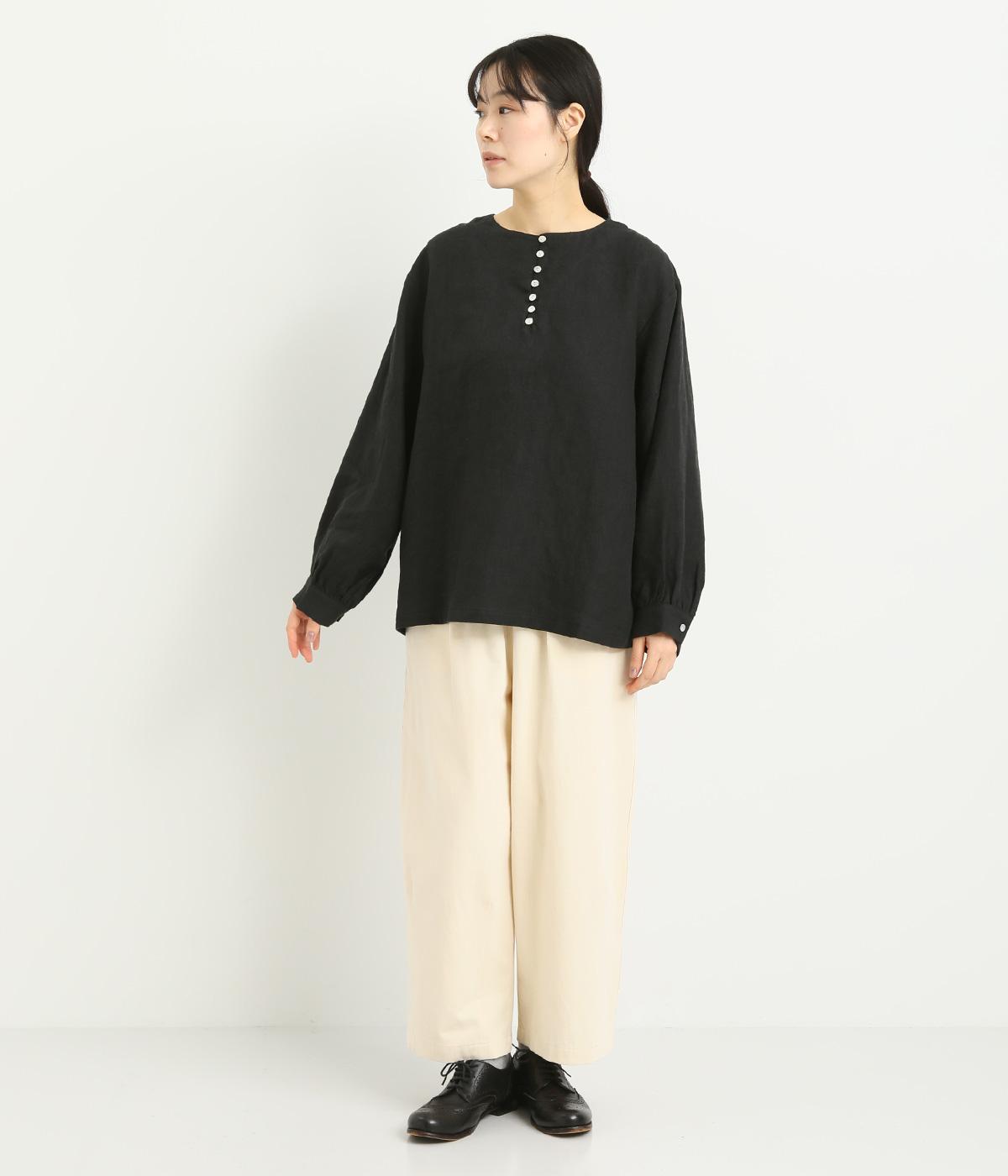 ほどよく厚みがあり、独特のハリ感をあじわえるリネンを使用しました。しっかりとした生地感でロングシーズン着まわしやすく、着るほどになじんでいく経年変化も魅力です。