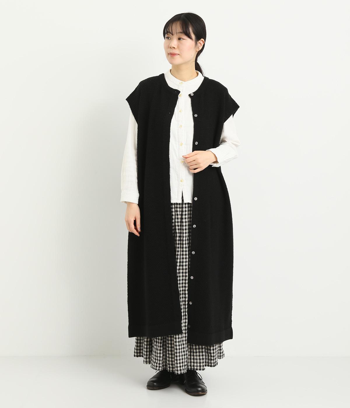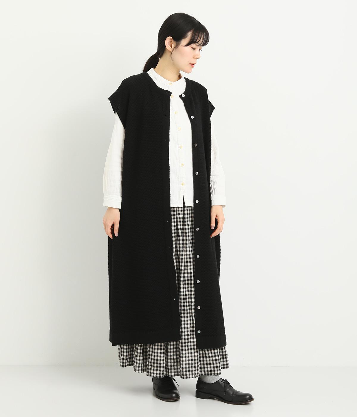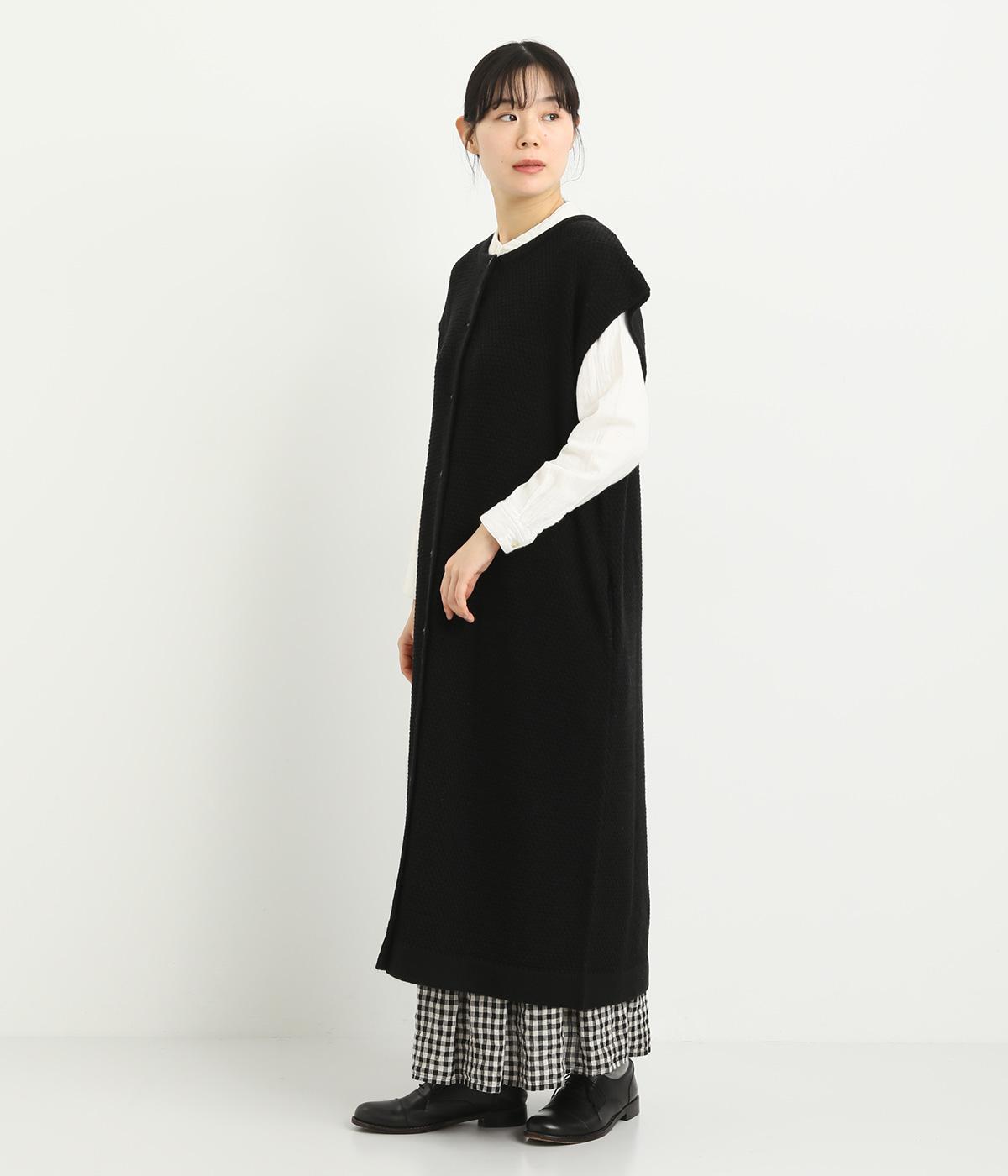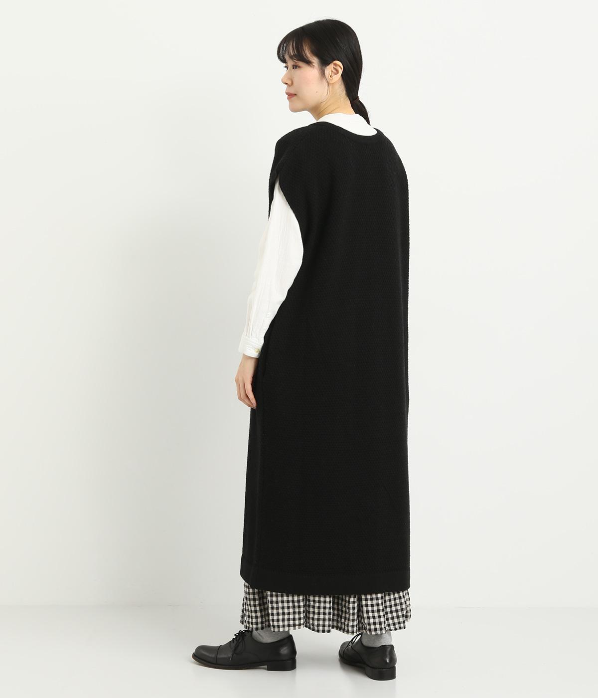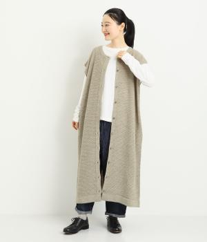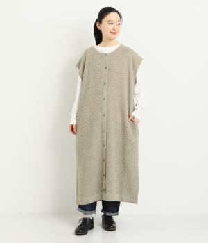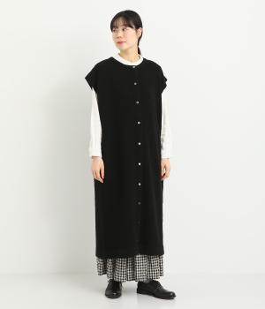 シンプルで合わせやすく、着こなしにタテラインを加えてすっきりまとめてくれるロングベスト。前あきでラフに羽織ったり、ノースリーブワンピースのようにメインにしたりと着まわしも◎。ロング丈にうれしいポケットつきです。