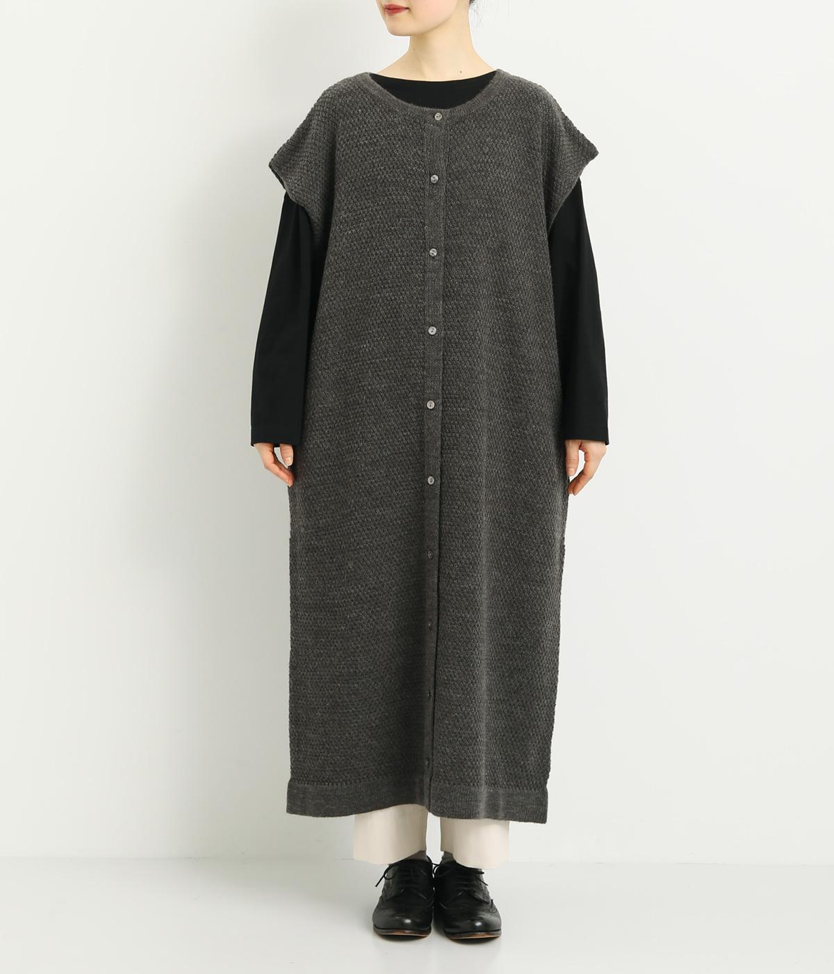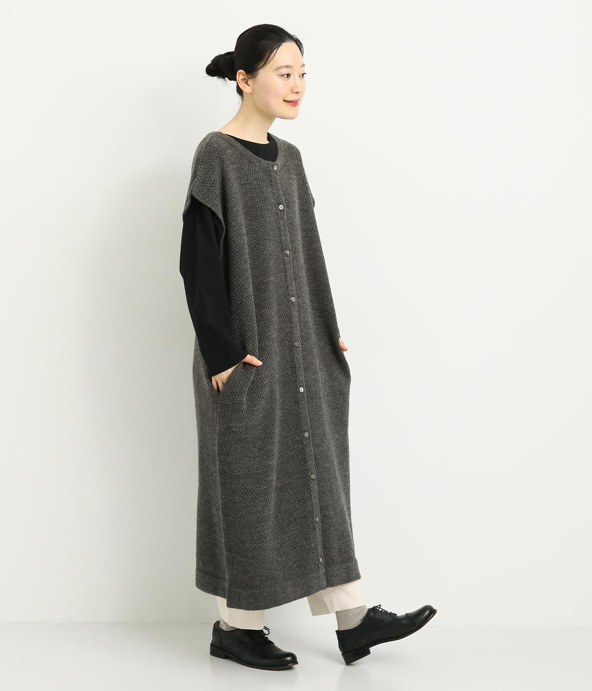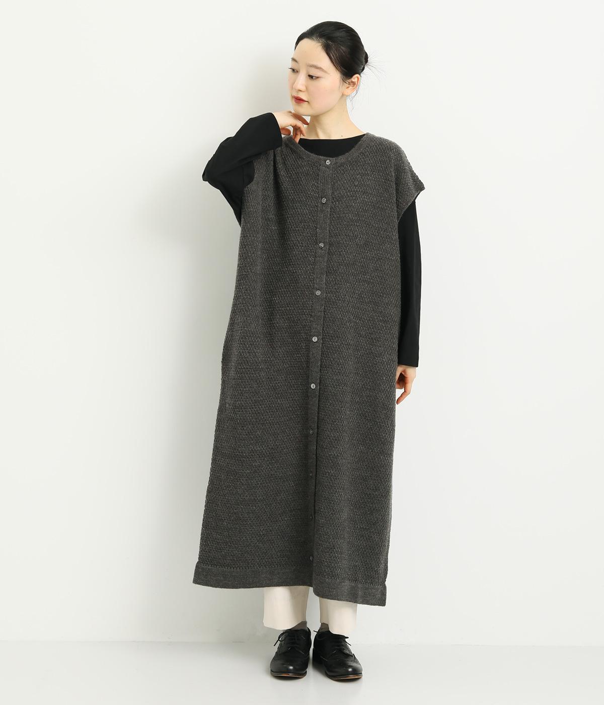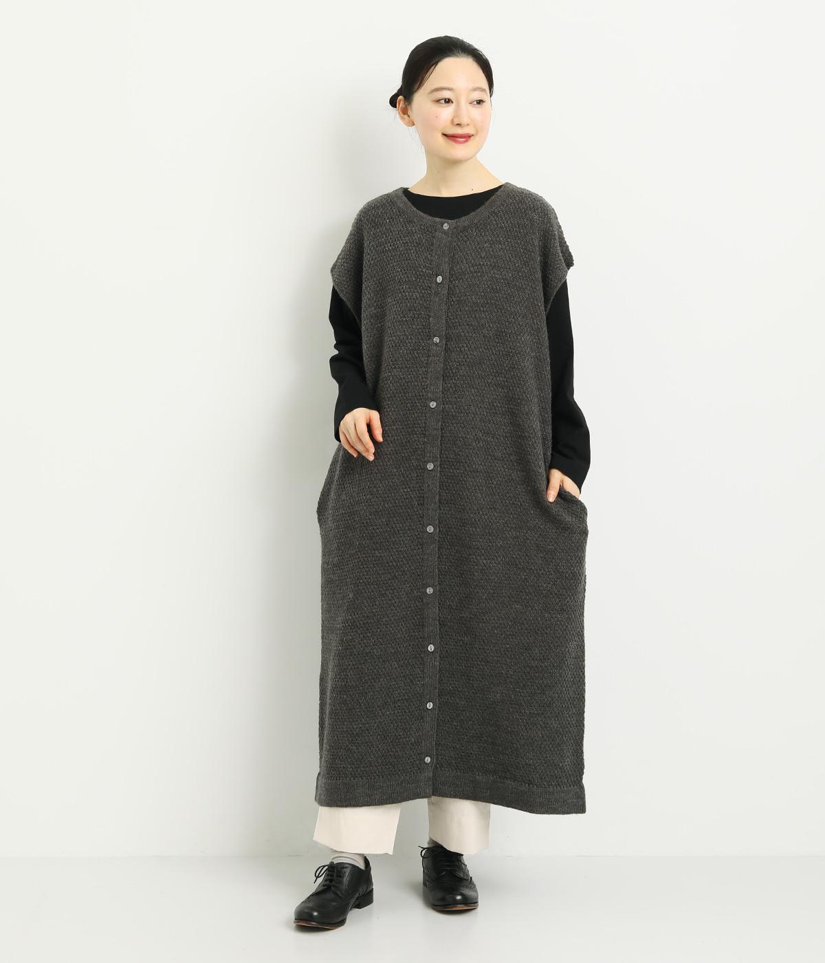 シンプルで合わせやすく、着こなしにタテラインを加えてすっきりまとめてくれるロングベスト。前あきでラフに羽織ったり、ノースリーブワンピースのようにメインにしたりと着まわしも◎。ロング丈にうれしいポケットつきです。