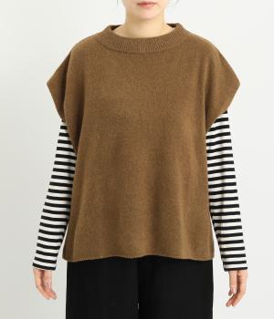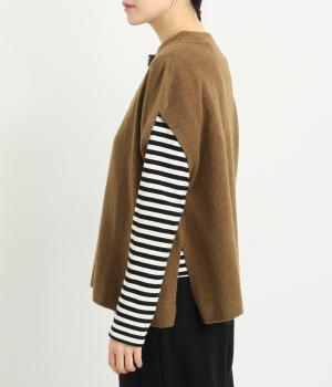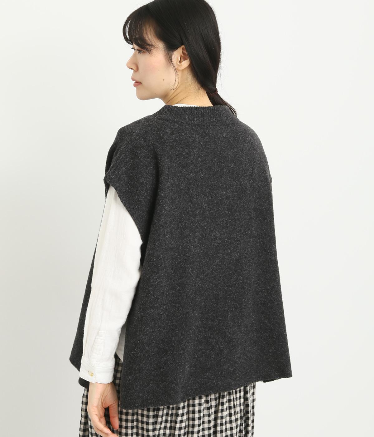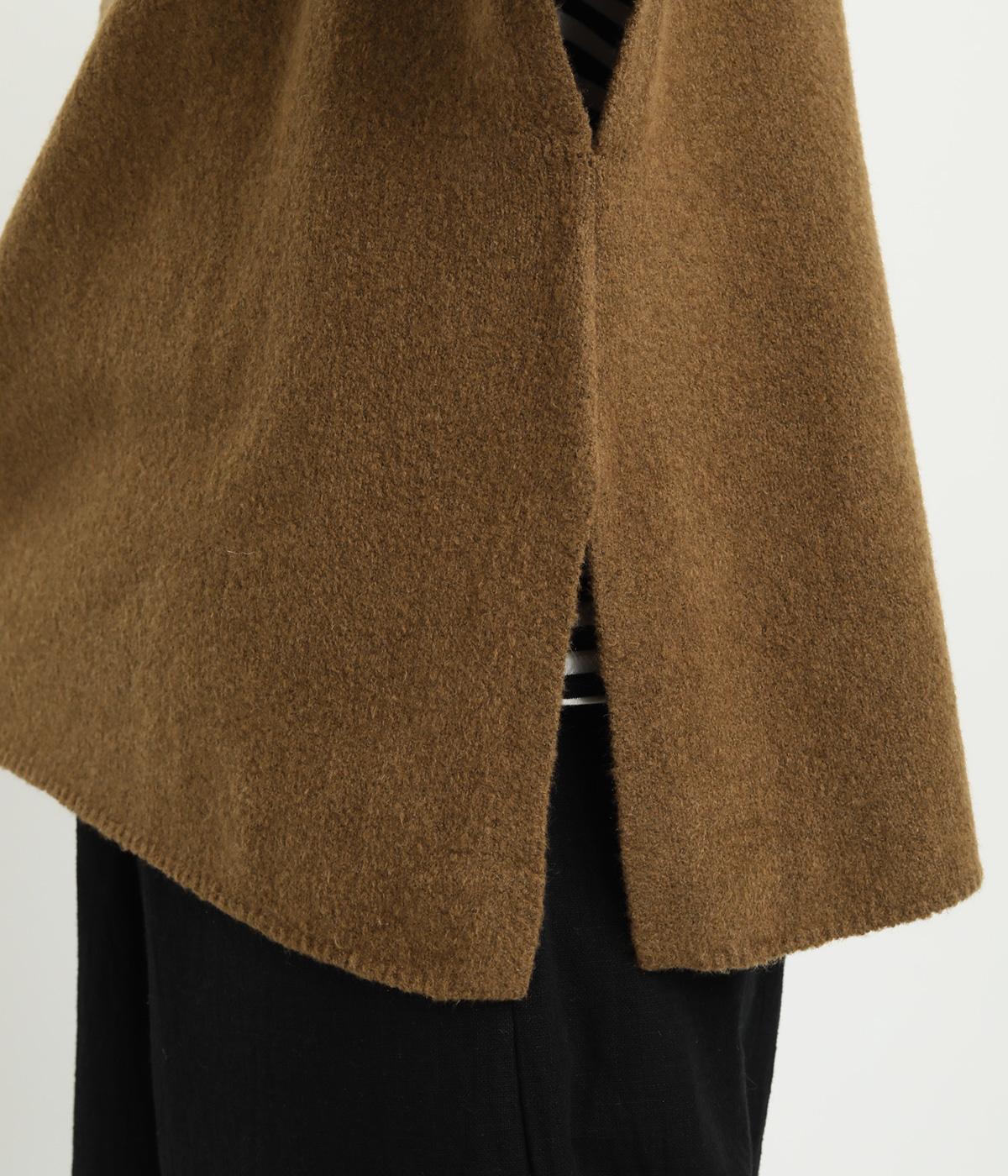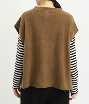ふんわりとした心地よい素材感を惹き立てる、シンプル仕立てのベスト。ドロップショルダーにスリット入り身頃でリラックス感があります。やや立ち上がったモックネックが顔まわりにさり気なくニュアンスを。