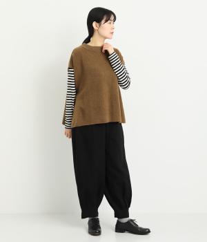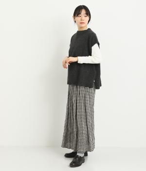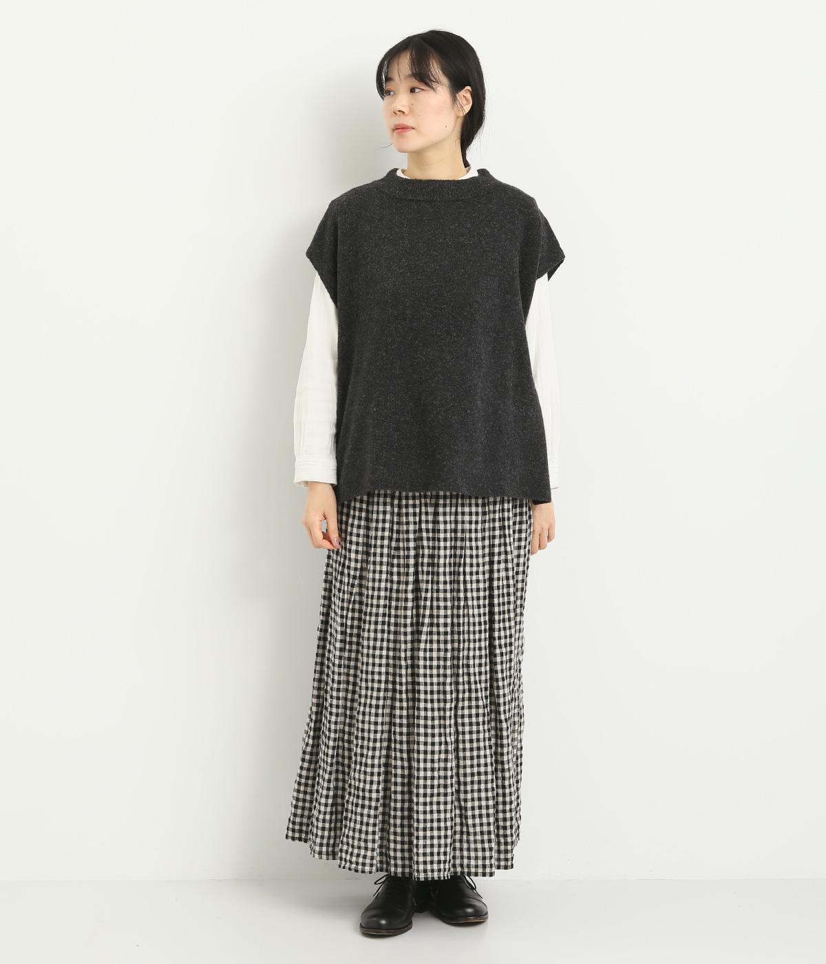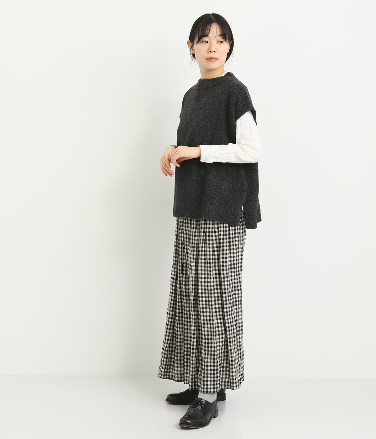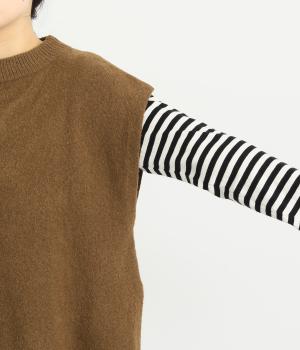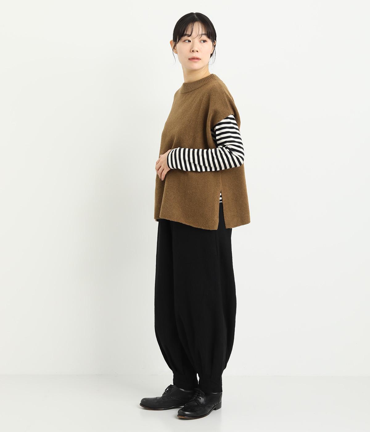 ふんわりとした心地よい素材感を惹き立てる、シンプル仕立てのベスト。ドロップショルダーにスリット入り身頃でリラックス感があります。やや立ち上がったモックネックが顔まわりにさり気なくニュアンスを。