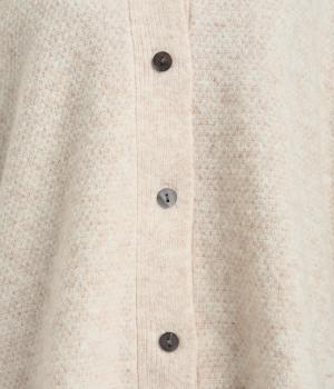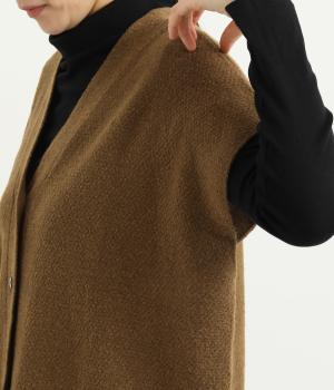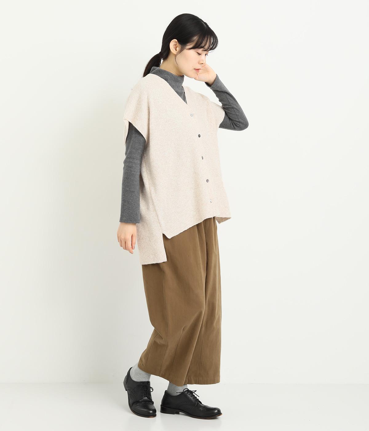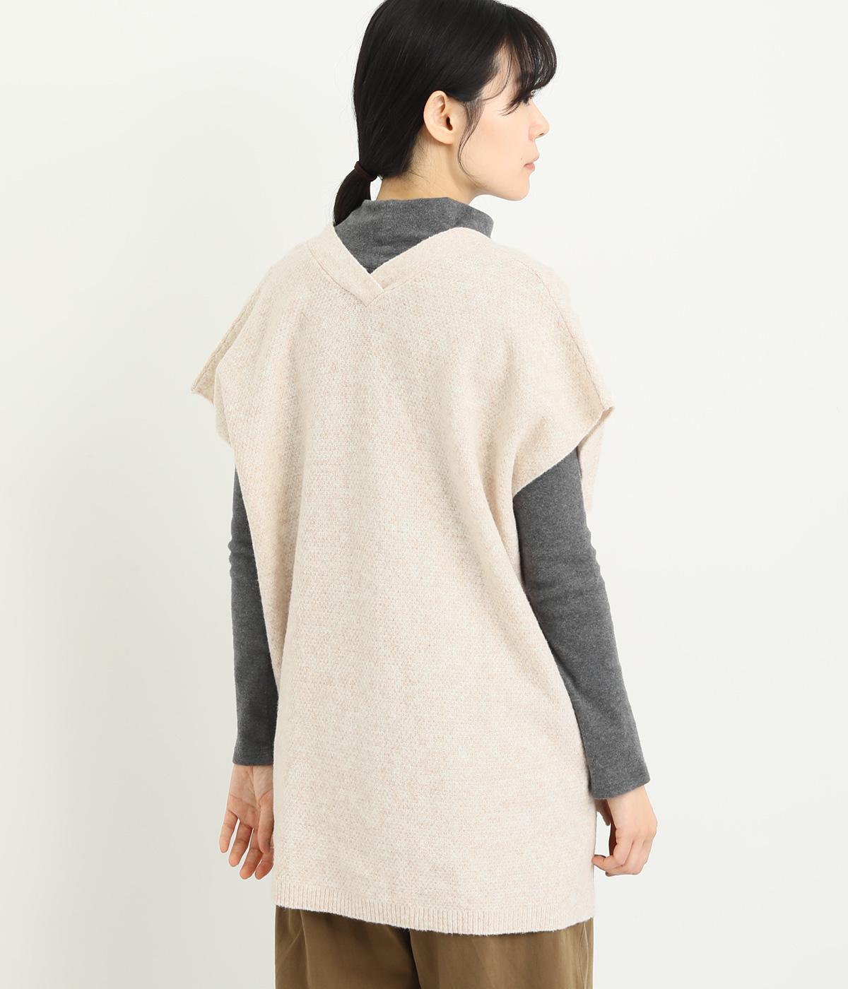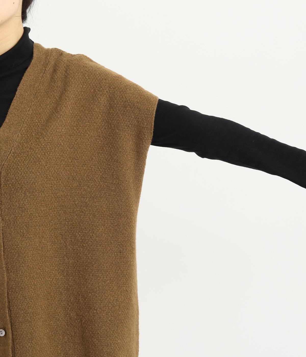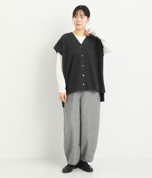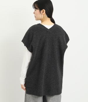 ベスト感覚でレイヤードがたのしめるフレンチスリーブのニットカーディガン。光沢のあるシェルボタンがワンポイントになり、顔まわりはVネックですっきりと。着丈は前後差をつけて横姿もお洒落見えを叶えました。