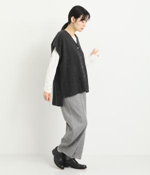 ふんわりとしたソフトな肌あたりにやわらかな伸び、あたたかみのある表面感が特徴的な混紡ニット。ウール混で保温性を出しながらもポリエステルの混率を高めて軽やかに仕上げました。