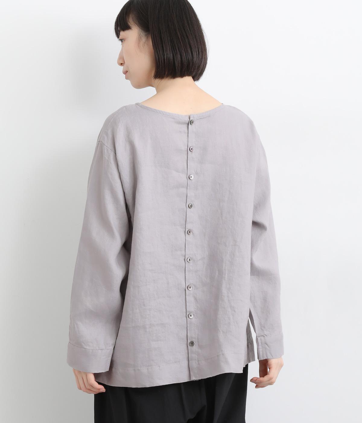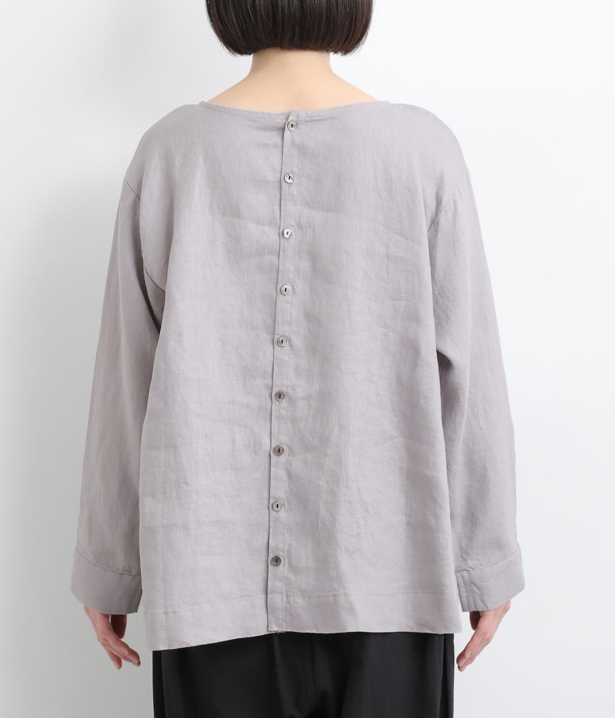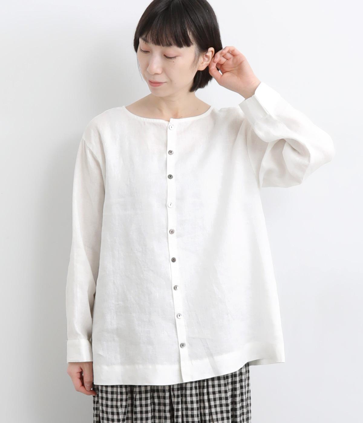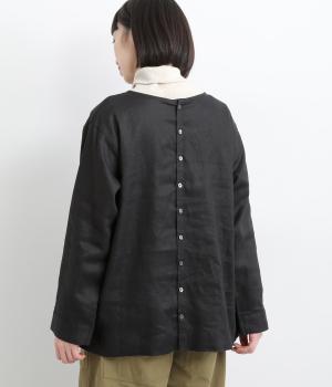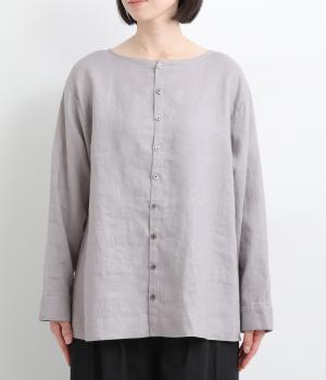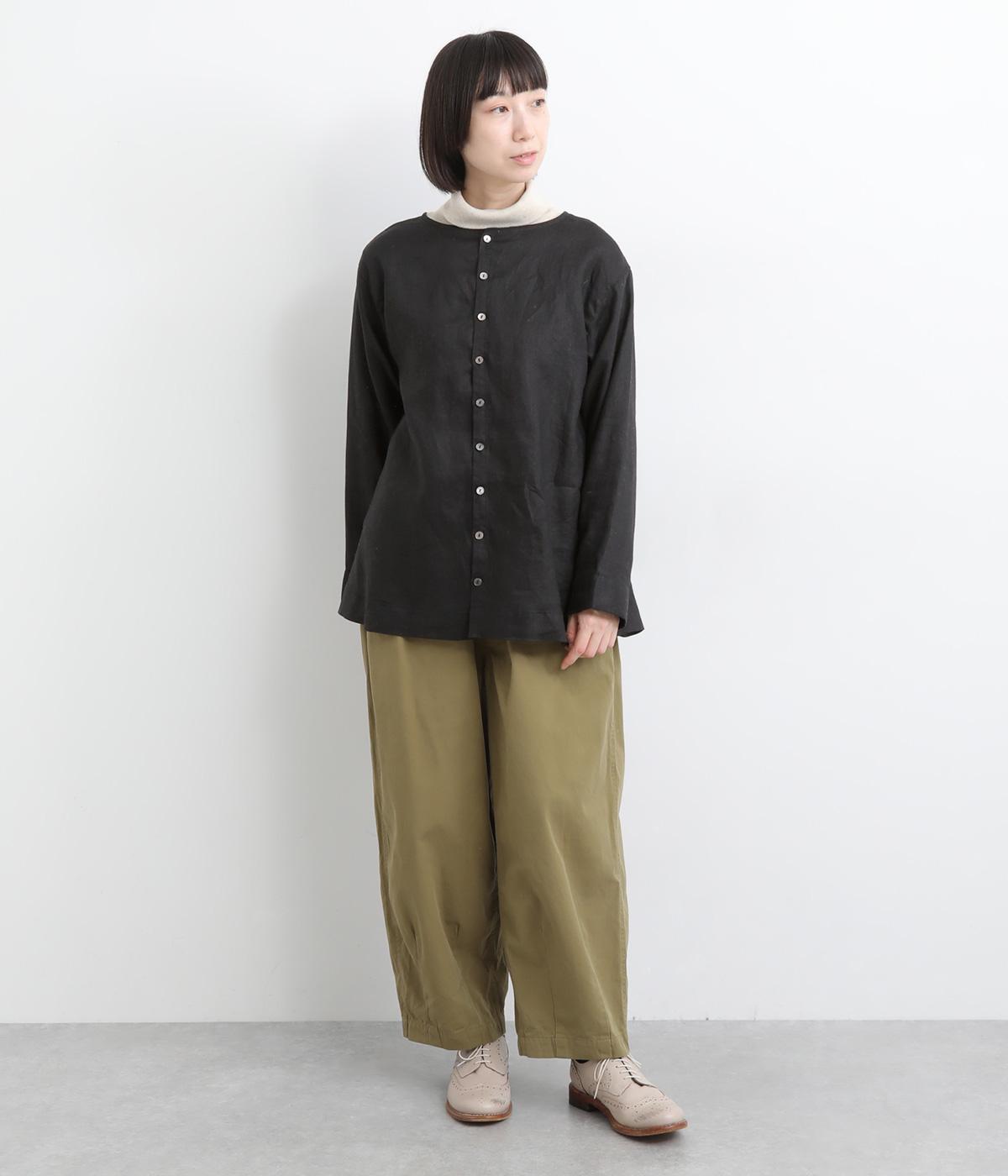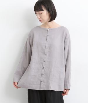 気分に合わせた着こなしをたのしめる、前後2way仕様のブラウスです。ボタン面はほどよいきちんと感があり、プルオーバー面はリラックスした佇まいに。ゆったりシルエットとすっきりとしたネックラインで、レイヤードスタイルにも便利な一枚です。