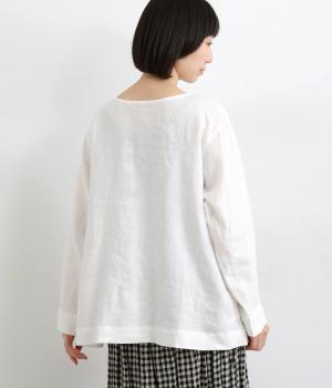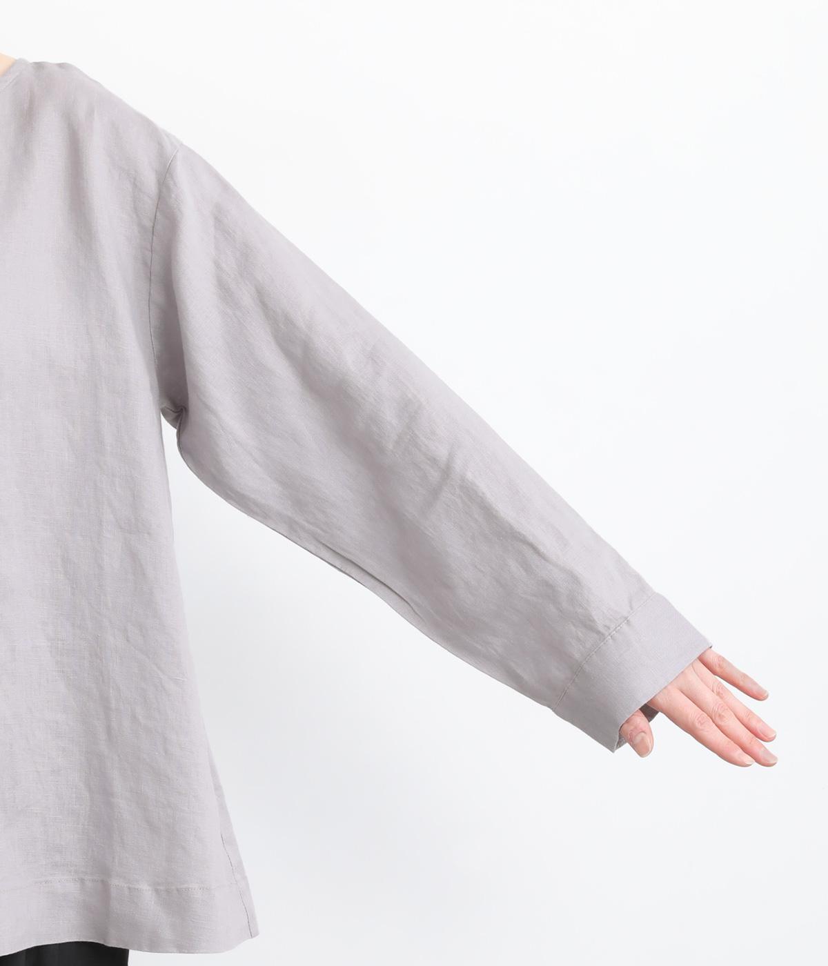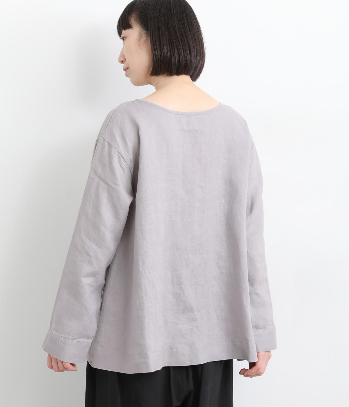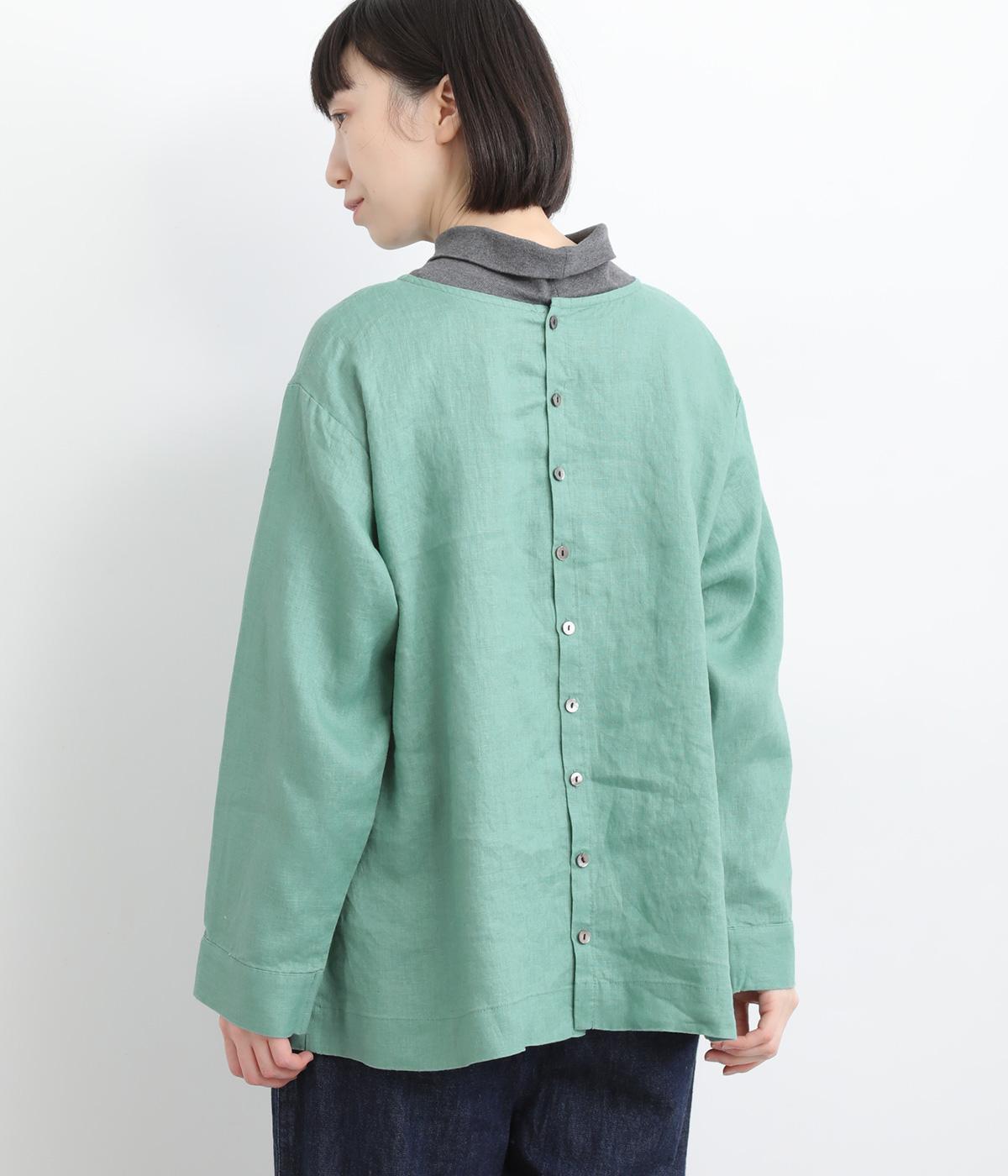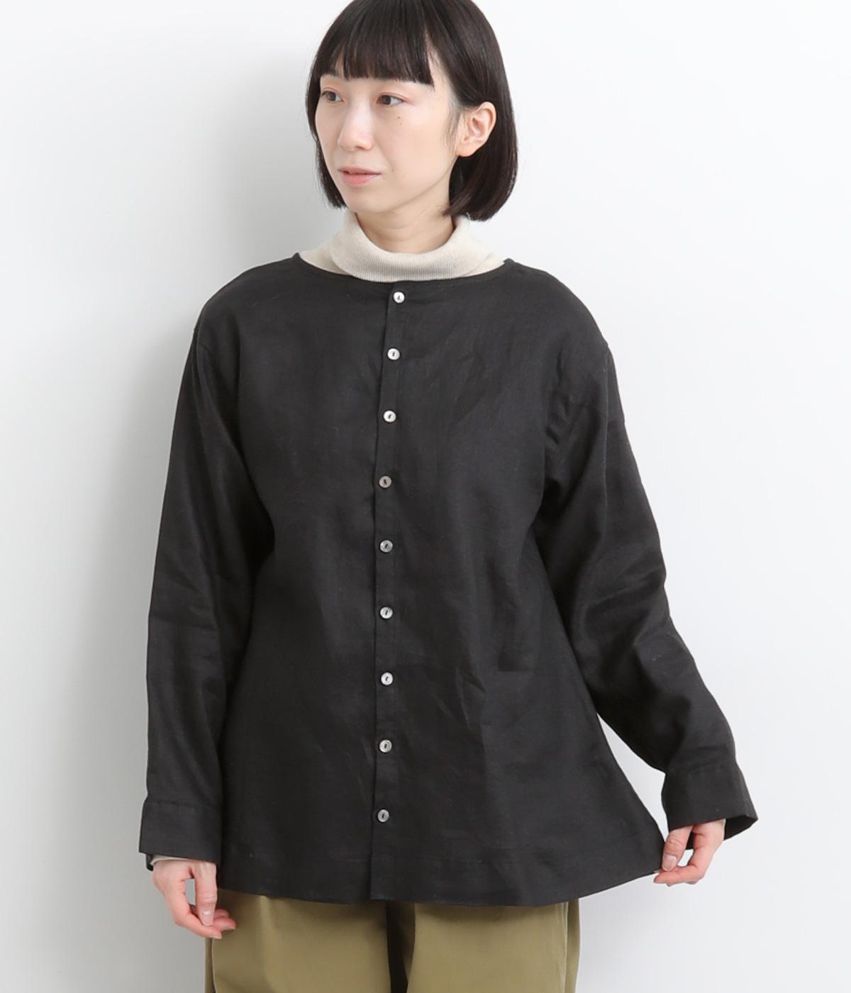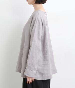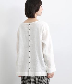 気分に合わせた着こなしをたのしめる、前後2way仕様のブラウスです。ボタン面はほどよいきちんと感があり、プルオーバー面はリラックスした佇まいに。ゆったりシルエットとすっきりとしたネックラインで、レイヤードスタイルにも便利な一枚です。