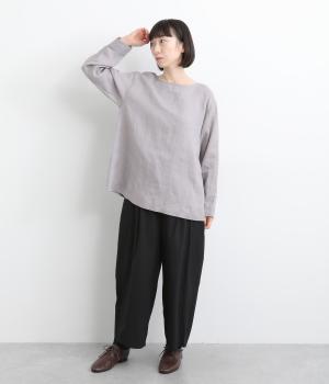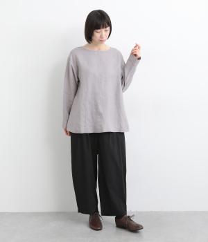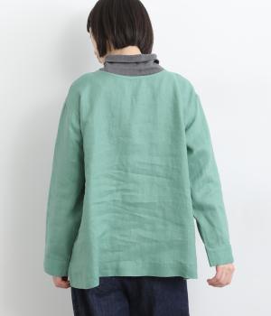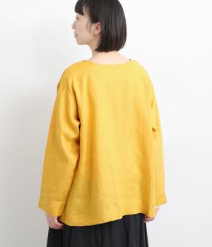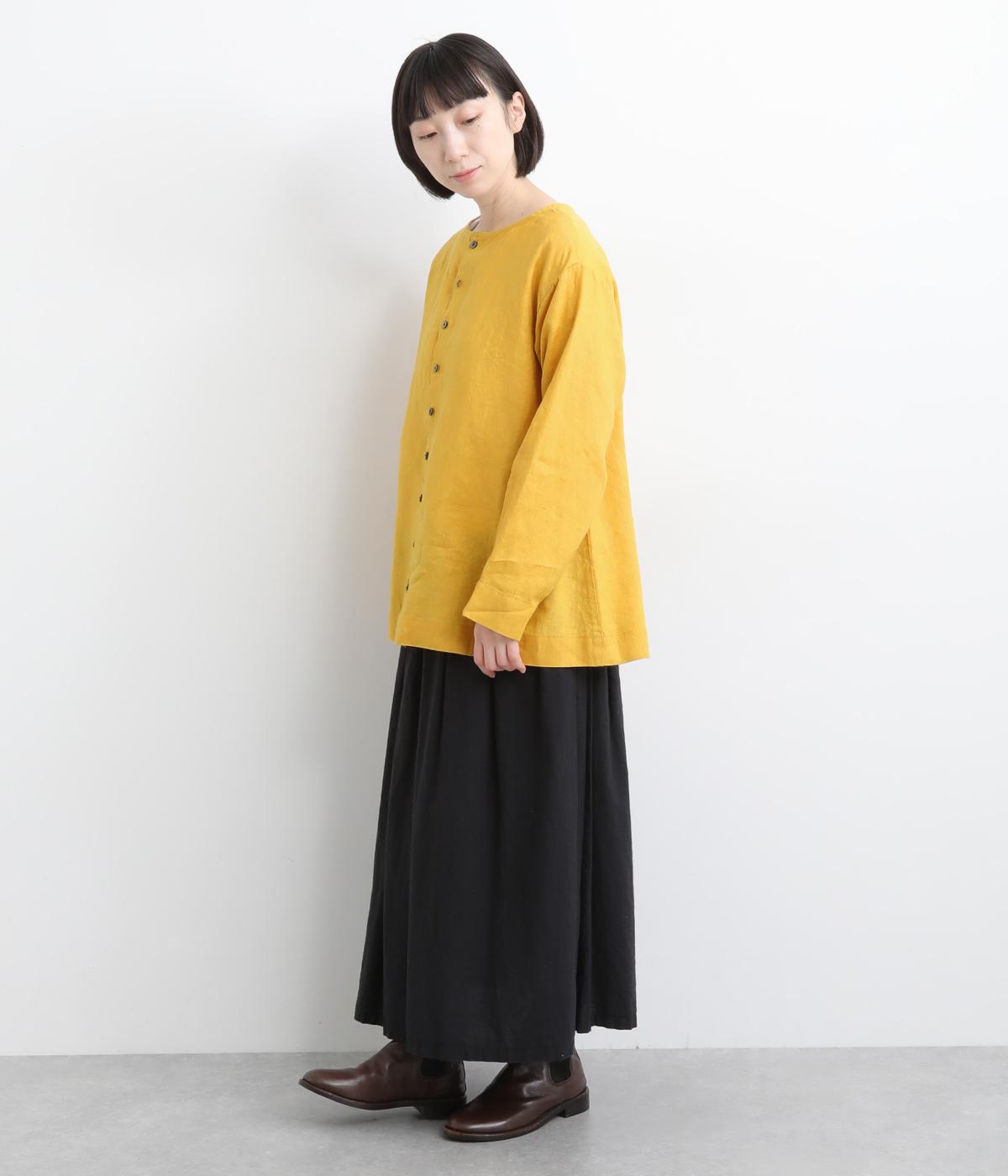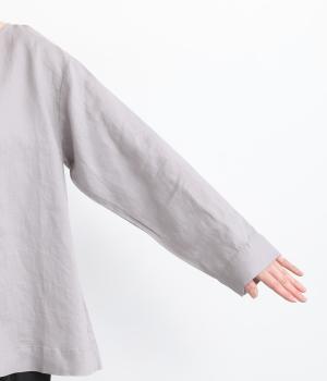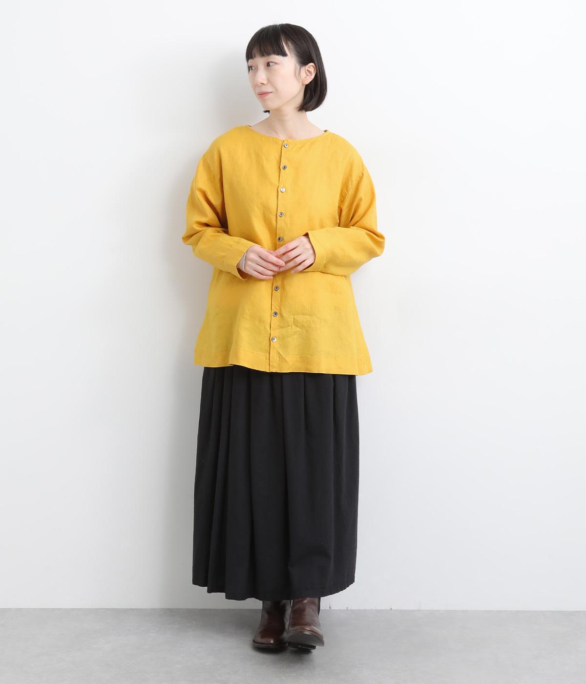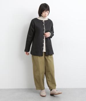 自然なシワが表情をつくる14番手リネンで仕立てました。ほどよい厚みとさらりとしたシャリ感が心地よく、着るほどに体になじむ素材です。素朴さのなかに上品さが漂う風合いで、季節を通してやわらかく寄り添います。