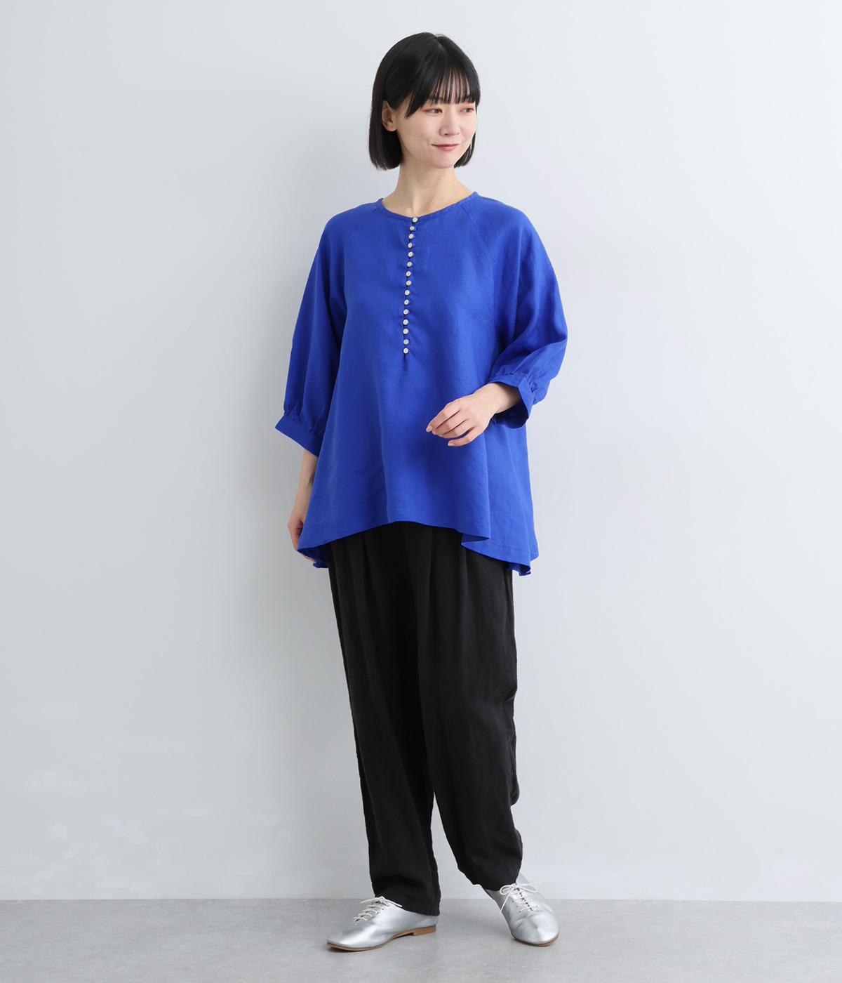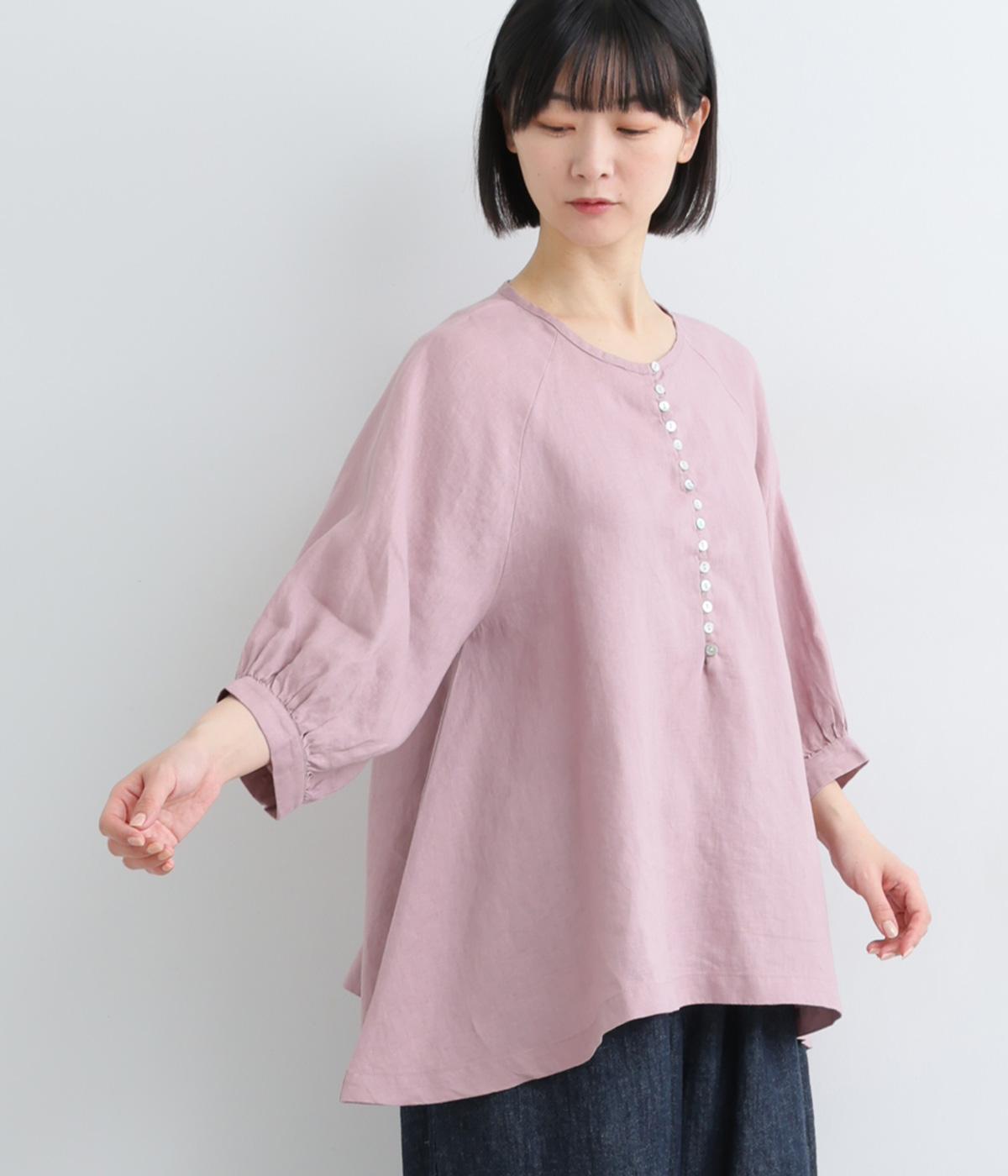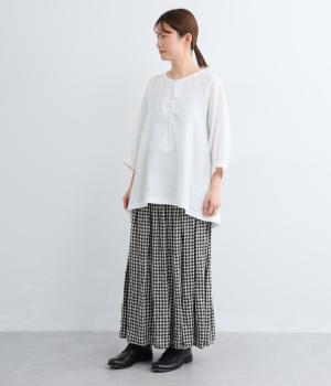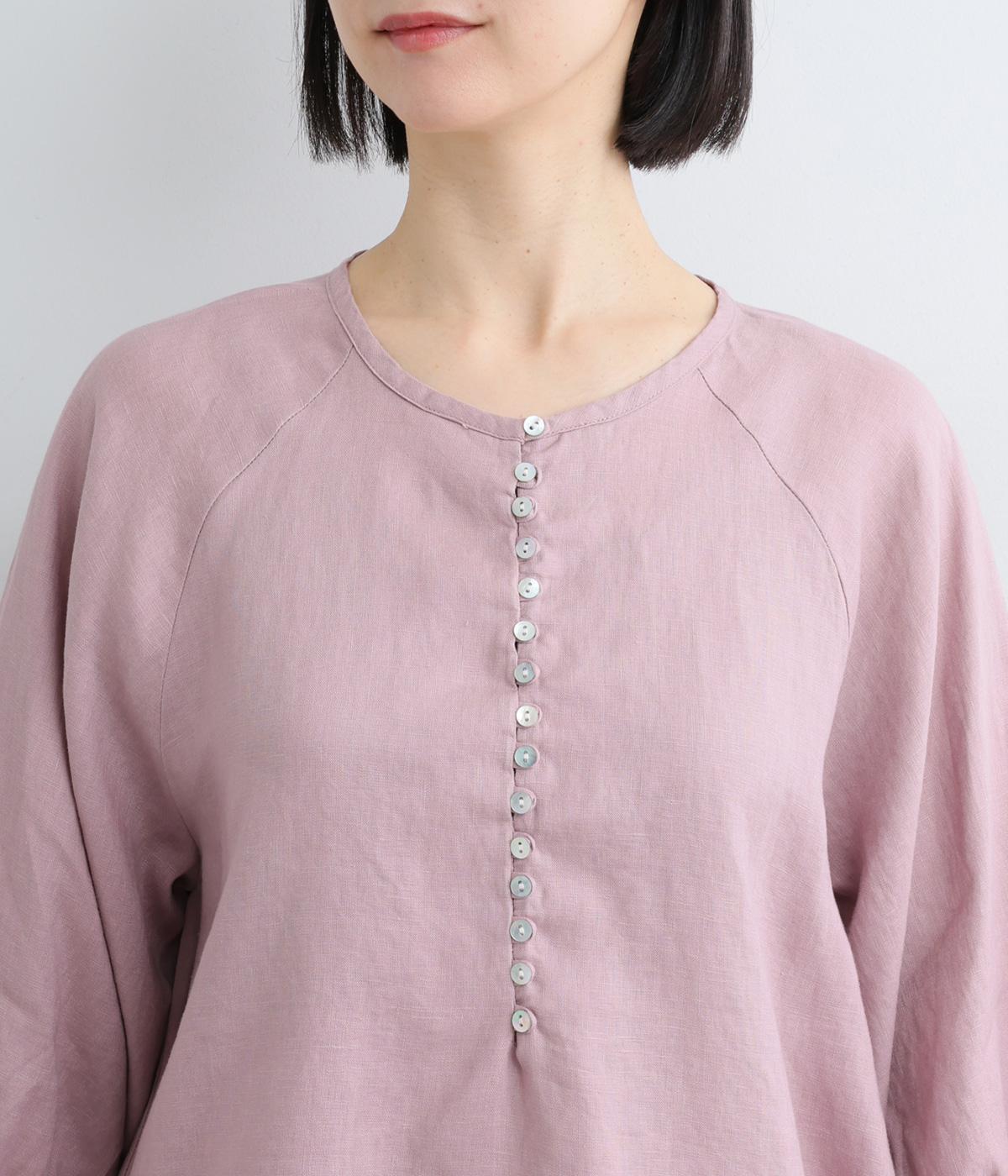 多ボタンがクラシカルな雰囲気のブラウスをノーカラーと7分袖ですっきりと仕立てました。サイドに長さを持たせた裾が優雅なラインをつくります。一枚ではもちろん、タートルニットなどと重ねても◎。シーズン通して着まわせるアイテムです。