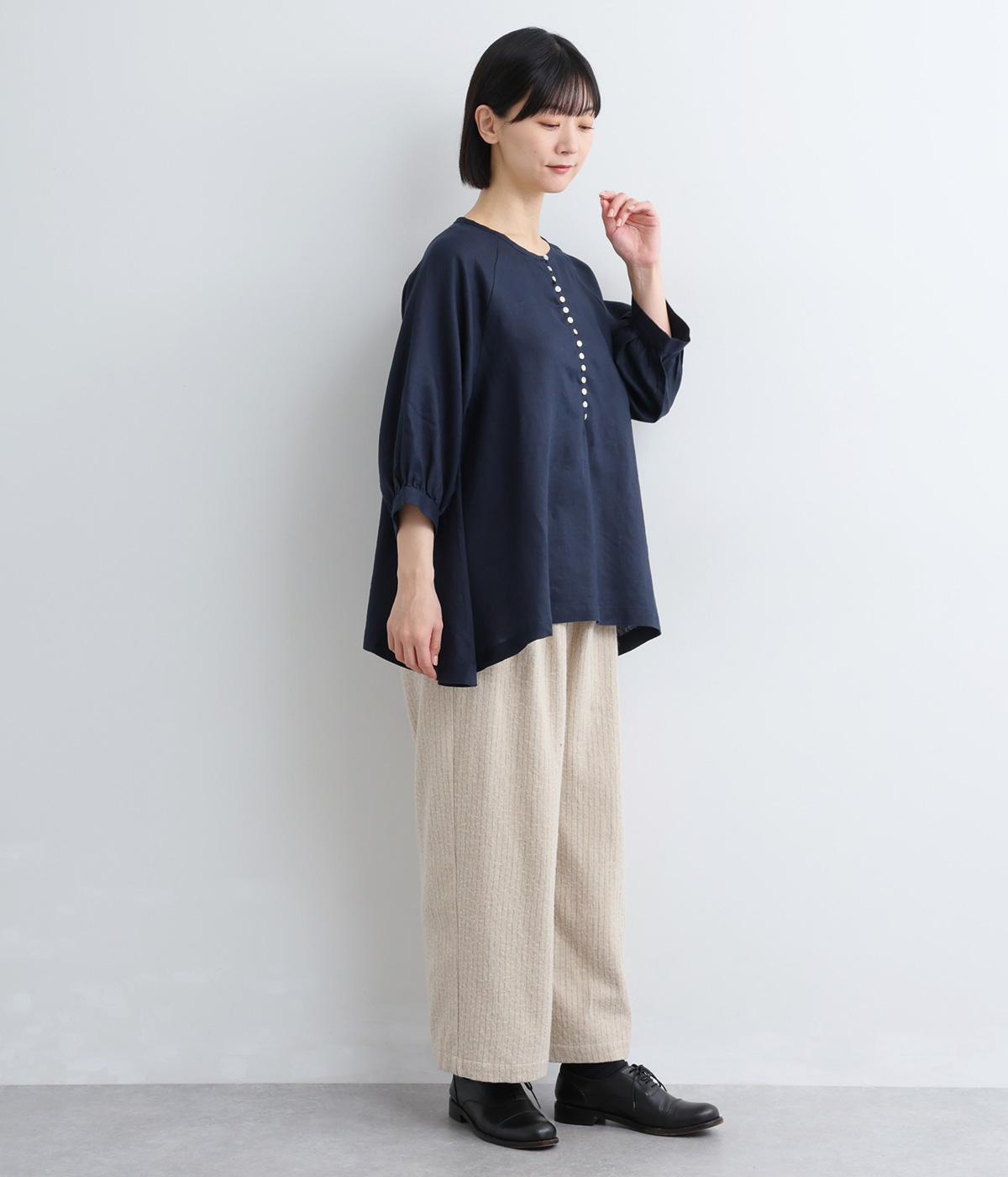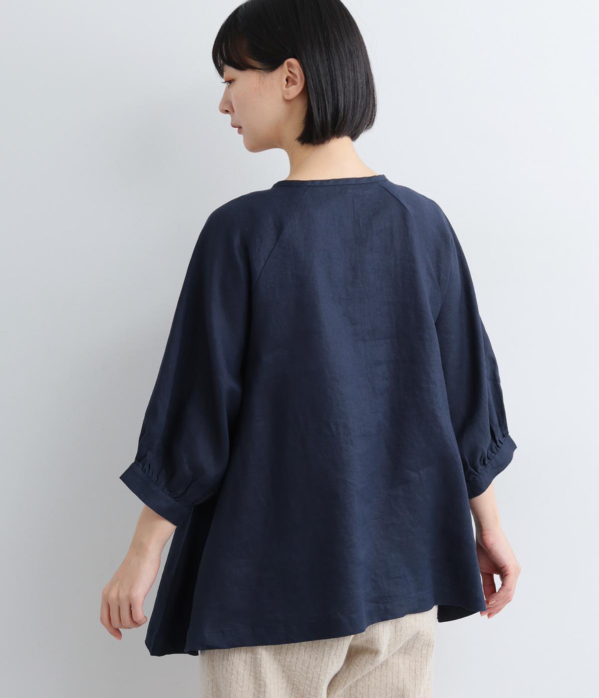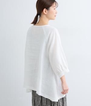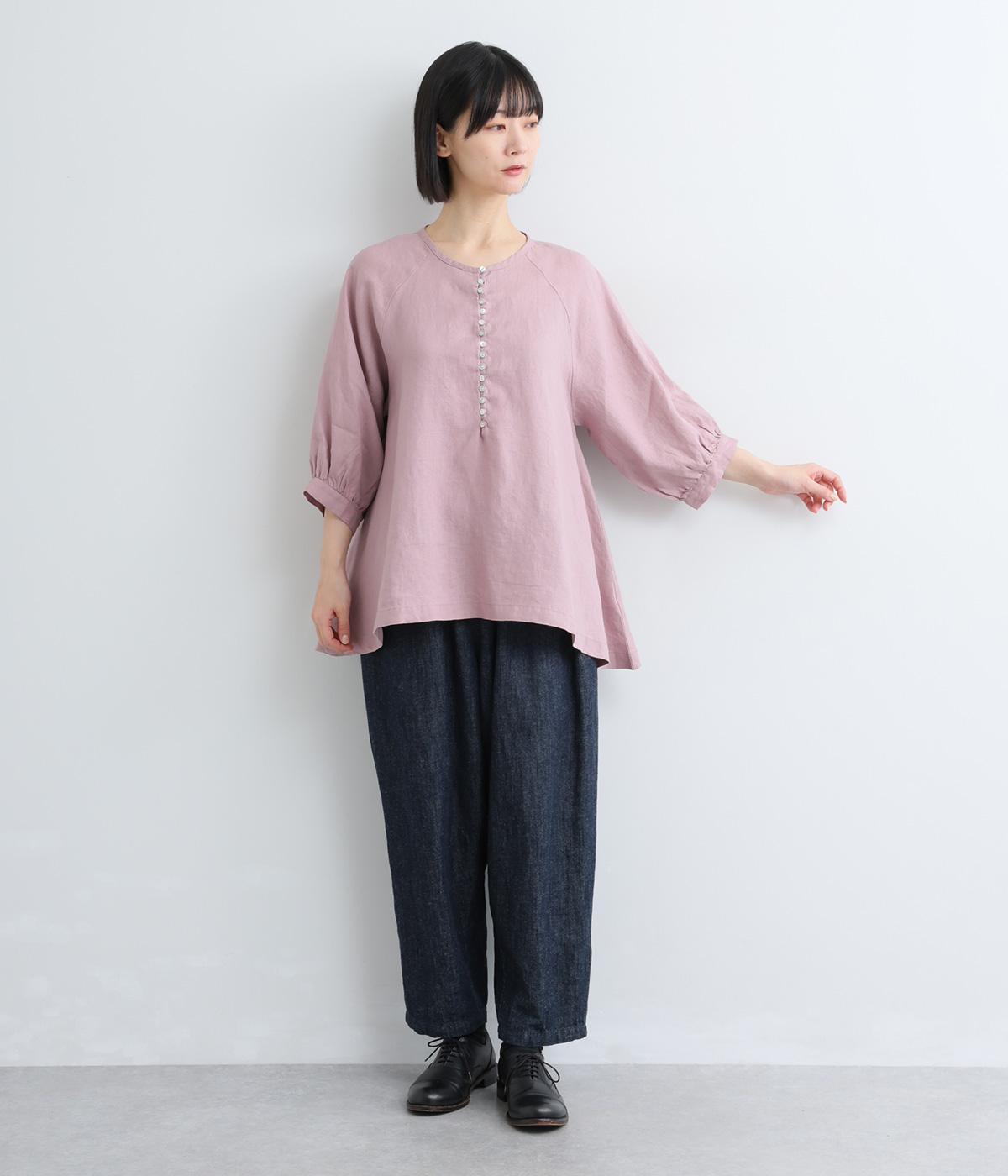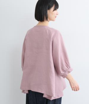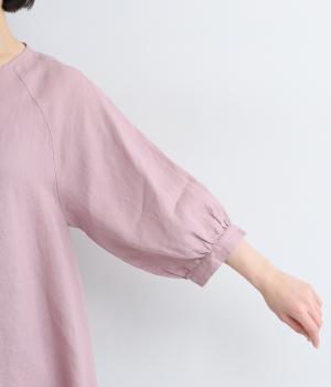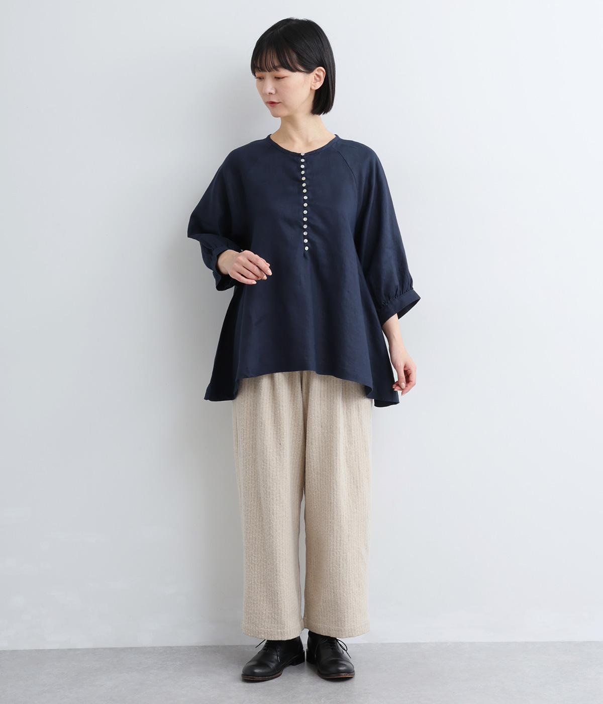 薄手で軽やかな着心地が魅力の14番手リネンを使用しました。しなやかなハリが美しいシルエットを保ちます。柔らかい風合いの中にほのかなツヤを放つ上品な素材感です。