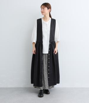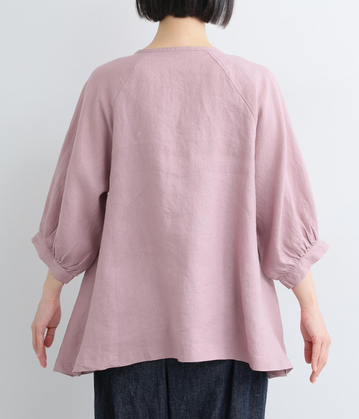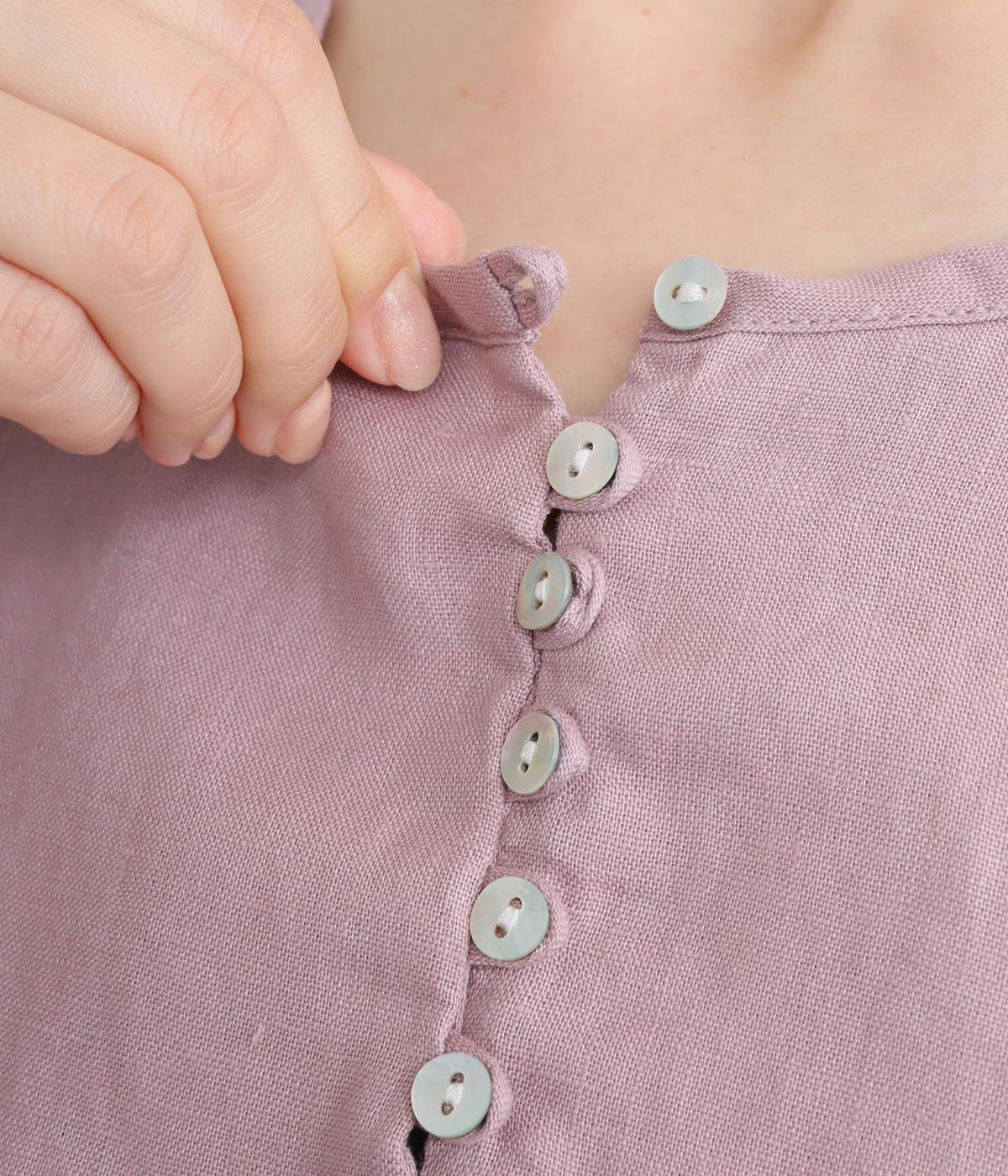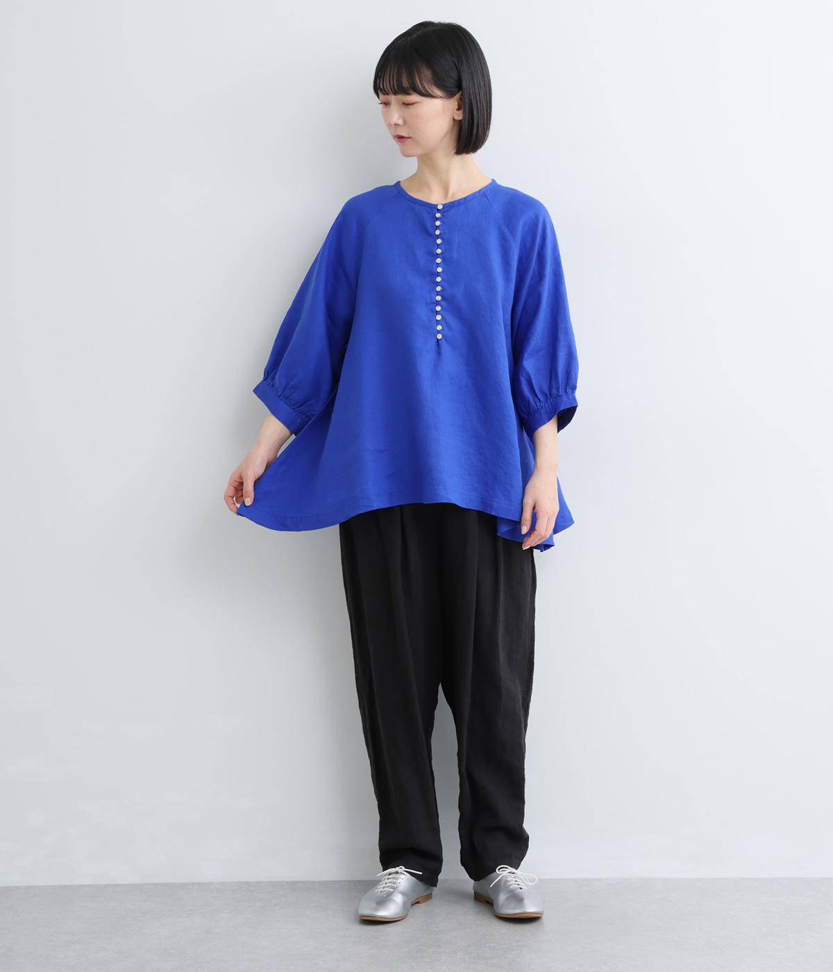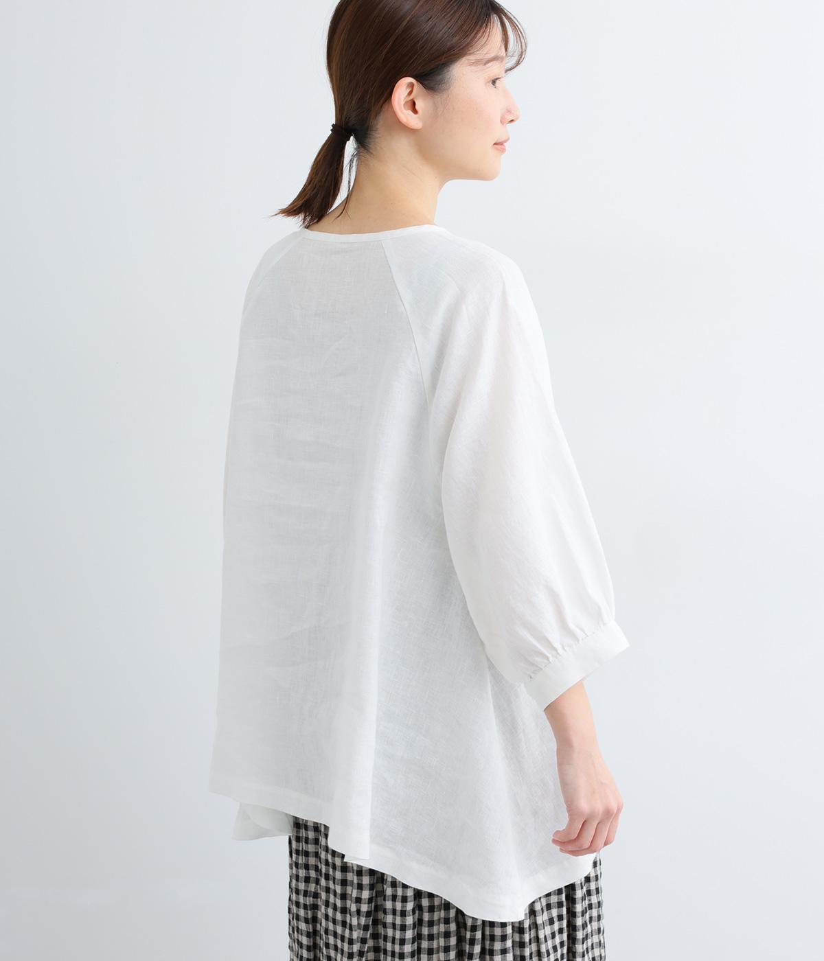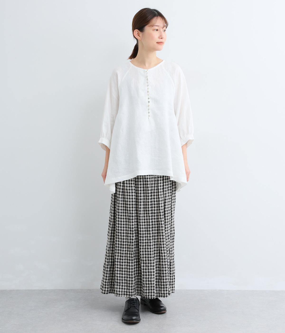 薄手で軽やかな着心地が魅力の14番手リネンを使用しました。しなやかなハリが美しいシルエットを保ちます。柔らかい風合いの中にほのかなツヤを放つ上品な素材感です。