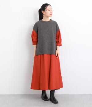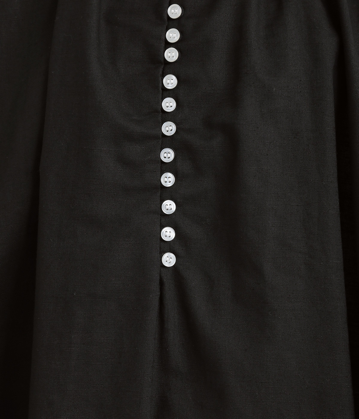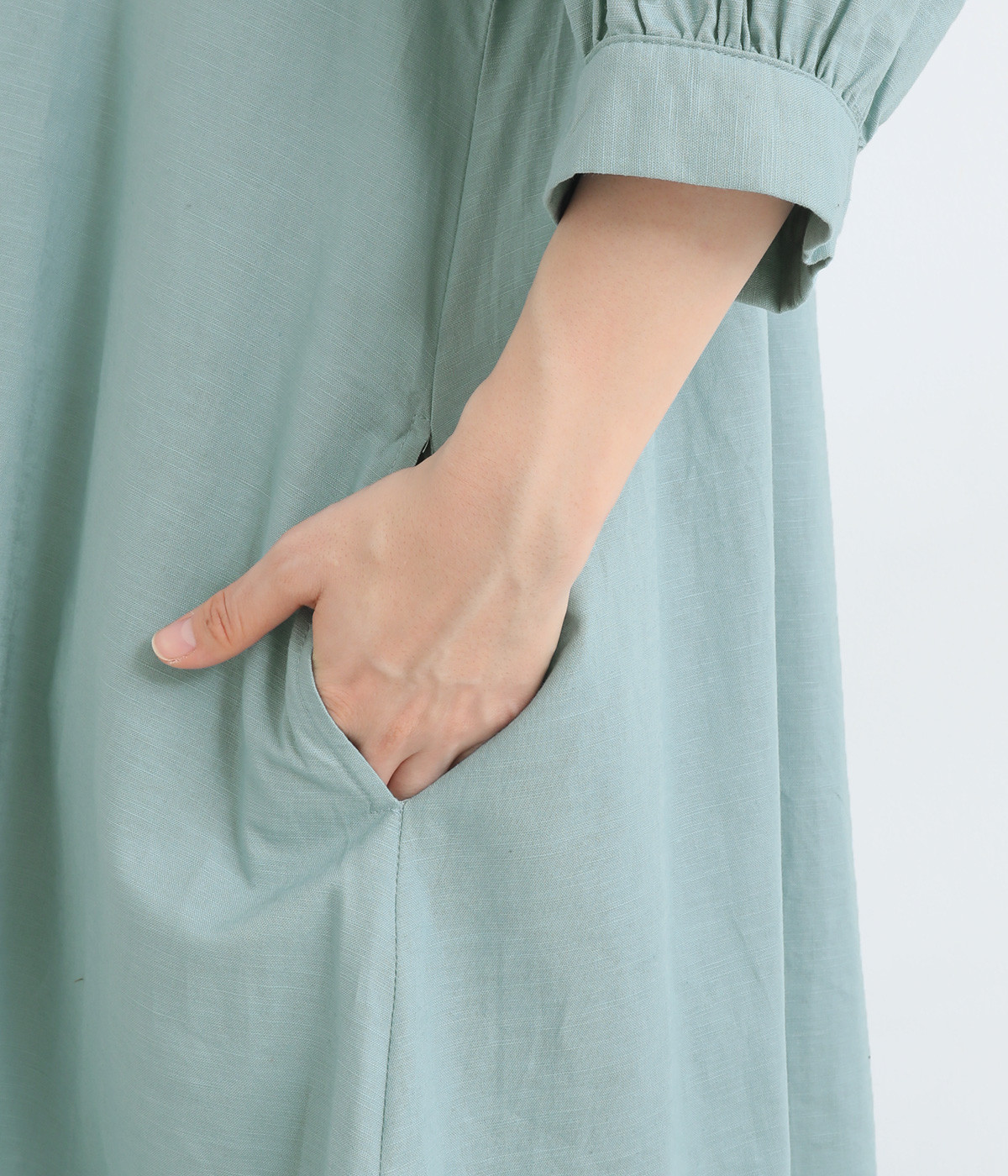 季節を通して心地よく着られる、コットンリネンのナチュラルな風合いが魅力の生地。やわらかさのなかにある、ほんのりとしたハリとシャリ感が軽やかさを添え、着るほどになじむ表情がたのしめます。