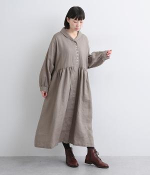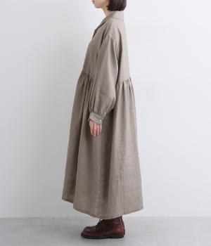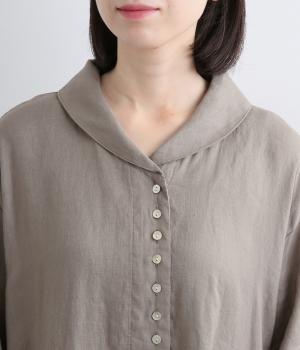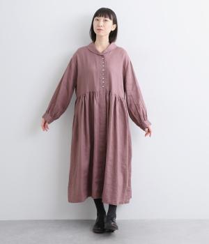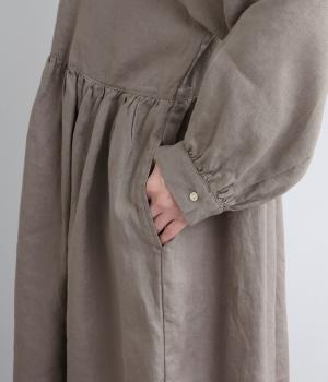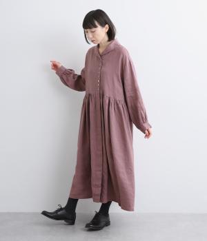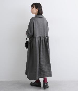 ほどよいシャリ感と、軽やかな着心地が特徴的なやや薄手のリネン素材です。着て洗うを繰り返すことで、やわらかさや風合いが増していくのも魅力に。