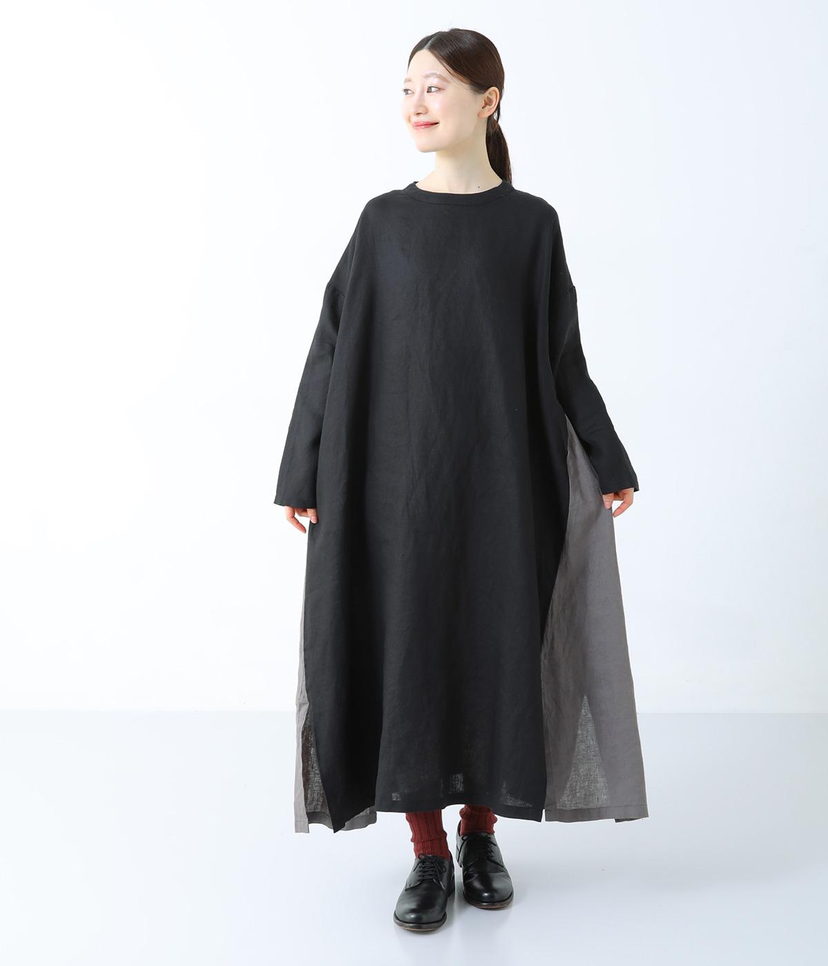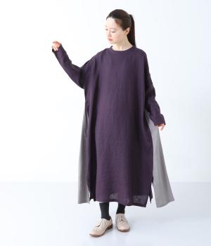 サイドを別カラーで切り替えた、シンプルながらも一捻りきかせたワンピースです。体の泳ぐゆったりとしたシルエットが体のラインをカバー。裾の切り替え位置にスリットを入れ抜け感をプラスしました。きゅっと詰まったネックの後ろはボタン開き仕様で、着脱をアシストしてくれます。