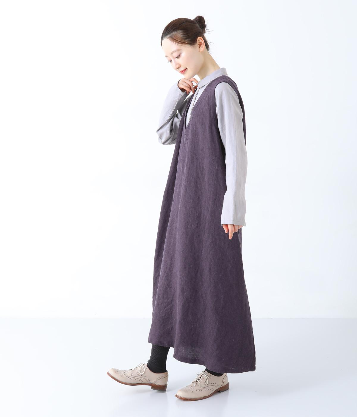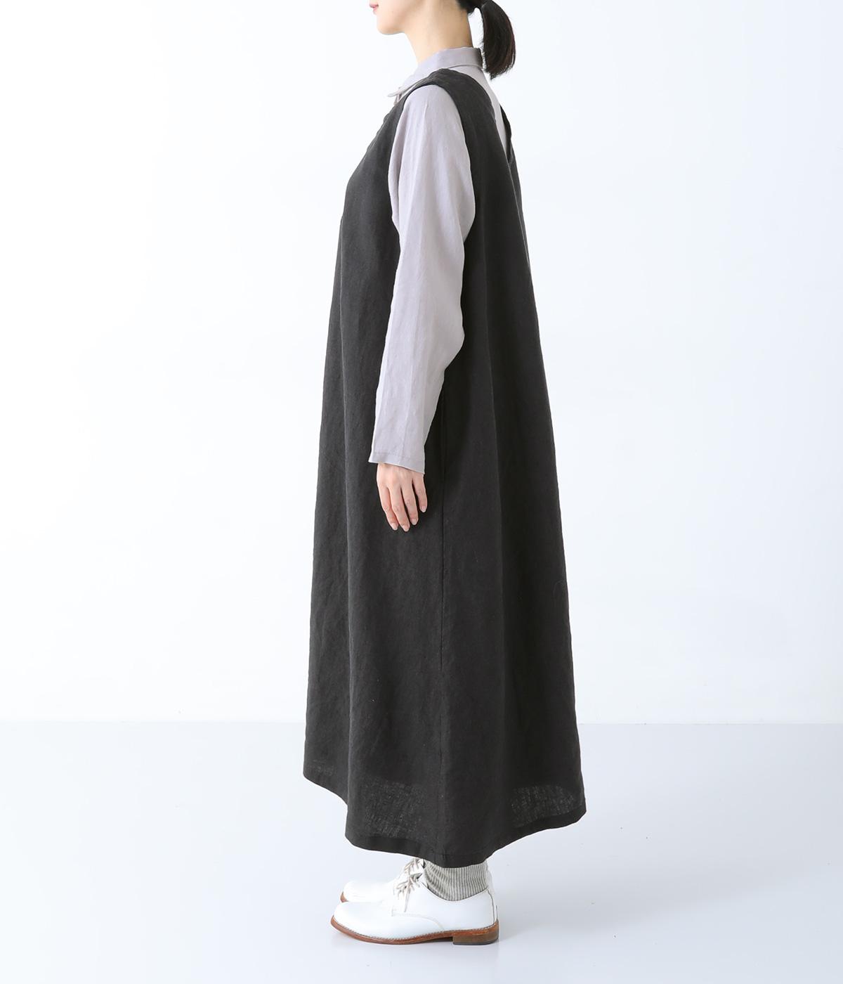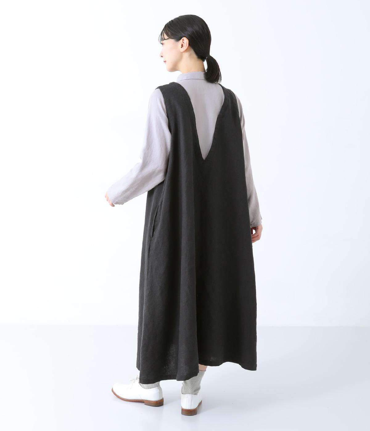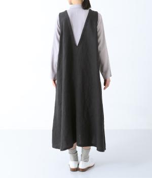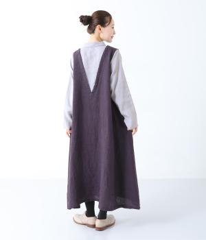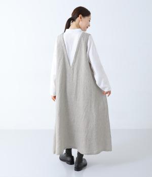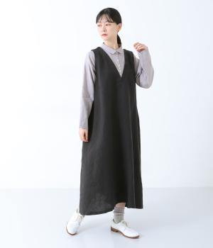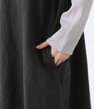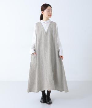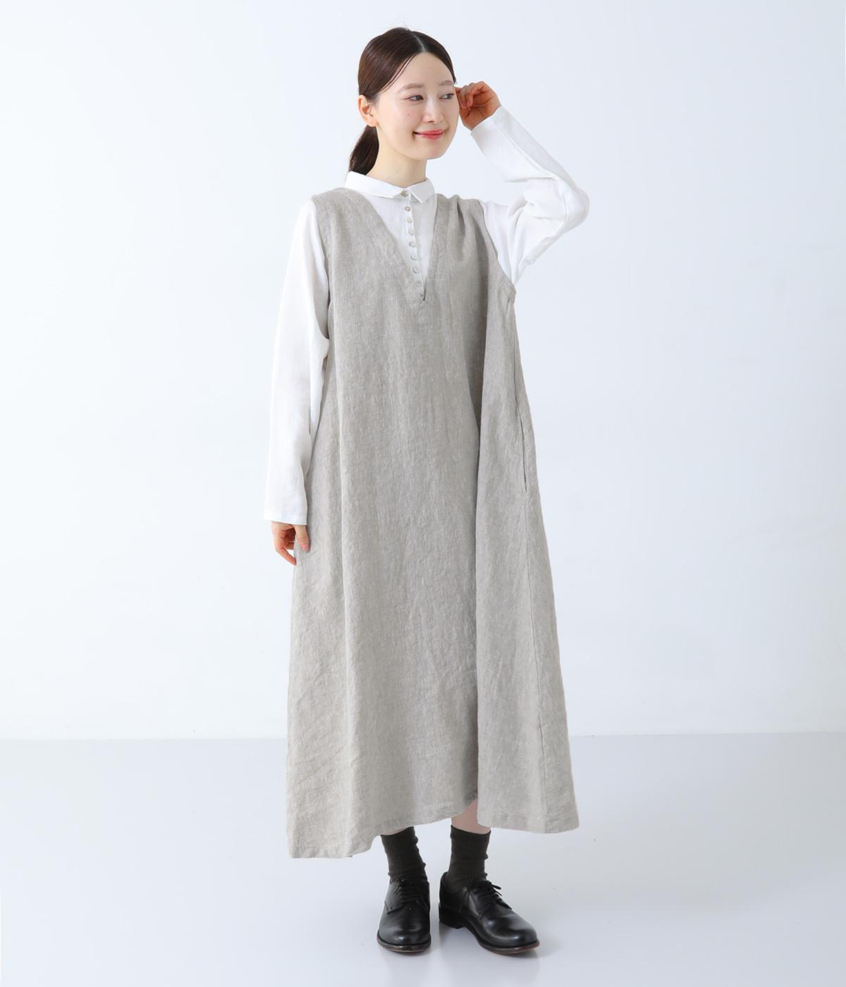 清涼感のあるさらりとしたリネン生地で仕立てています。細めの糸を使用したシャツ部分はより通気性のある薄手の生地感。ワンピース部分はしっかりとした厚みで安心感があり、きれいなシルエットをキープしてくれます。