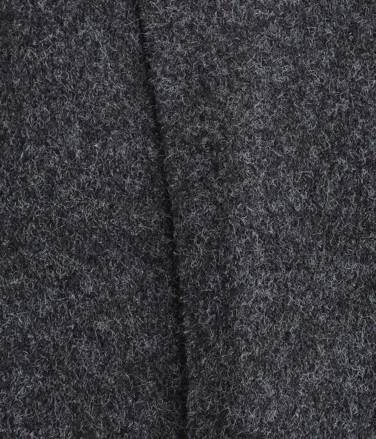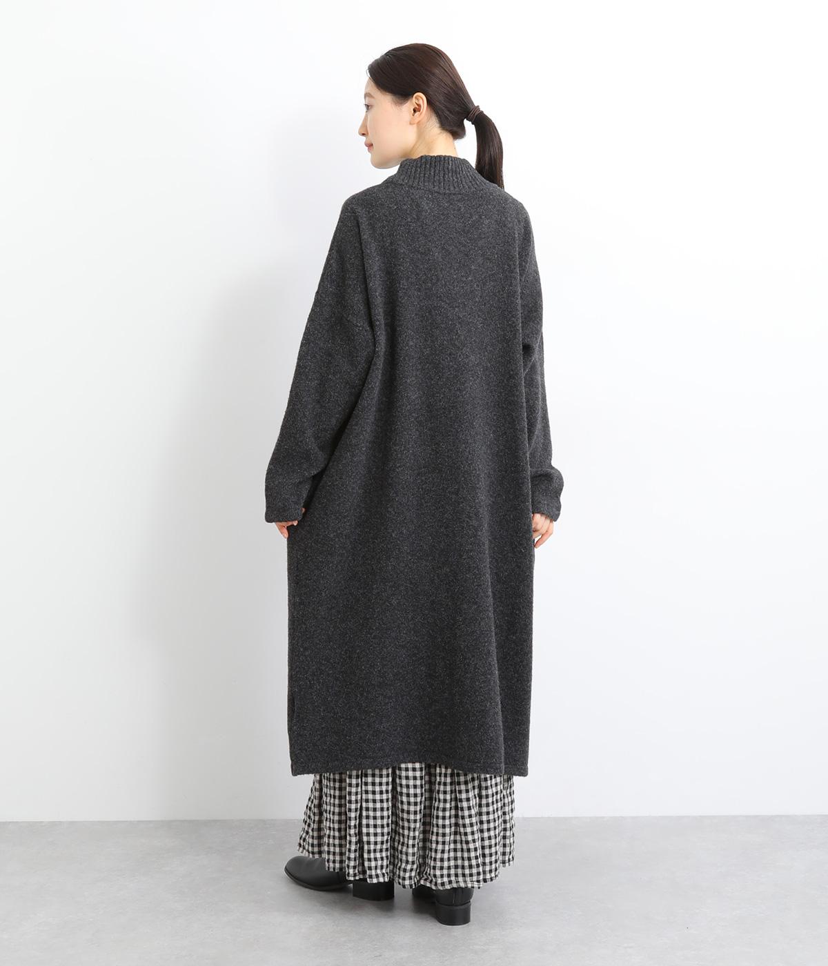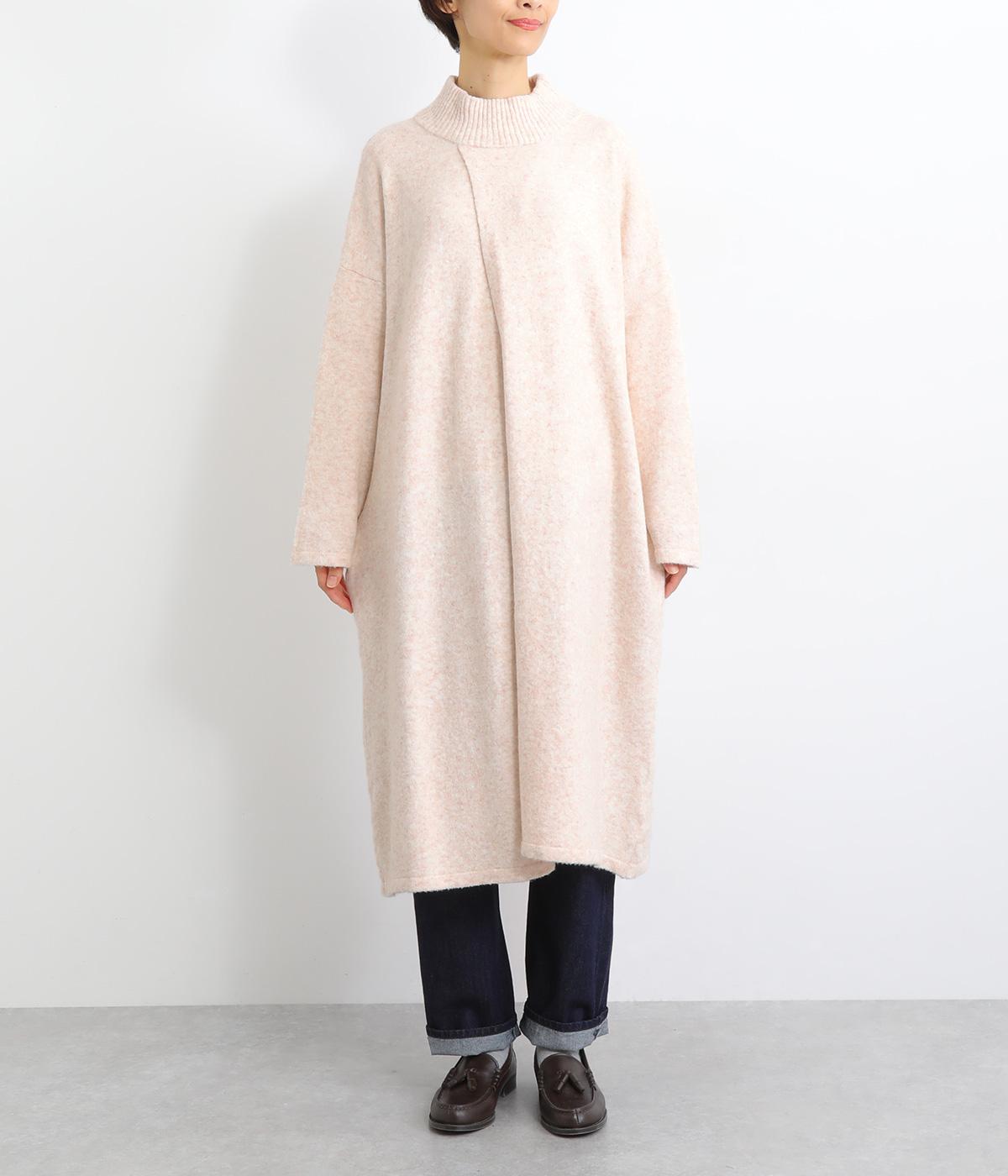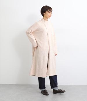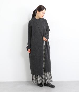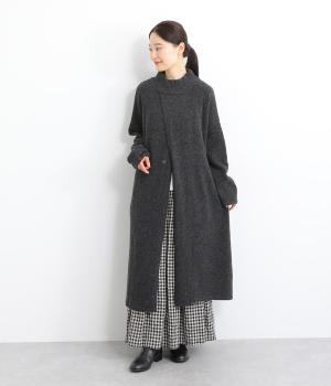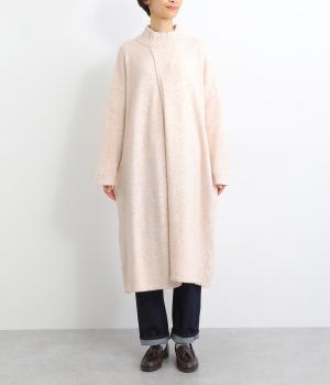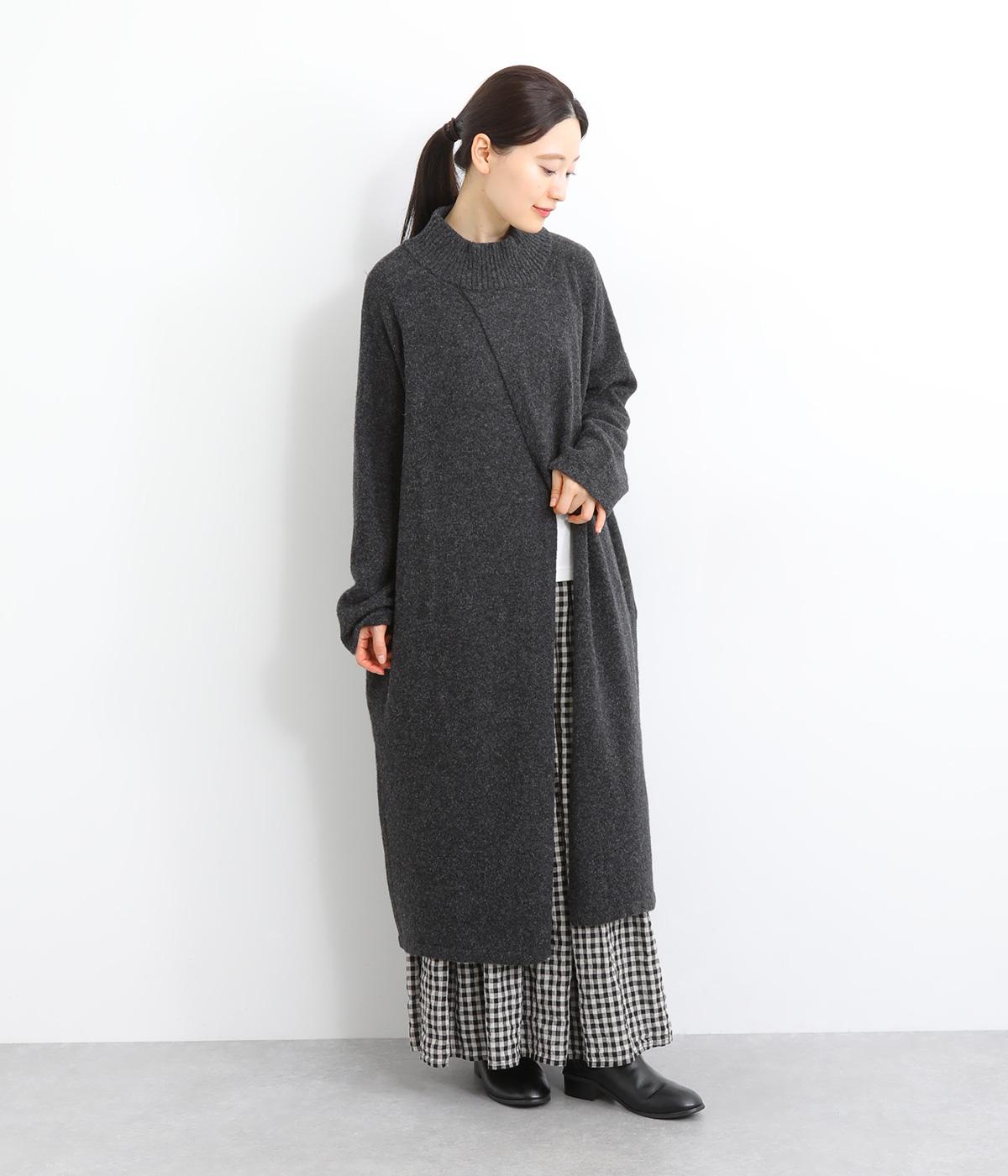 ネック下で生地を重ね、下はスリットのように広げた抜け感のあるフロントデザインが印象的。首元に沿うように立ち上がったネックがモード感を漂わせます。普段の何気ない着こなしに合わせるだけで防寒性とおしゃれ感がグッと高まる便利な一着です。