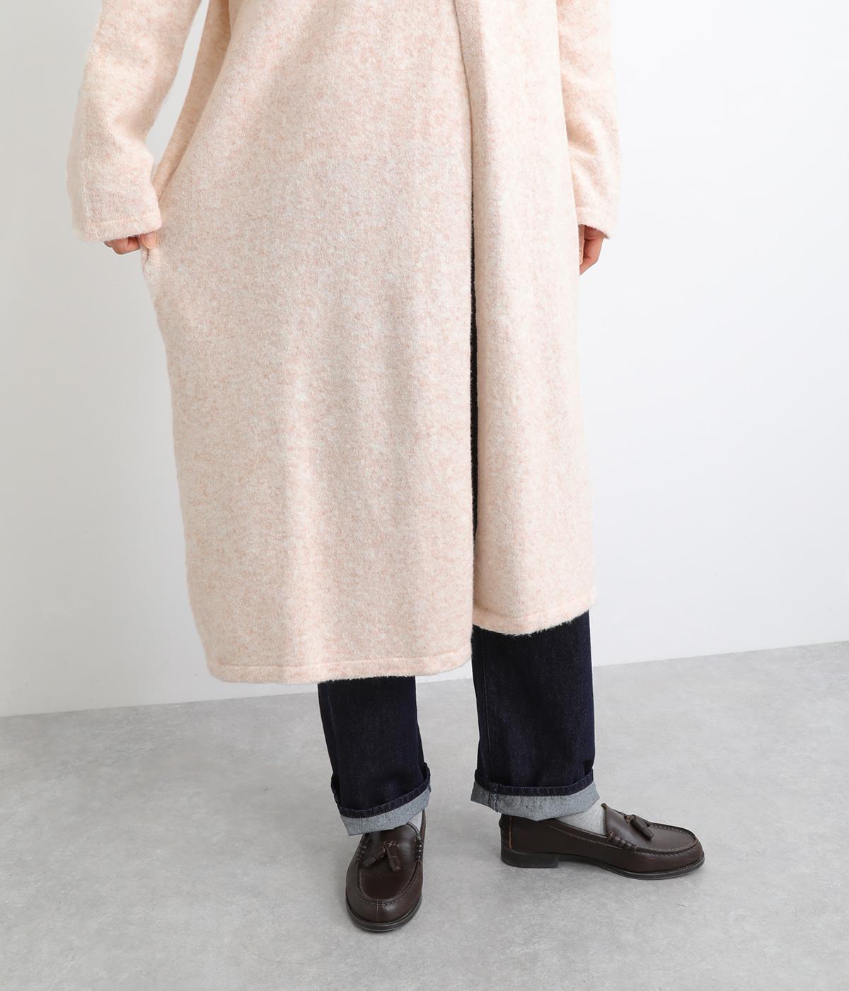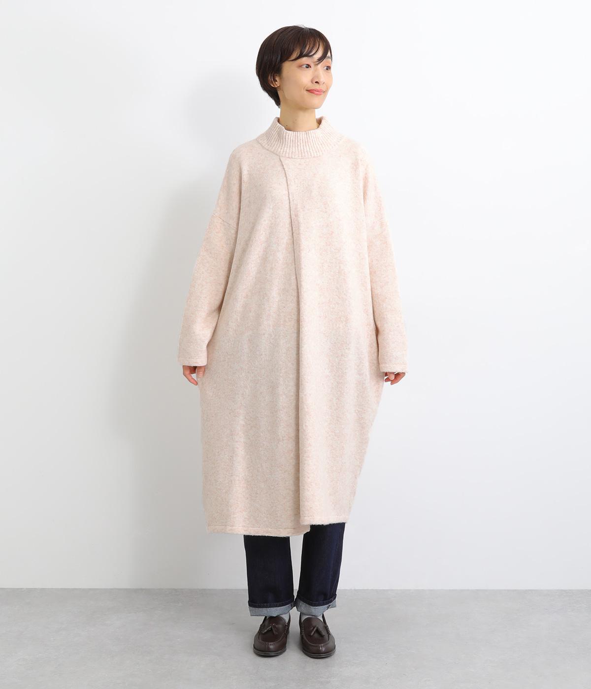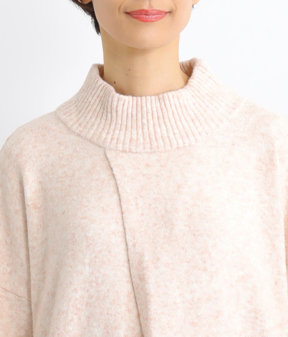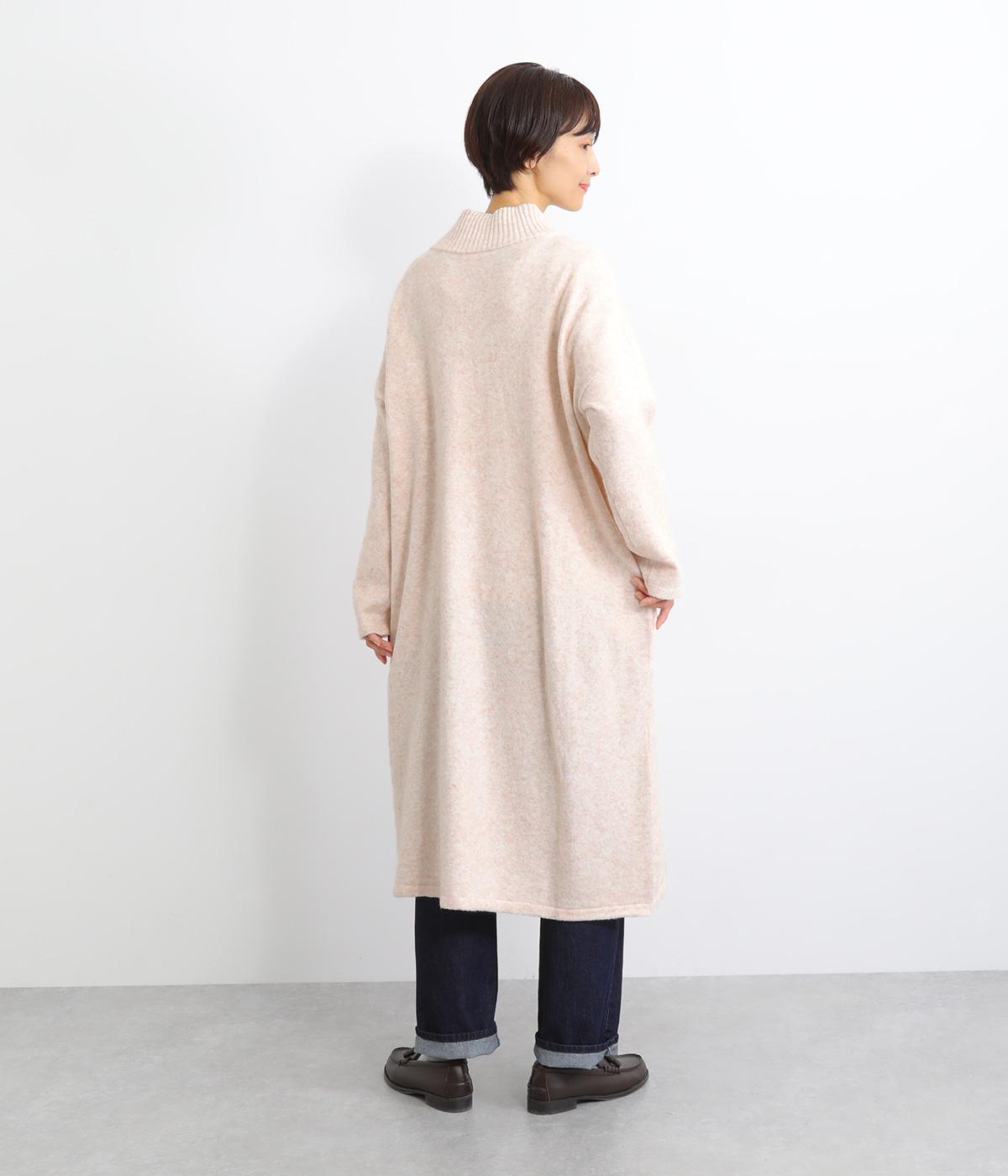 ネック下で生地を重ね、下はスリットのように広げた抜け感のあるフロントデザインが印象的。首元に沿うように立ち上がったネックがモード感を漂わせます。普段の何気ない着こなしに合わせるだけで防寒性とおしゃれ感がグッと高まる便利な一着です。