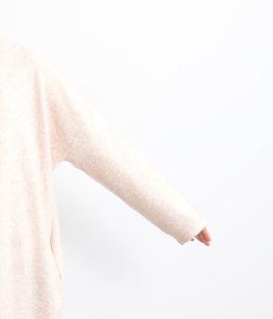 コットンとポリエステルをメインにブレンドした糸で丁寧に編み上げました。ふっくらとしたやわらかな風合いを見た目からも感じ取ることができ、やさしい印象を与えてくれます。