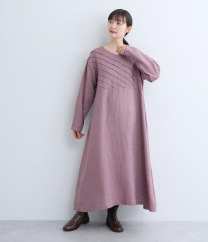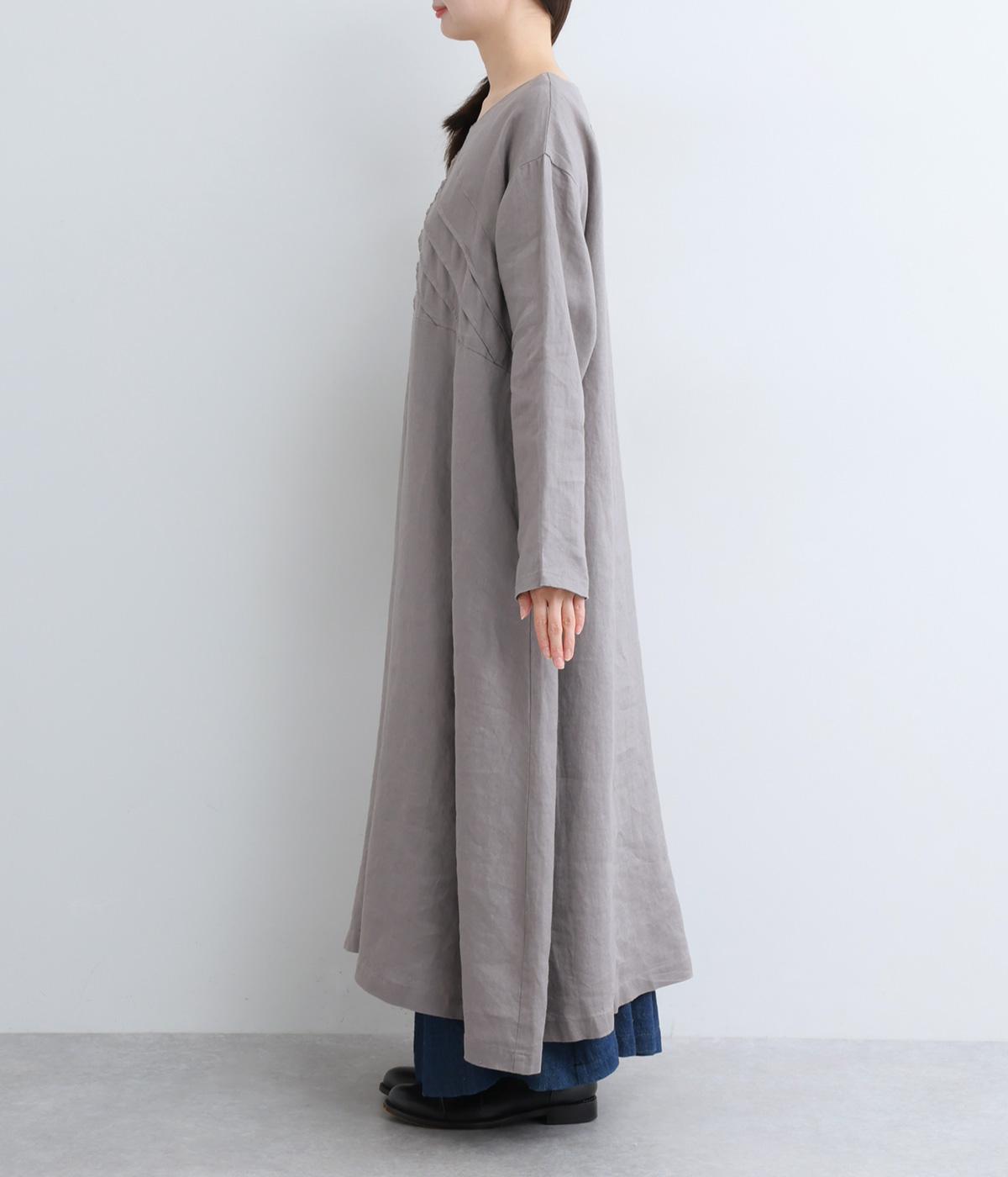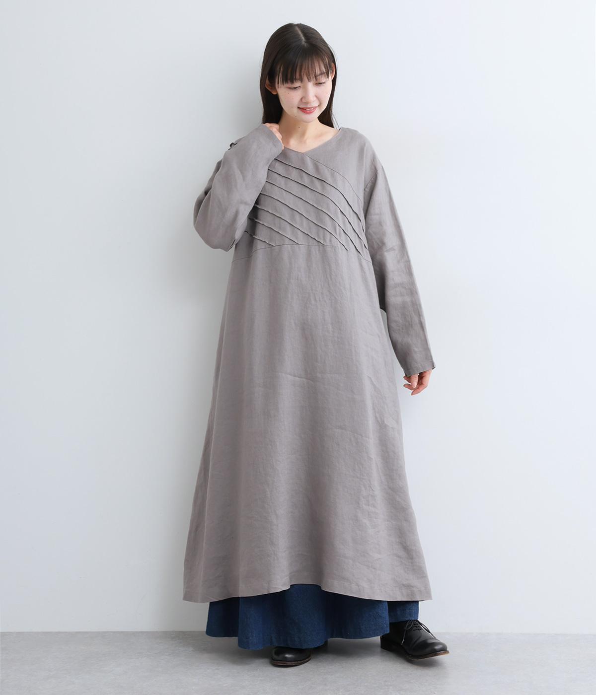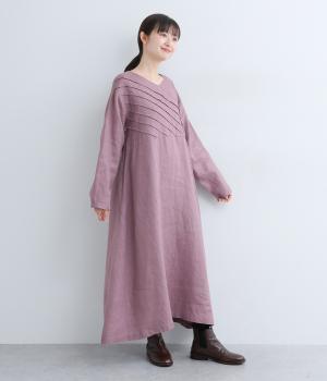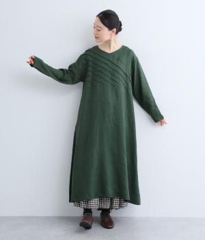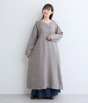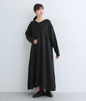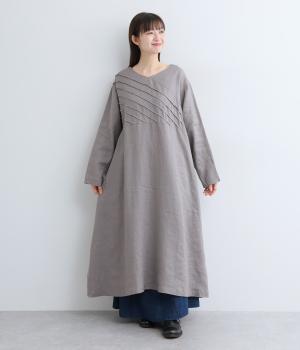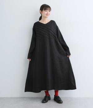 前身頃にバイヤス状の切り替えをたっぷりと入れたワンピース。視線をアップさせてスタイルを自然に引き立ててくれます。ふわりと広がるAラインのシルエットが女性らしさをアップ。後ろ姿のアクセントにしたボタン開きもポイントです。