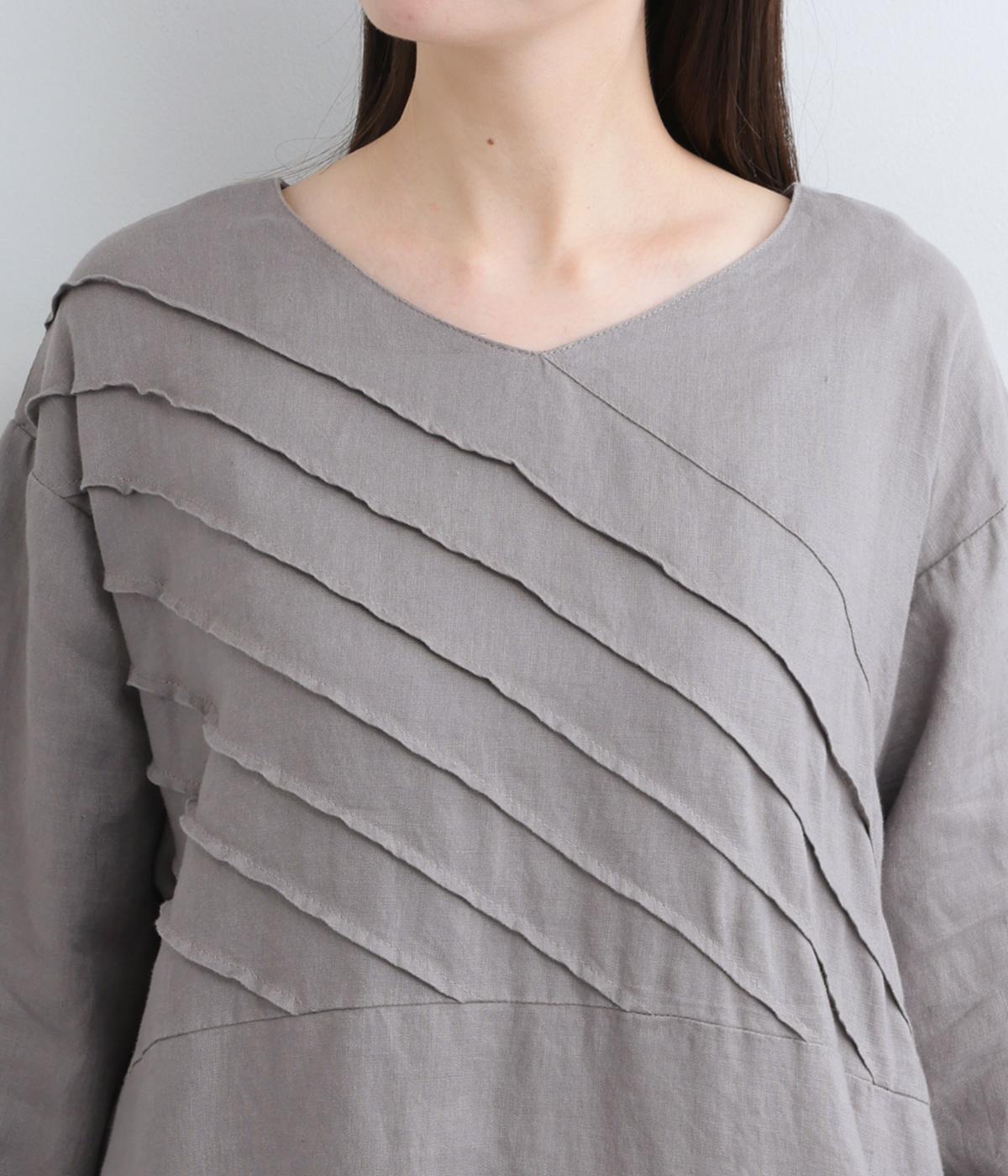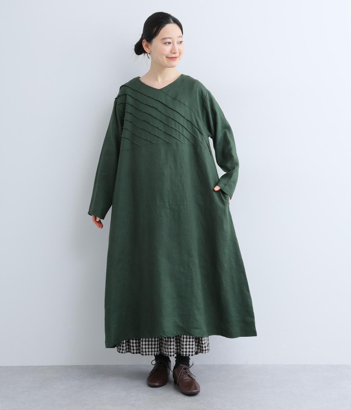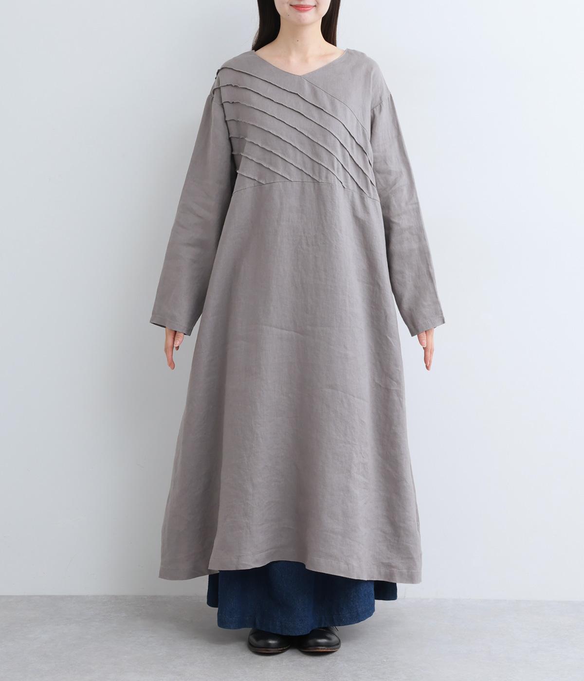 前身頃にバイヤス状の切り替えをたっぷりと入れたワンピース。視線をアップさせてスタイルを自然に引き立ててくれます。ふわりと広がるAラインのシルエットが女性らしさをアップ。後ろ姿のアクセントにしたボタン開きもポイントです。