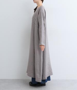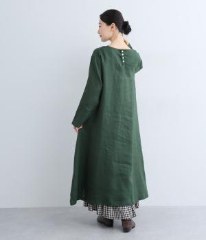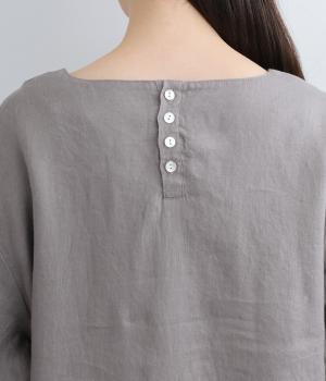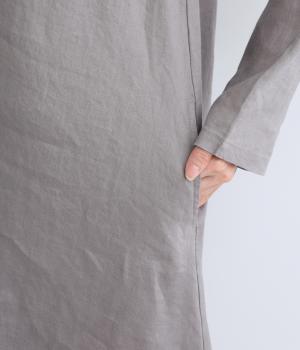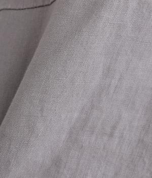 14番手リネン糸を使用した、ほどよい厚みとタフさが特徴の生地。麻ならではのハリコシがありながらも、着込むほどにくったりとしたやわらかな風合いに変化します。