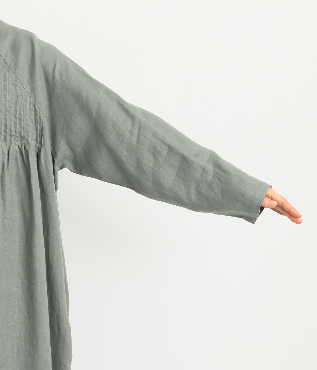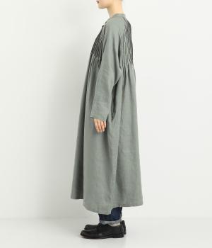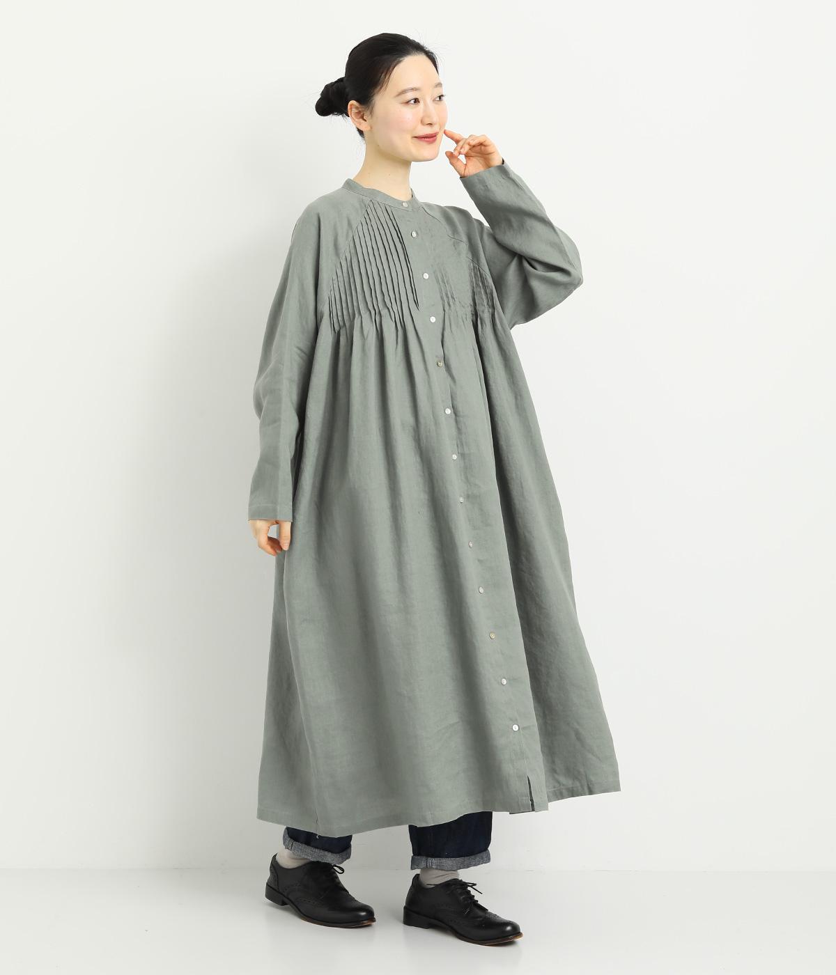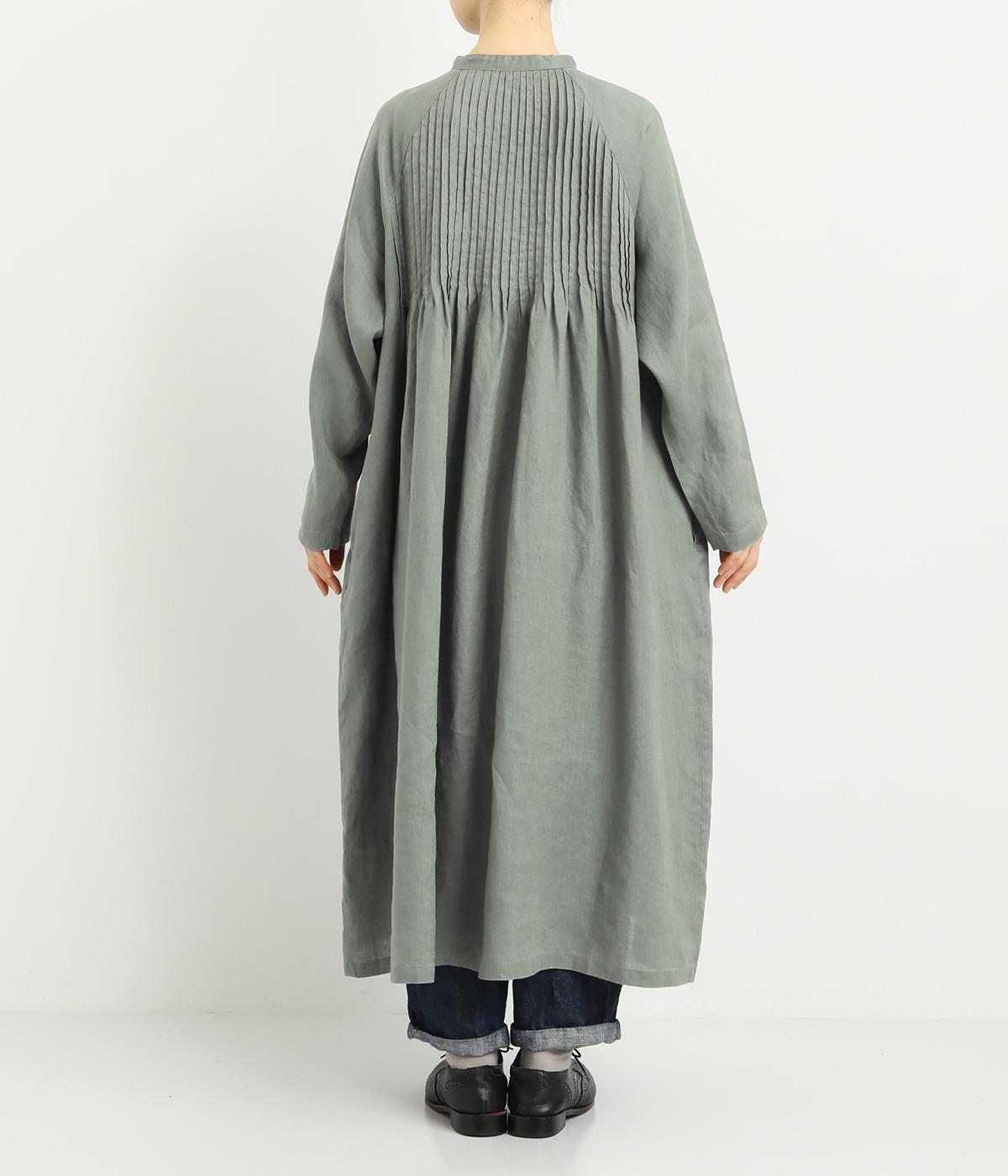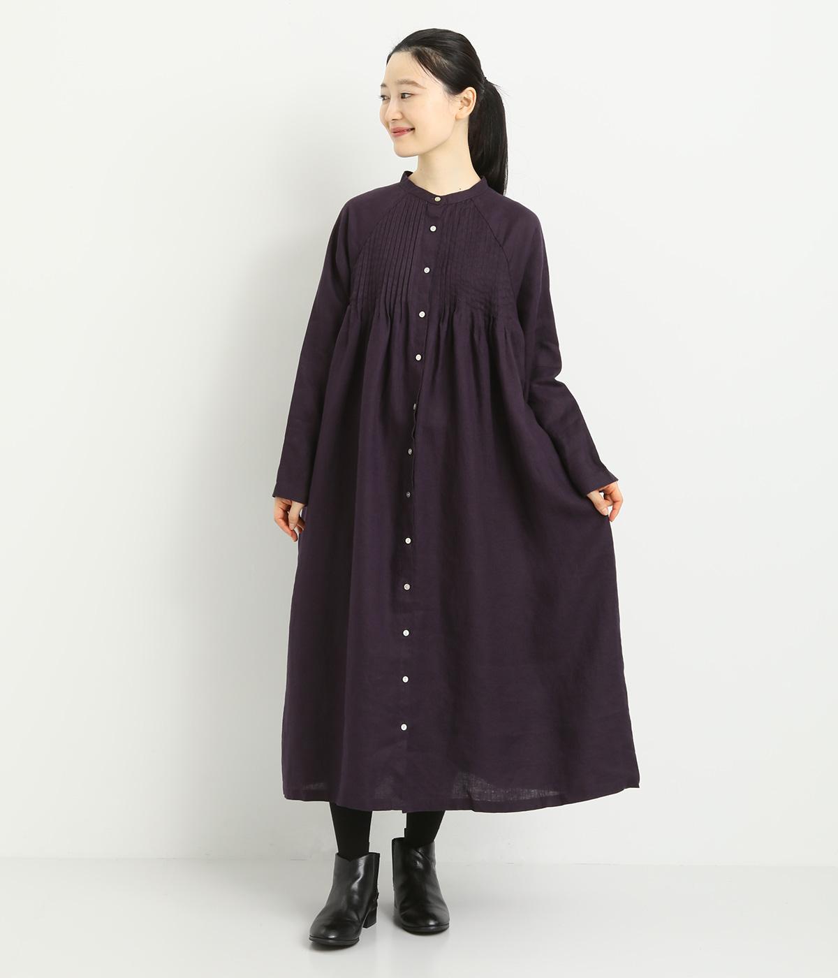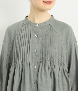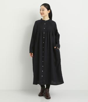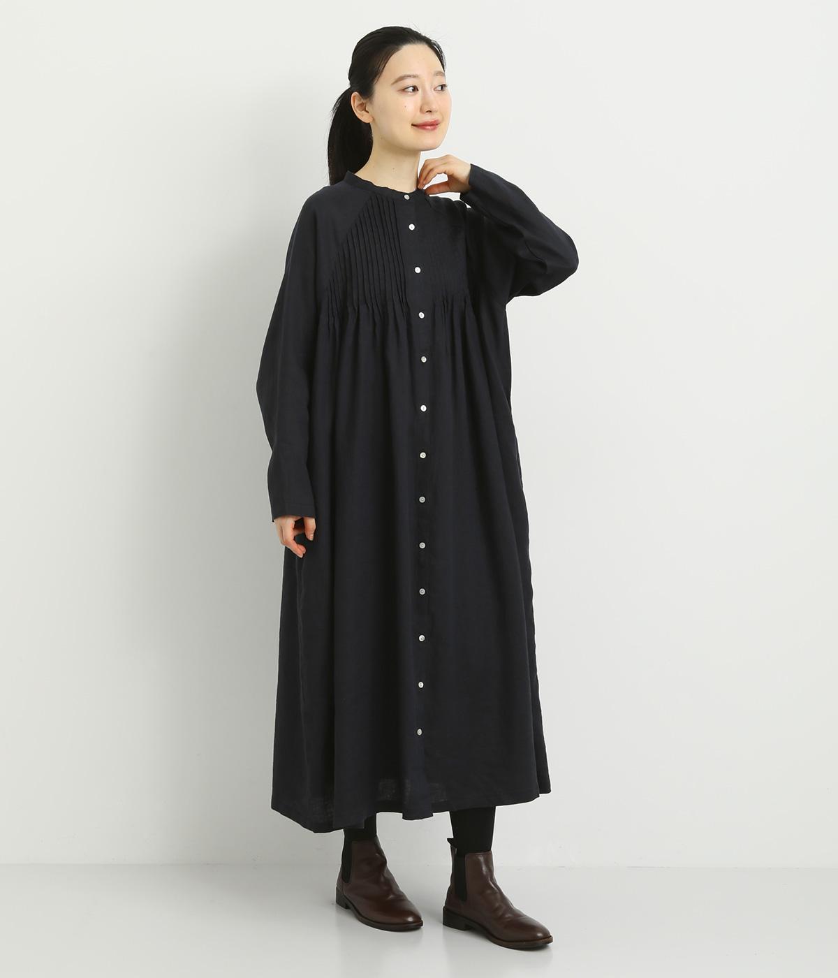 前後にたっぷりほどこしたピンタックがナチュラルながらも着映えするワンピース。そのまま切るだけでもスタイリングが完成するボリュームがあり、前あきなので羽織りとしても活躍。ラグラン袖で着心地もいい、デイリーに着たくなる一枚。