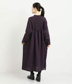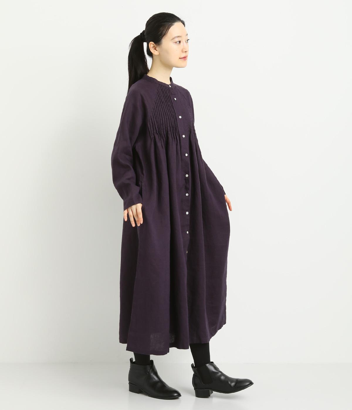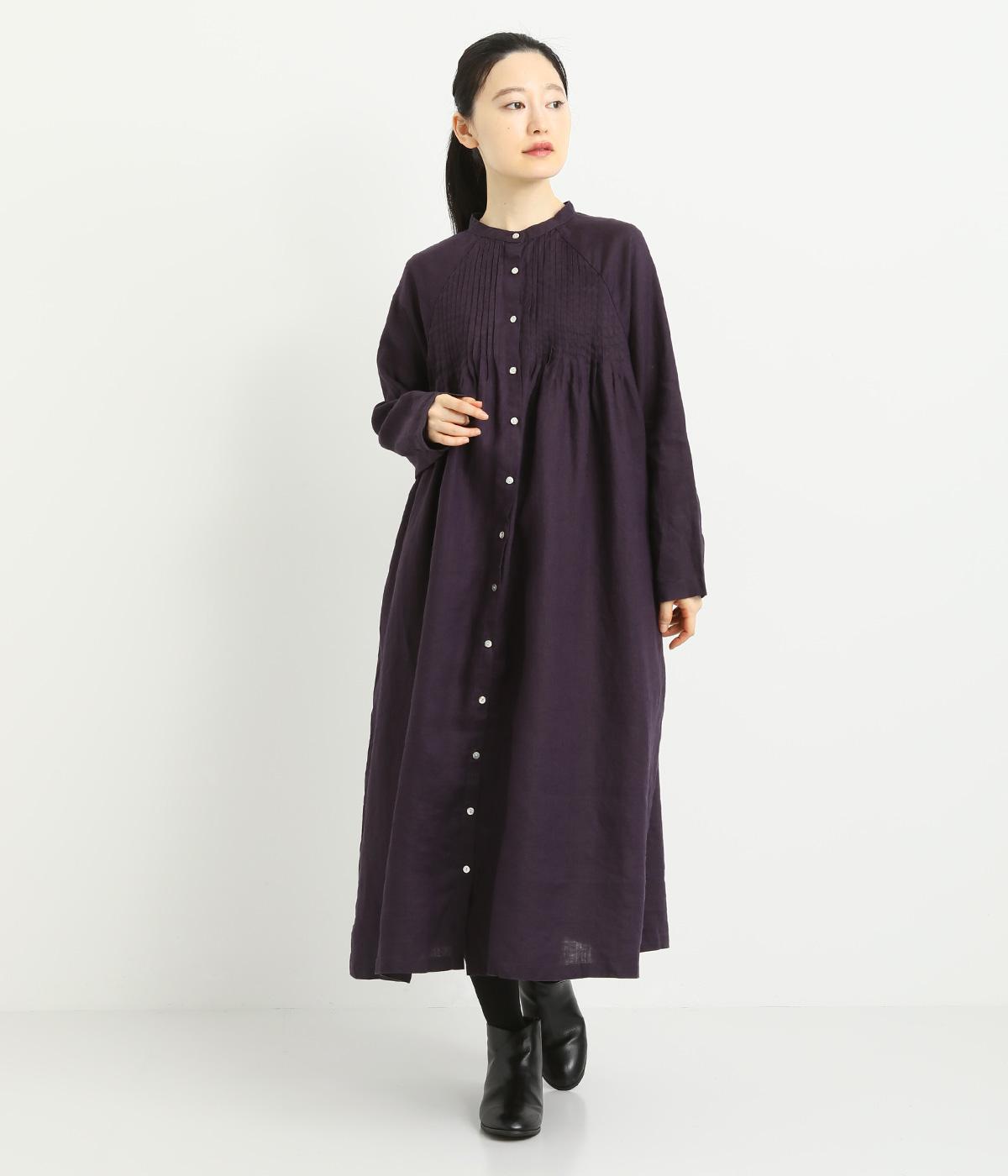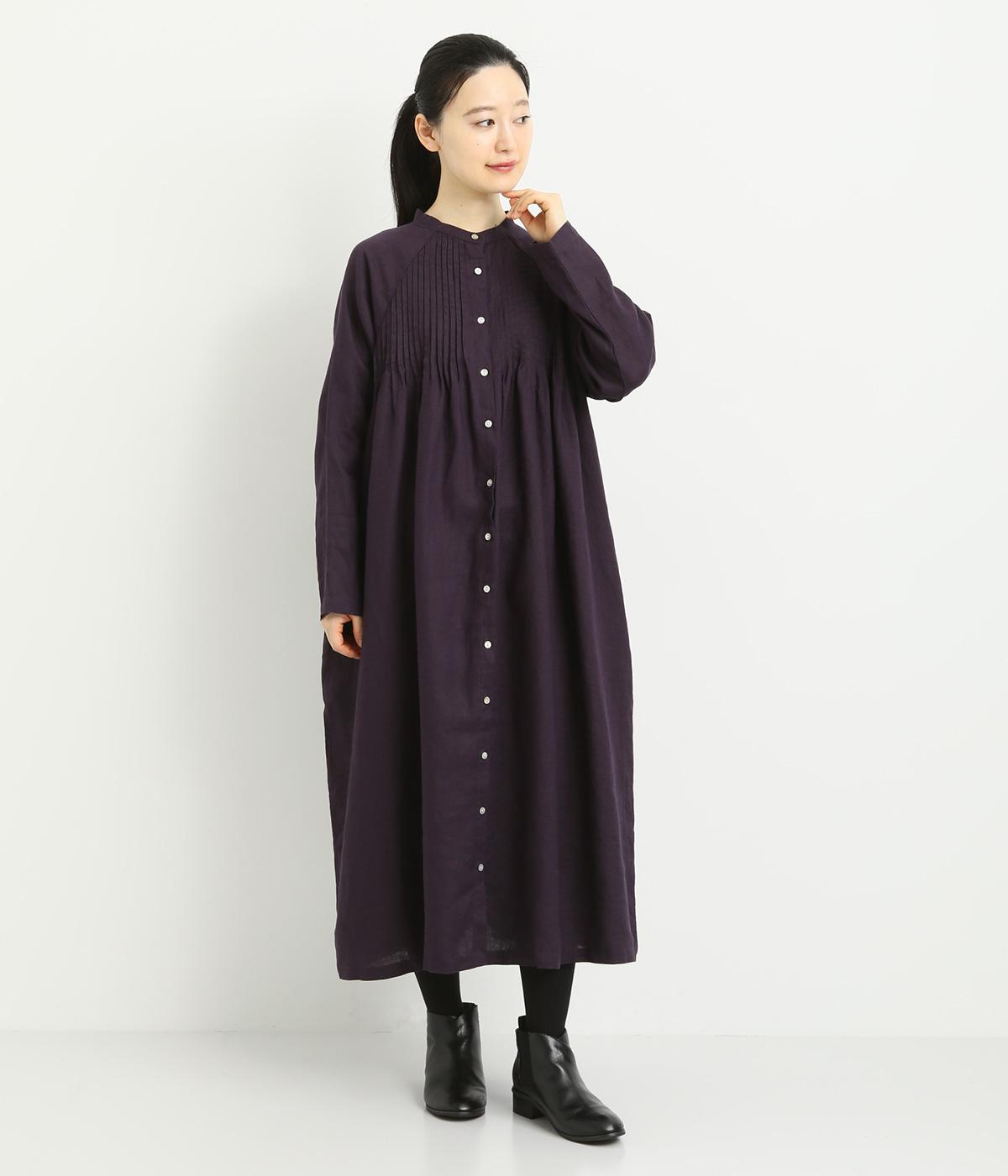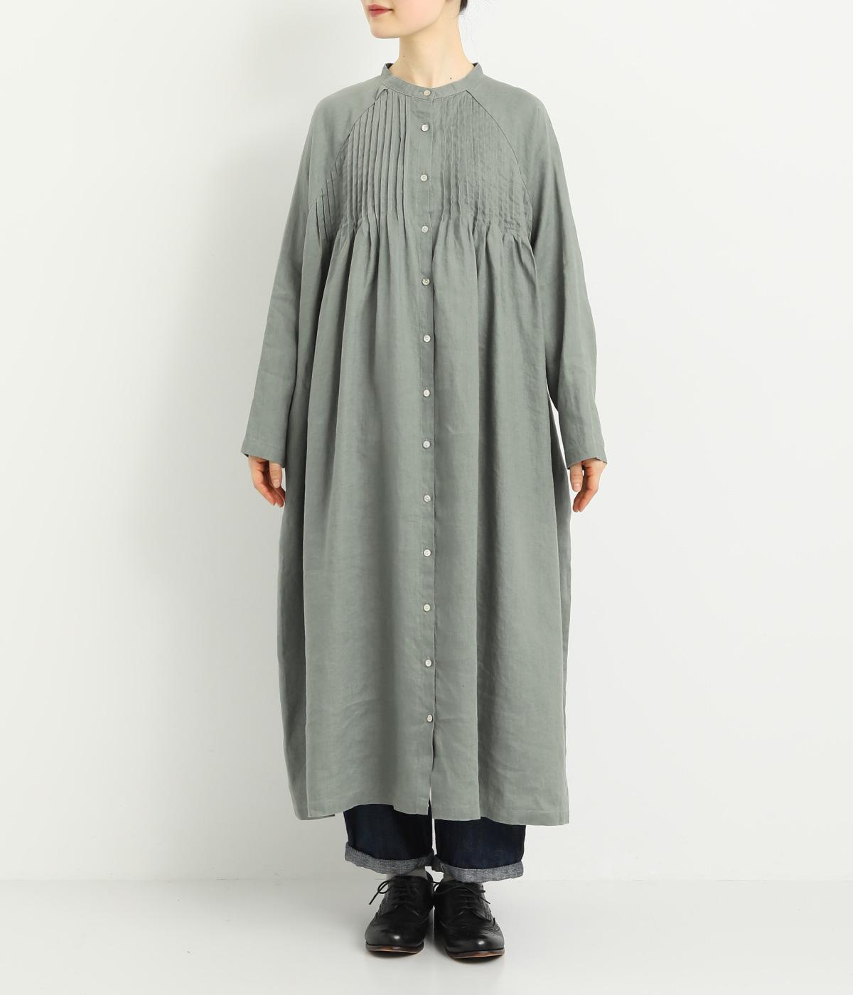 前後にたっぷりほどこしたピンタックがナチュラルながらも着映えするワンピース。そのまま切るだけでもスタイリングが完成するボリュームがあり、前あきなので羽織りとしても活躍。ラグラン袖で着心地もいい、デイリーに着たくなる一枚。