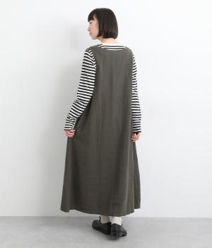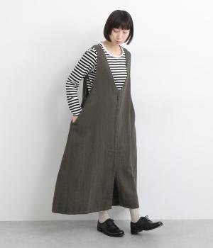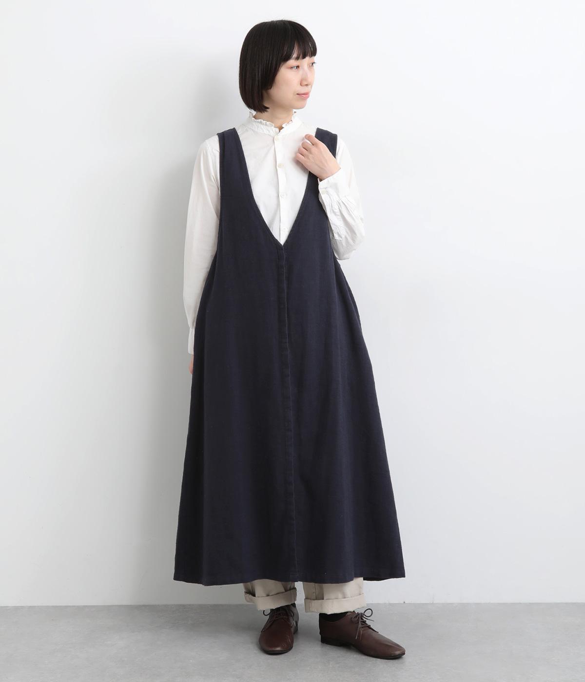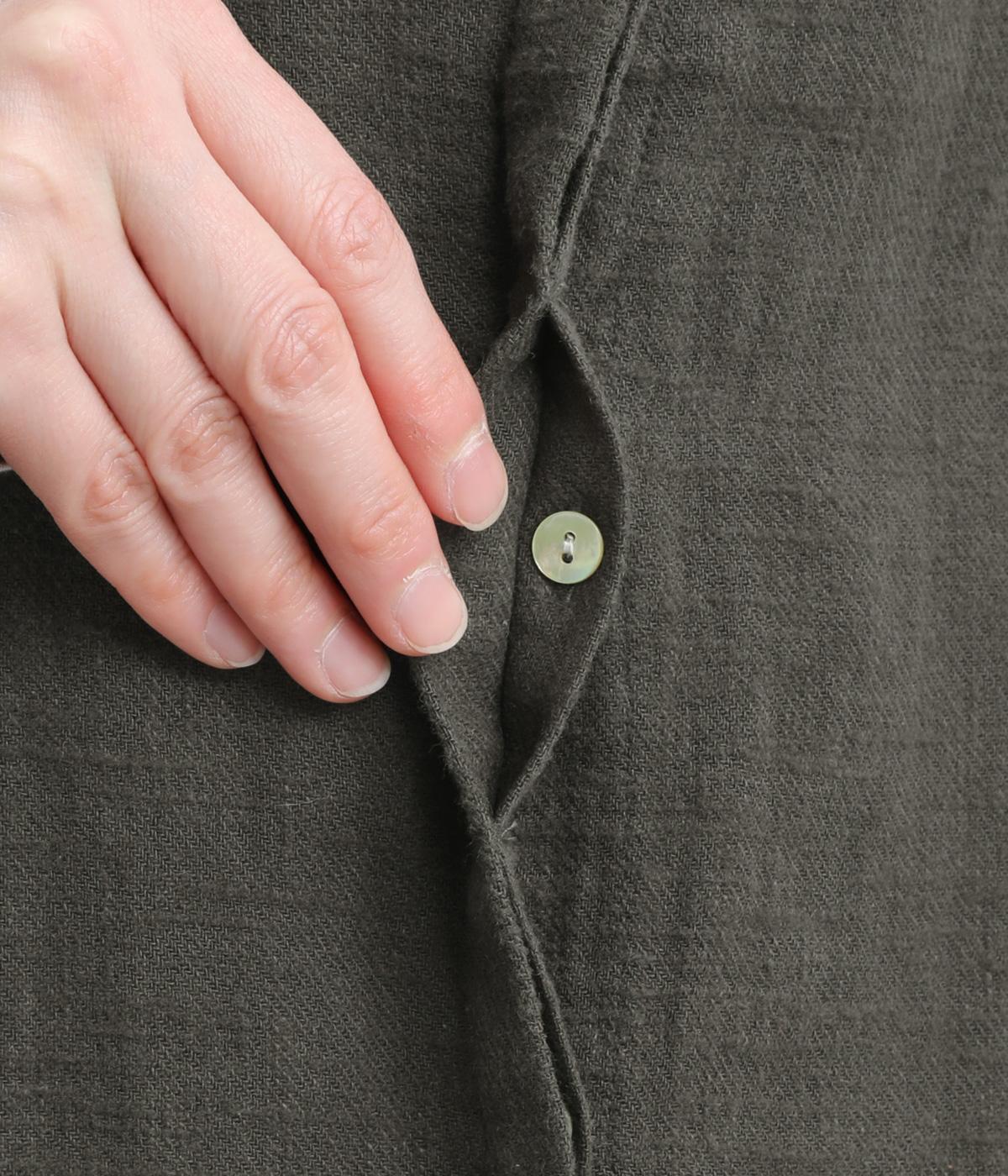 やわらかなコットンリネンに起毛を施し、ふんわりとしたぬくもりを感じる風合いに仕上げました。肌になじむやさしいタッチで、着るほどに自然な表情が増していきます。ほどよい厚みで、ロングシーズン頼れる素材感です。