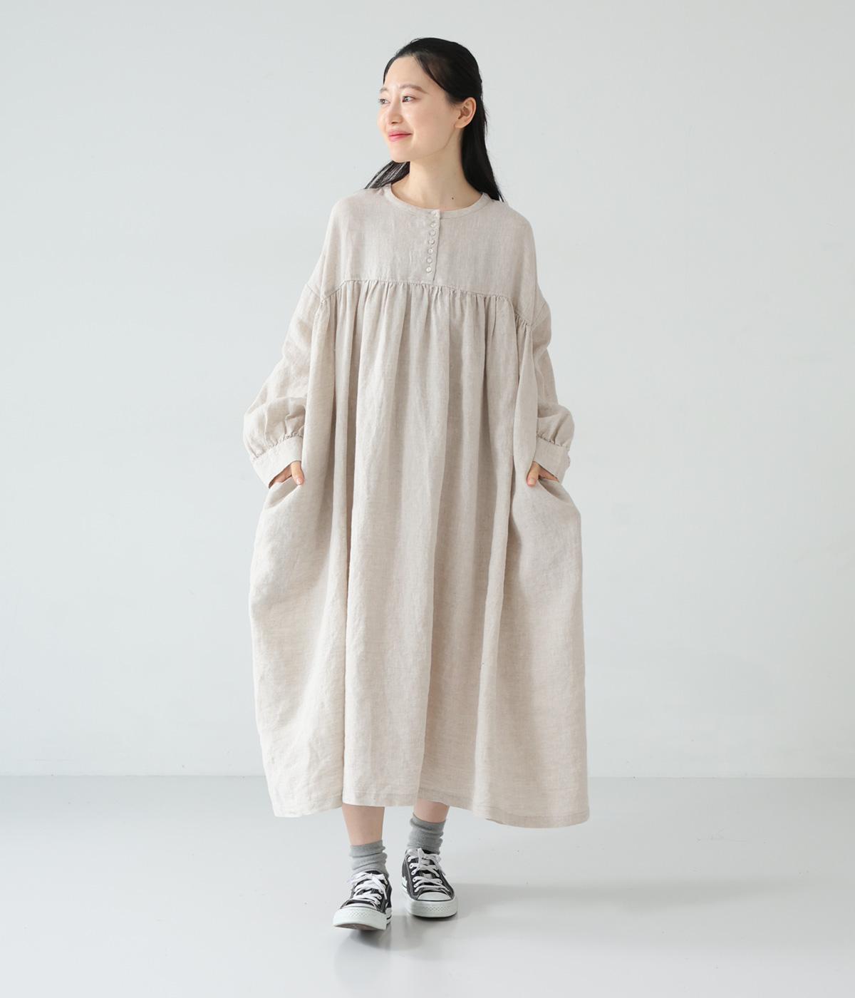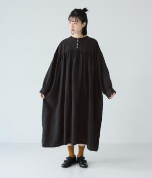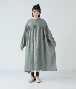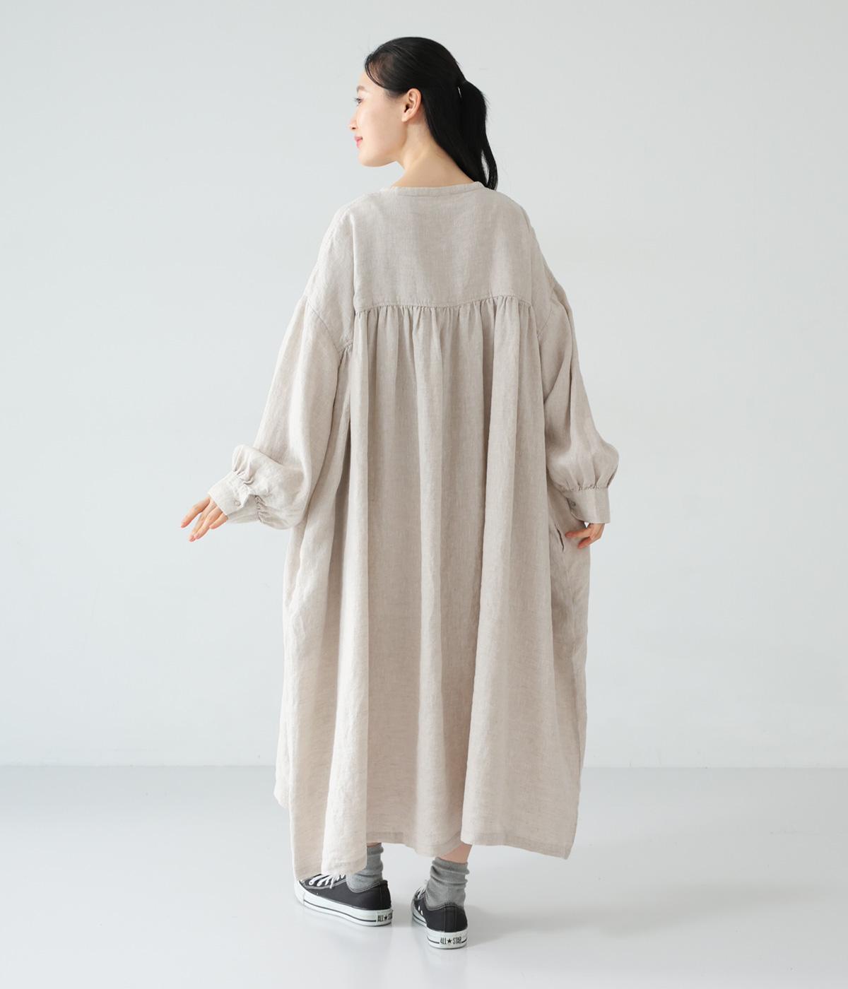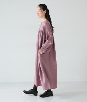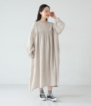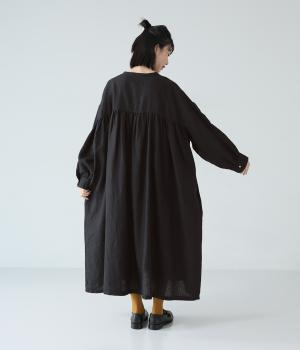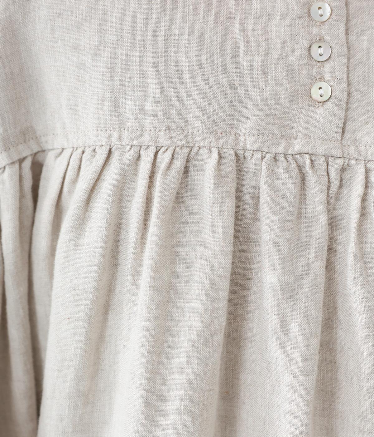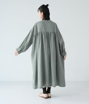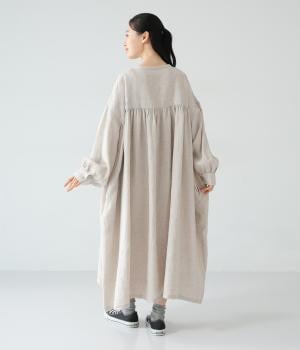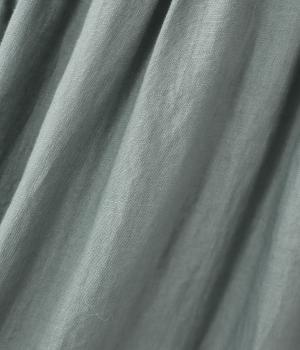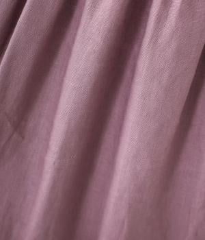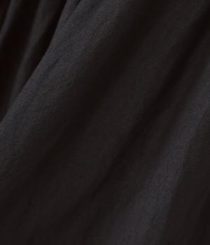 リネンならではのシャリ感が楽しめる薄めの素材。ロング丈でも重さを感じにくく、軽々と着られます。素材が持つざらりとした独特の手ざわりや色み、風合いを損なわないよう、洗濯時はネットを使用するのがおすすめ。