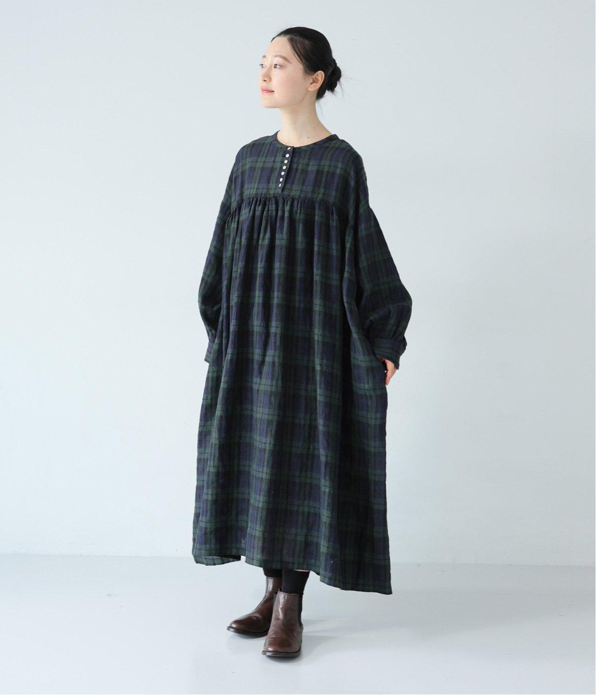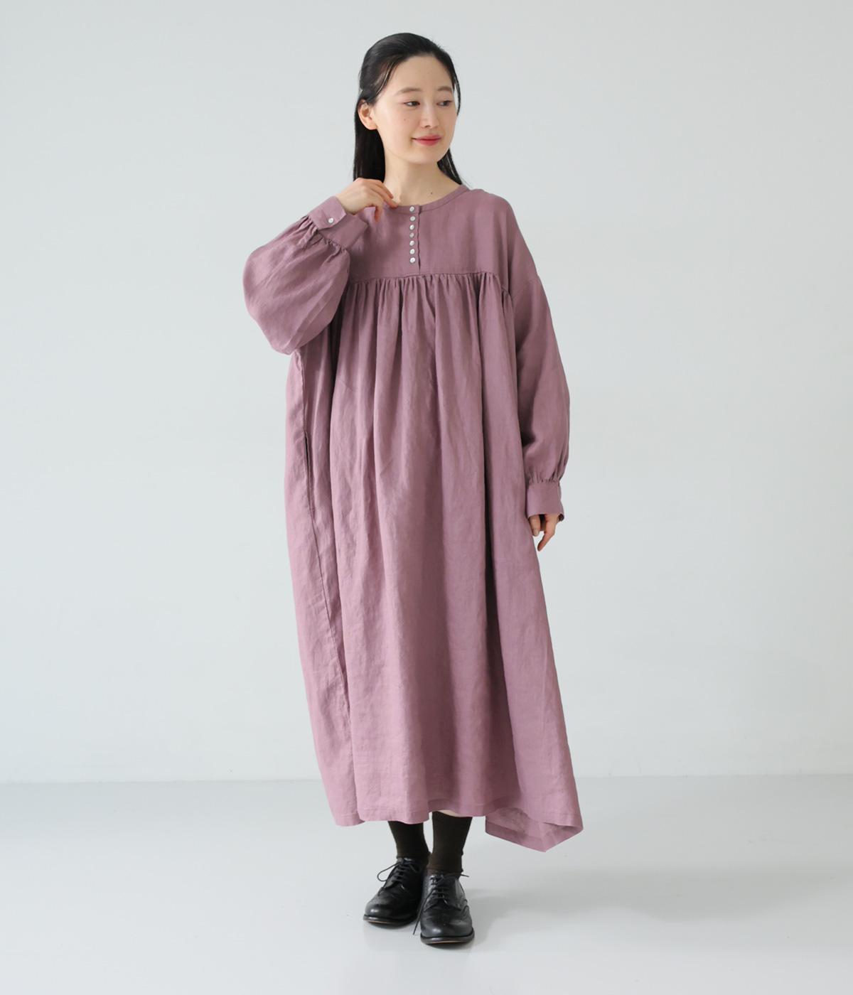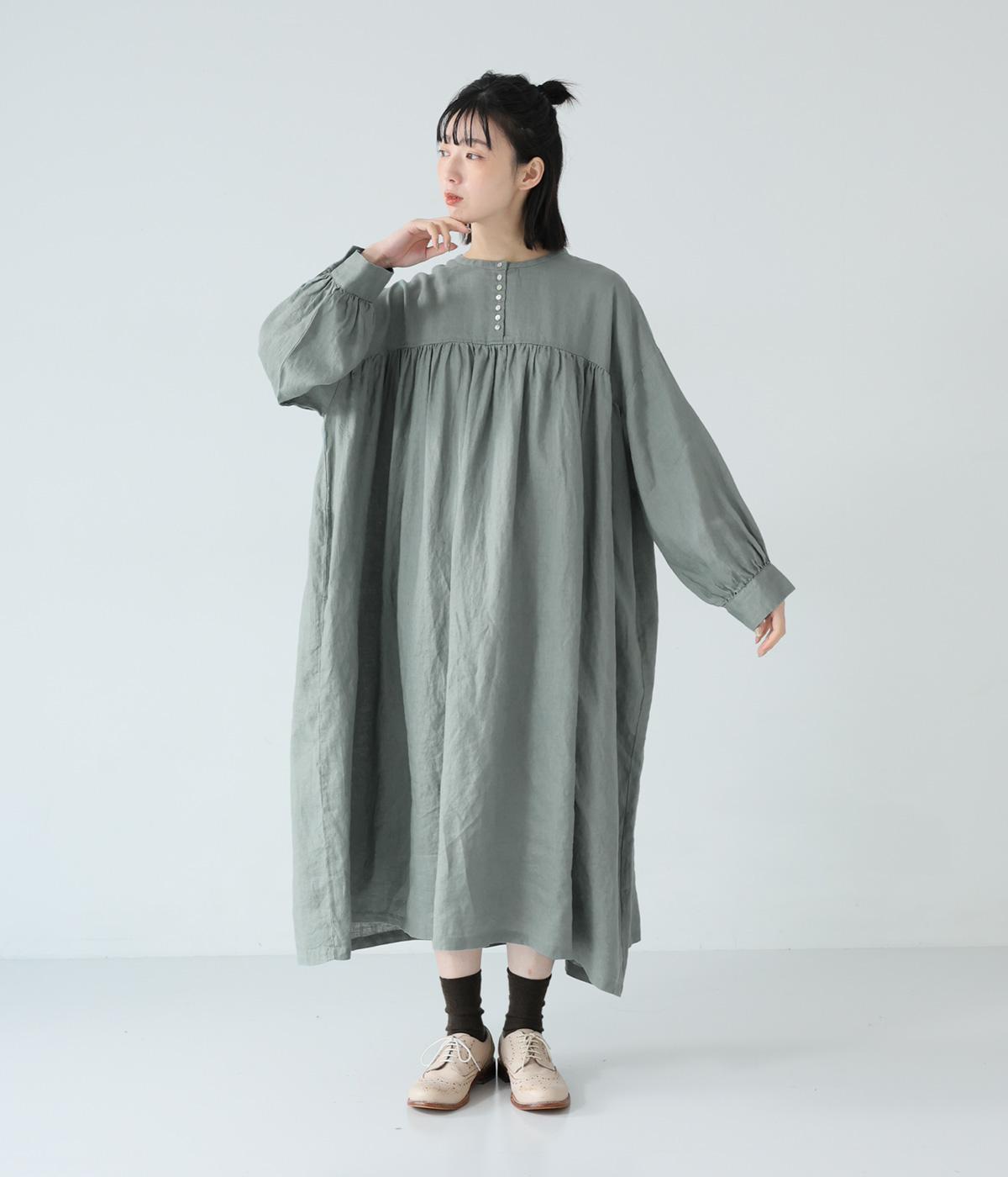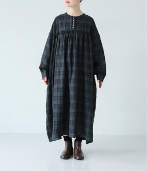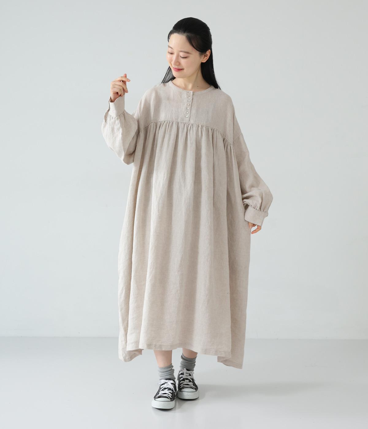 リネンならではのシャリ感が楽しめる薄めの素材。ロング丈でも重さを感じにくく、軽々と着られます。素材が持つざらりとした独特の手ざわりや色み、風合いを損なわないよう、洗濯時はネットを使用するのがおすすめ。