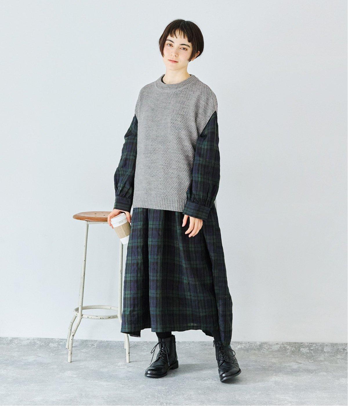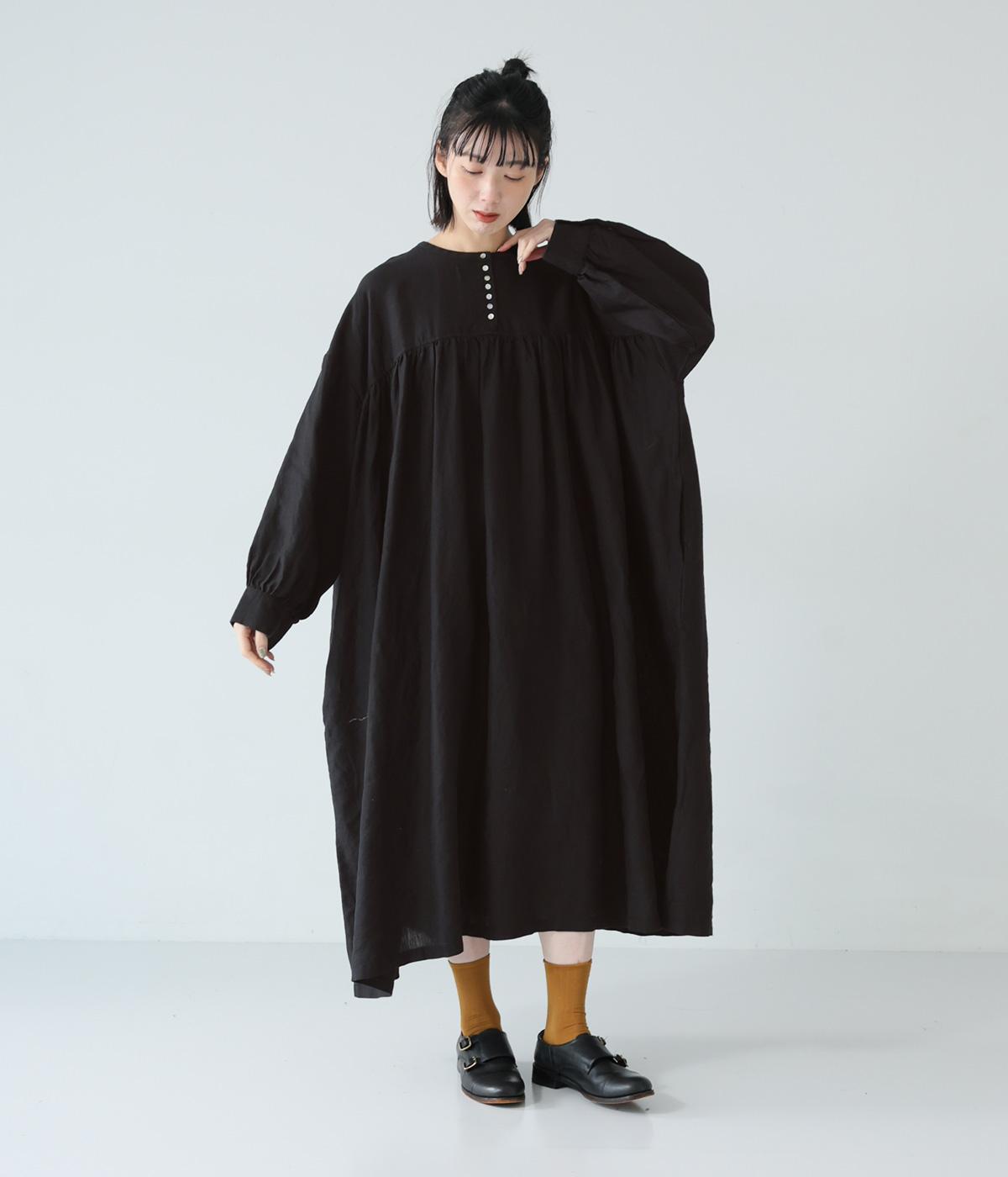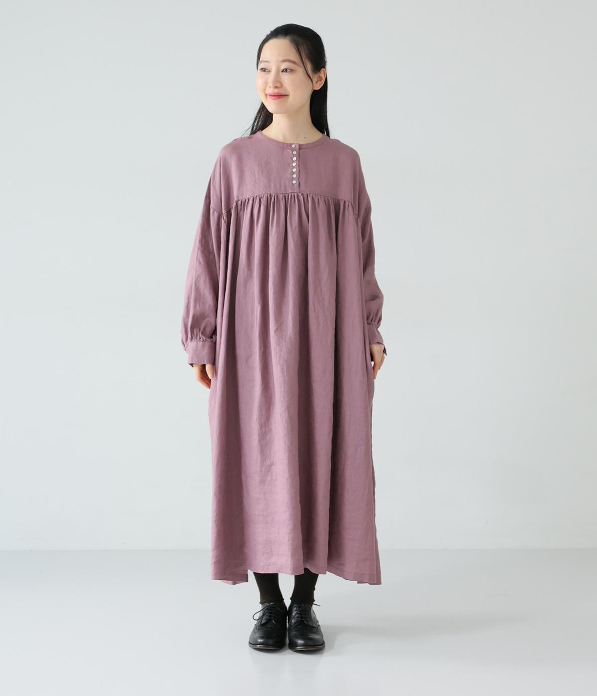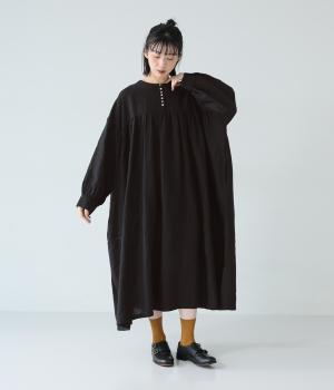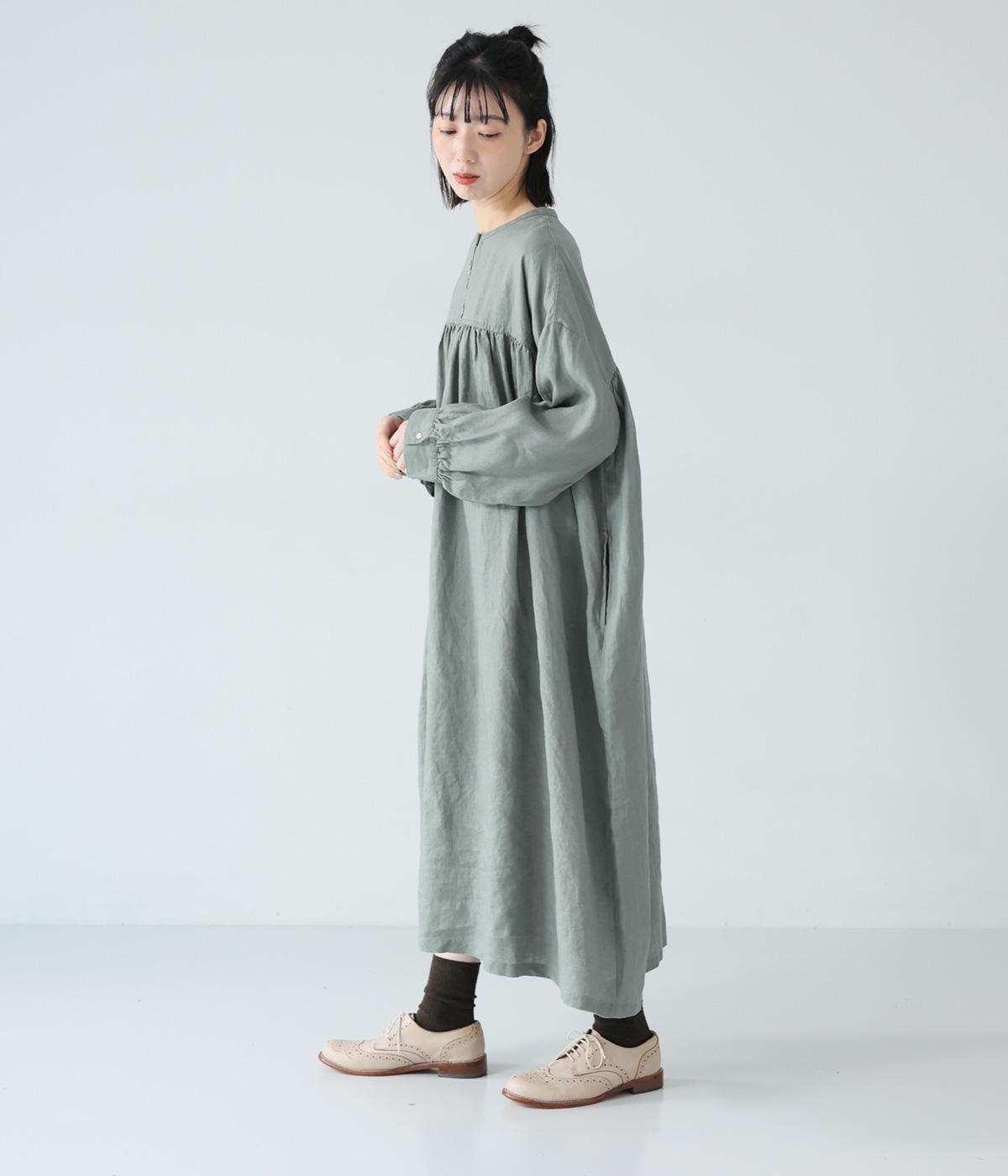 リネンならではのシャリ感が楽しめる薄めの素材。ロング丈でも重さを感じにくく、軽々と着られます。素材が持つざらりとした独特の手ざわりや色み、風合いを損なわないよう、洗濯時はネットを使用するのがおすすめ。