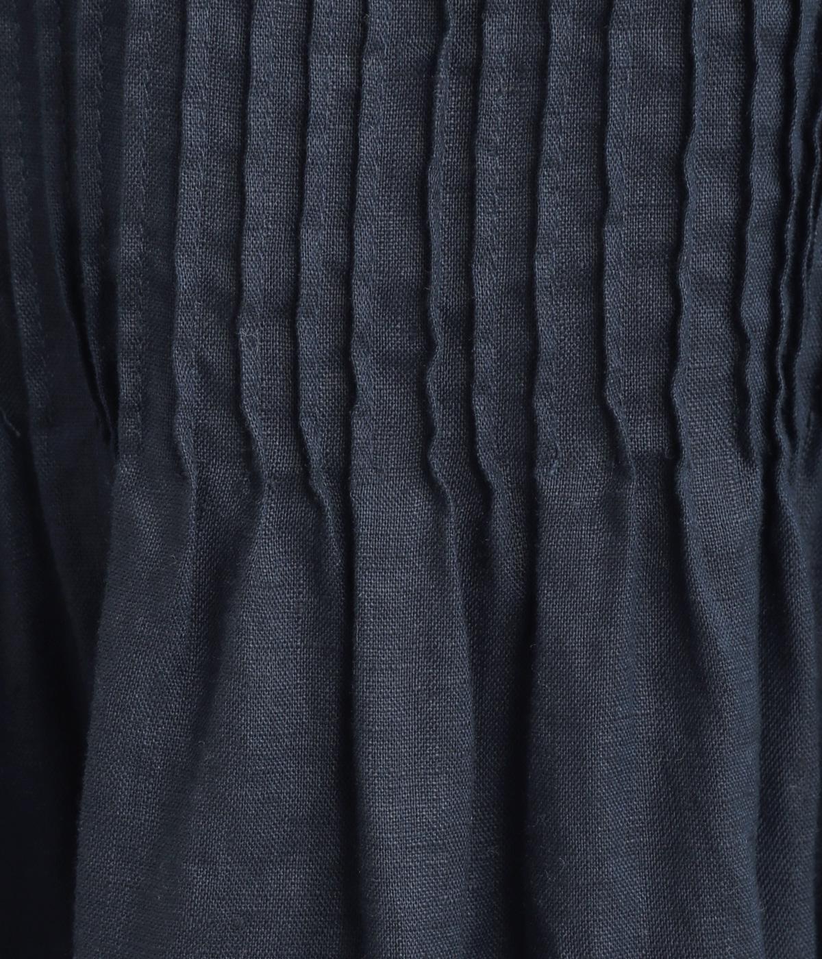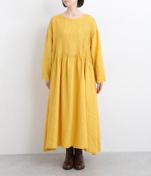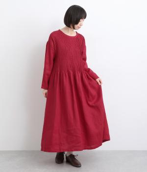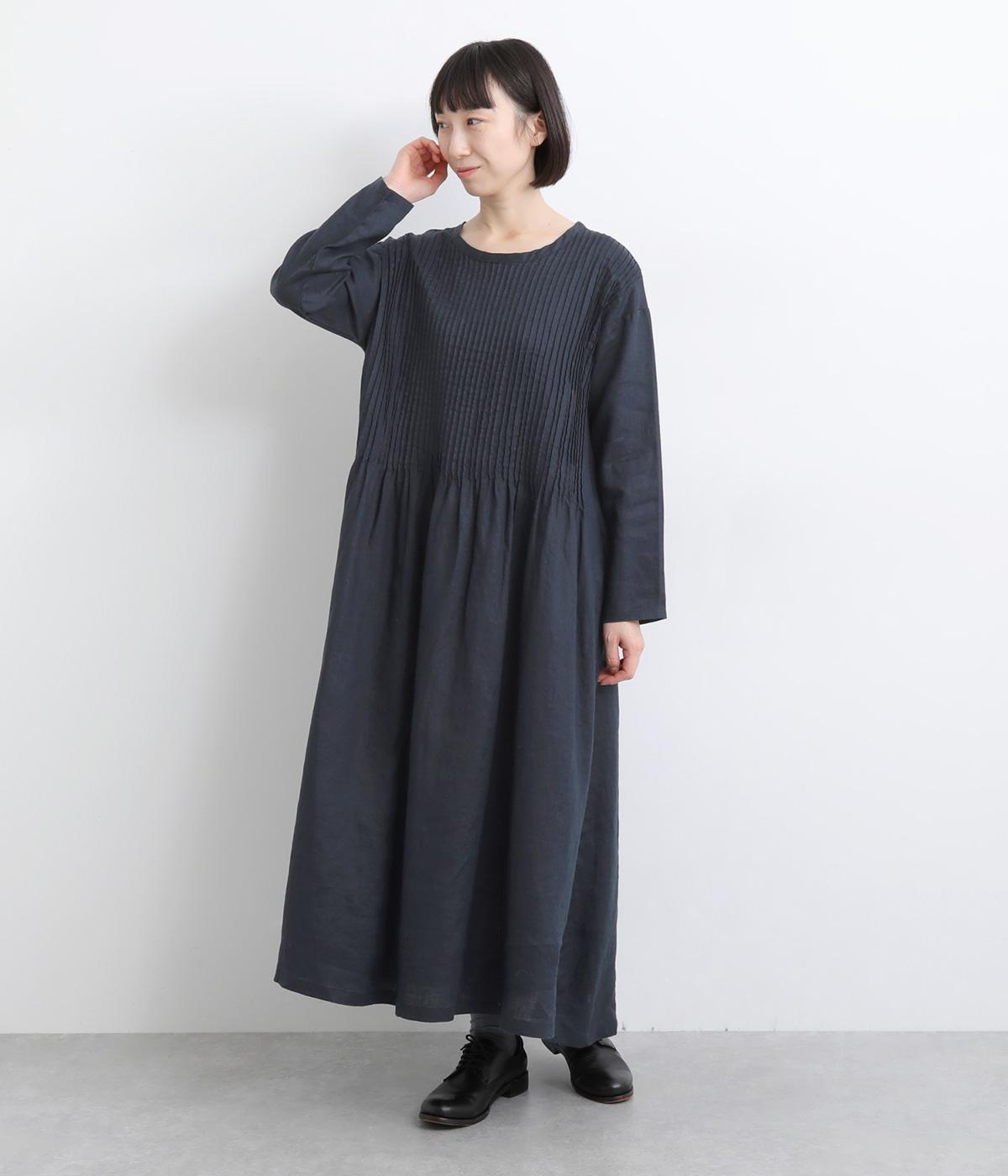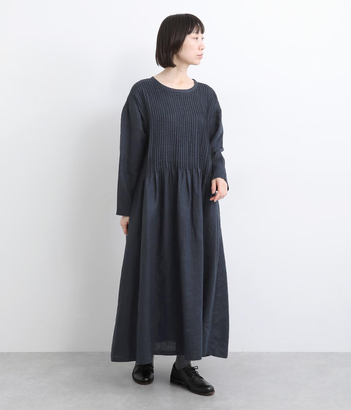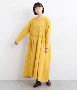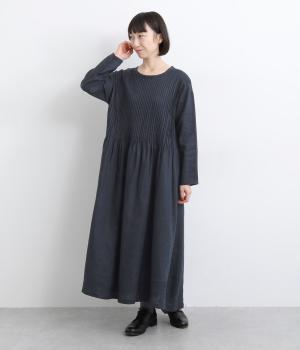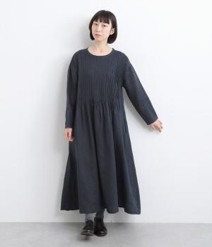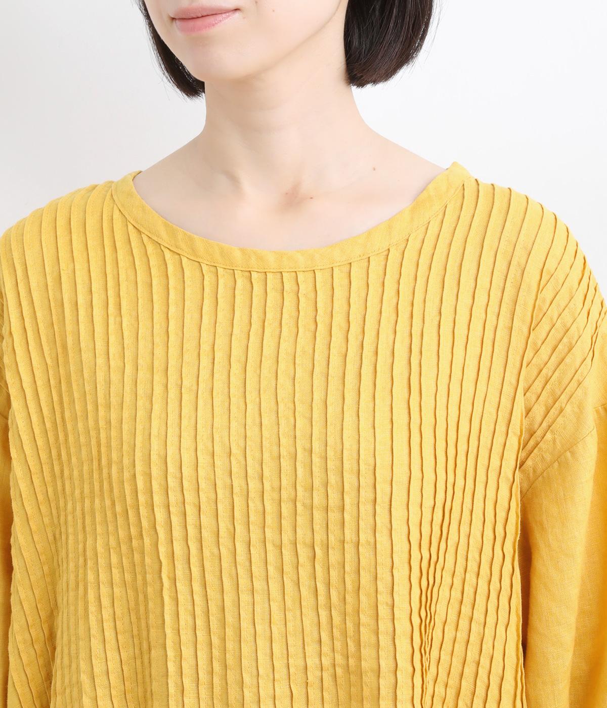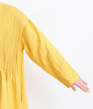 前身頃にピンタックをたっぷりと施し、ナチュラルな雰囲気のなかにクラシカルさをプラスしました。ゆるやかに広がるシルエットは、体のラインを拾いにくく、安心感のある着心地です。ゆったり感と上品さを併せ持ち、デイリーからおでかけまで幅広く活躍します。