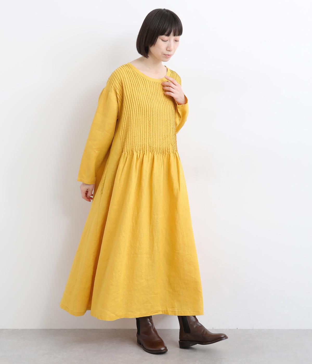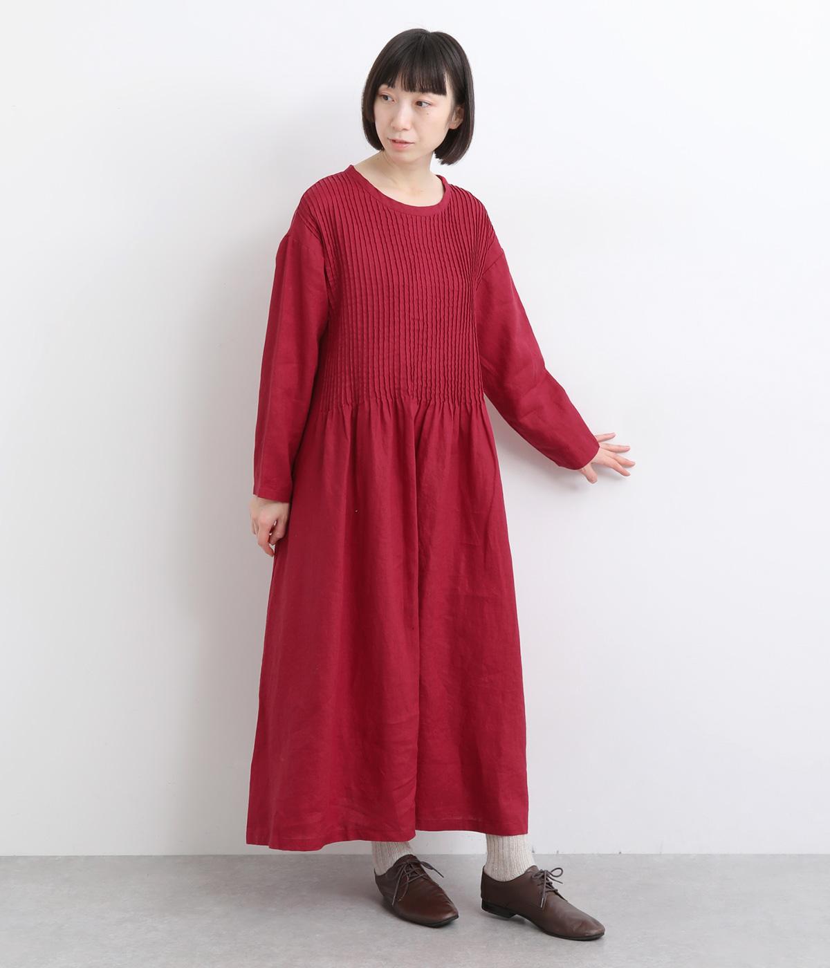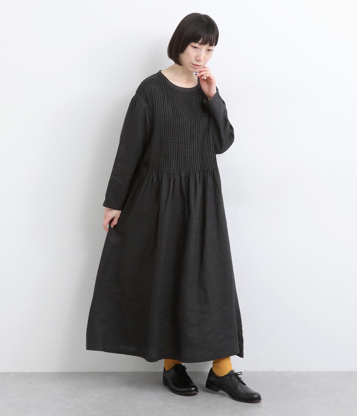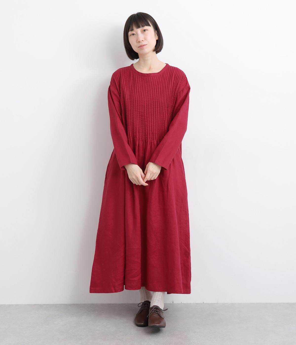前身頃にピンタックをたっぷりと施し、ナチュラルな雰囲気のなかにクラシカルさをプラスしました。ゆるやかに広がるシルエットは、体のラインを拾いにくく、安心感のある着心地です。ゆったり感と上品さを併せ持ち、デイリーからおでかけまで幅広く活躍します。