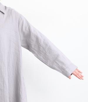 自然なツヤとシャリ感が魅力のリネン生地を使用。さらりとした軽さがあり、季節を通して快適に着用できる素材です。時間を重ねるほどにやわらかくなじみ、自分らしい表情へと育つたのしみがあります。