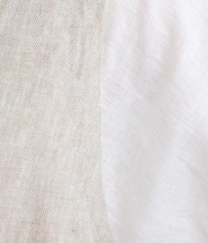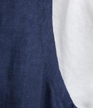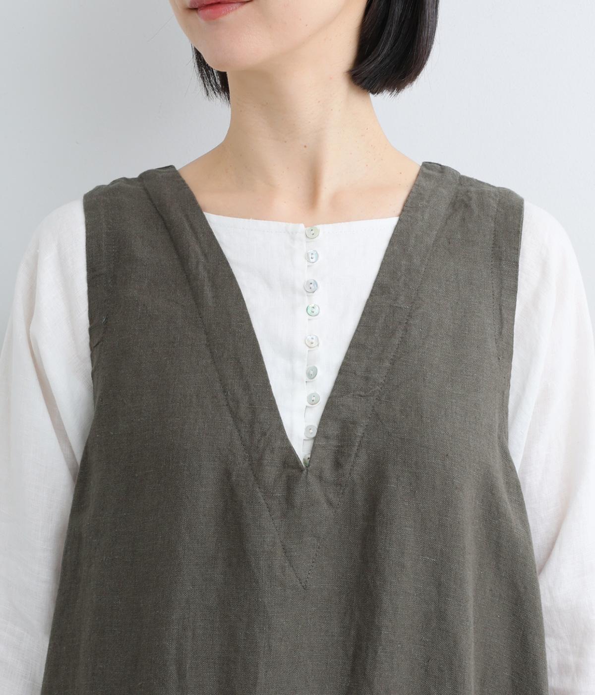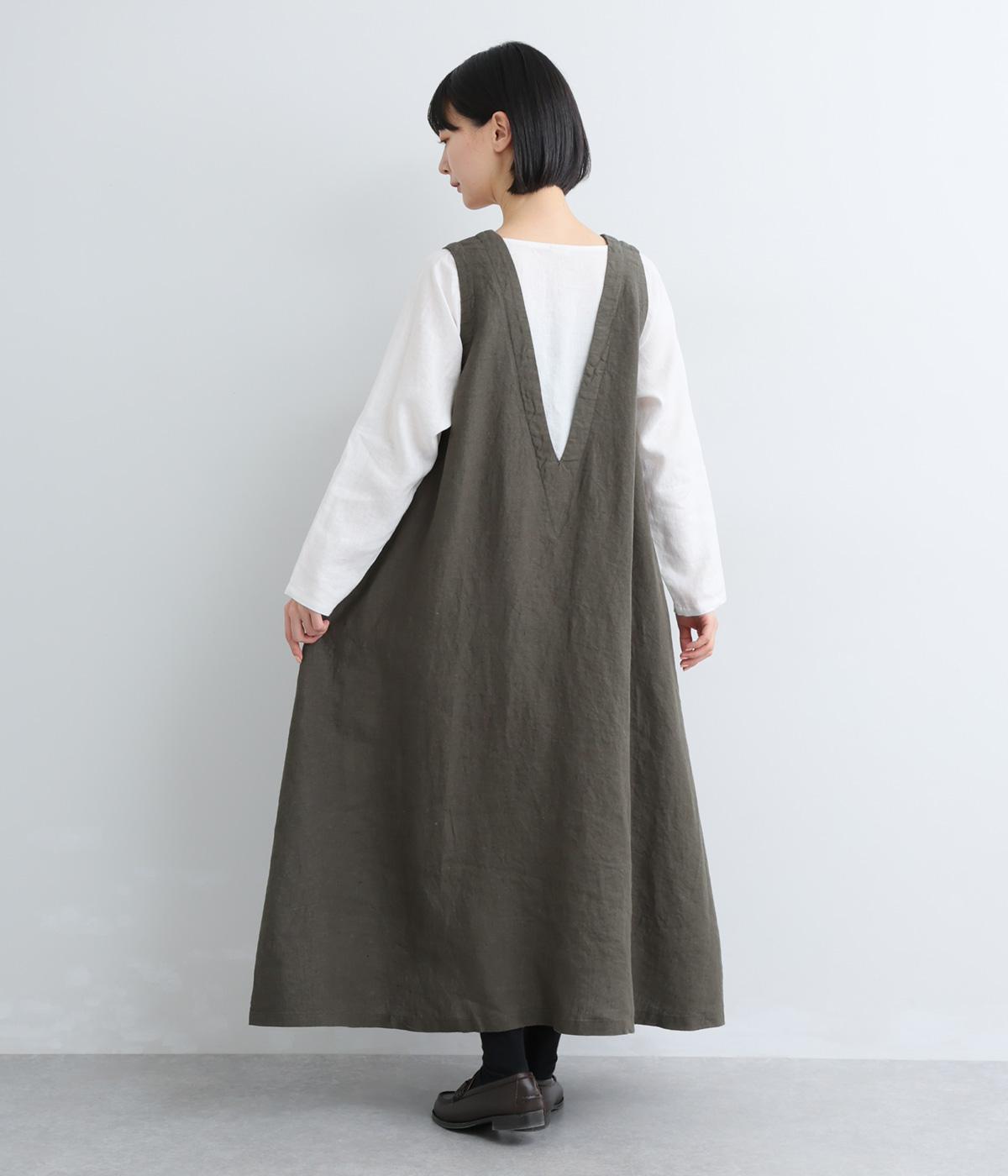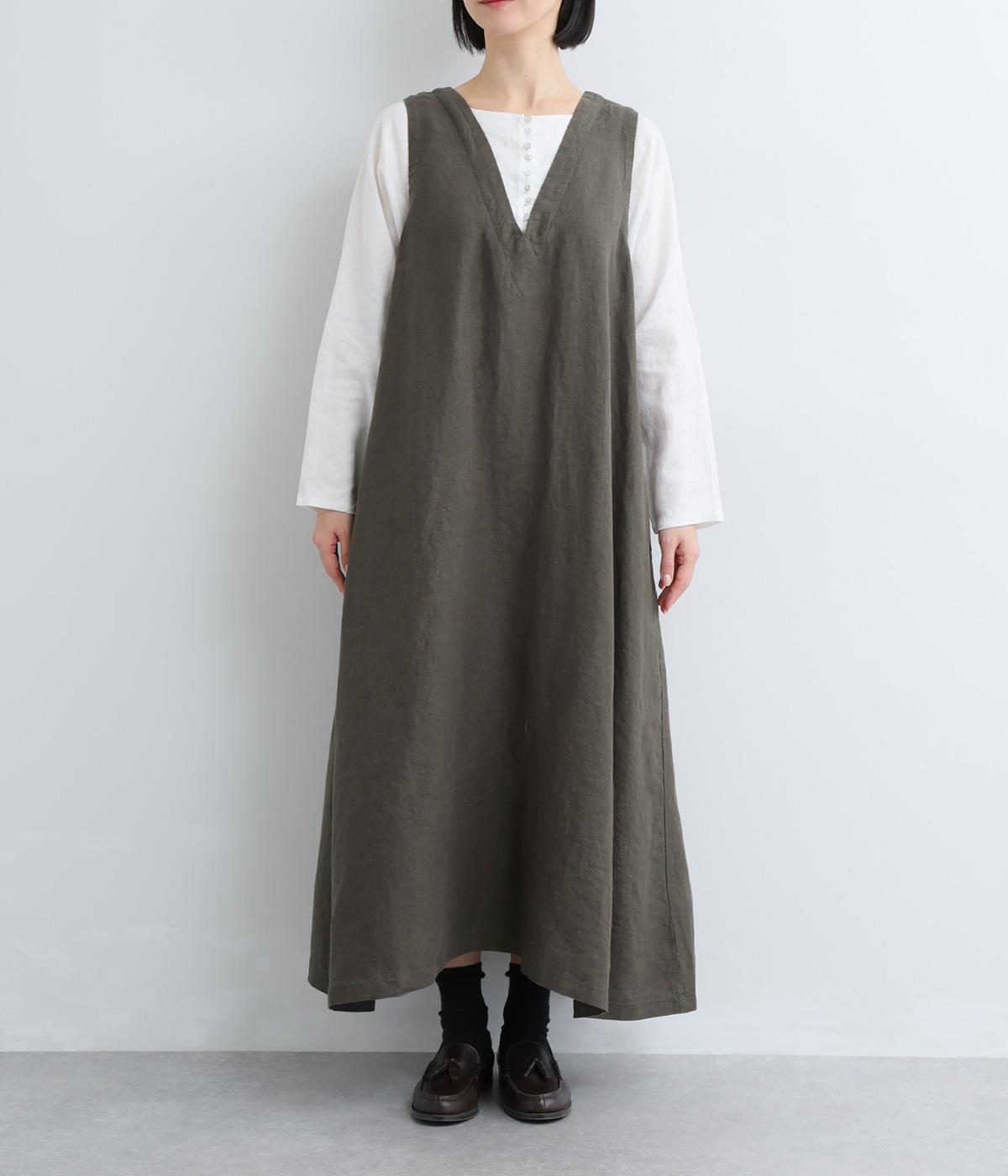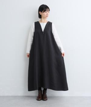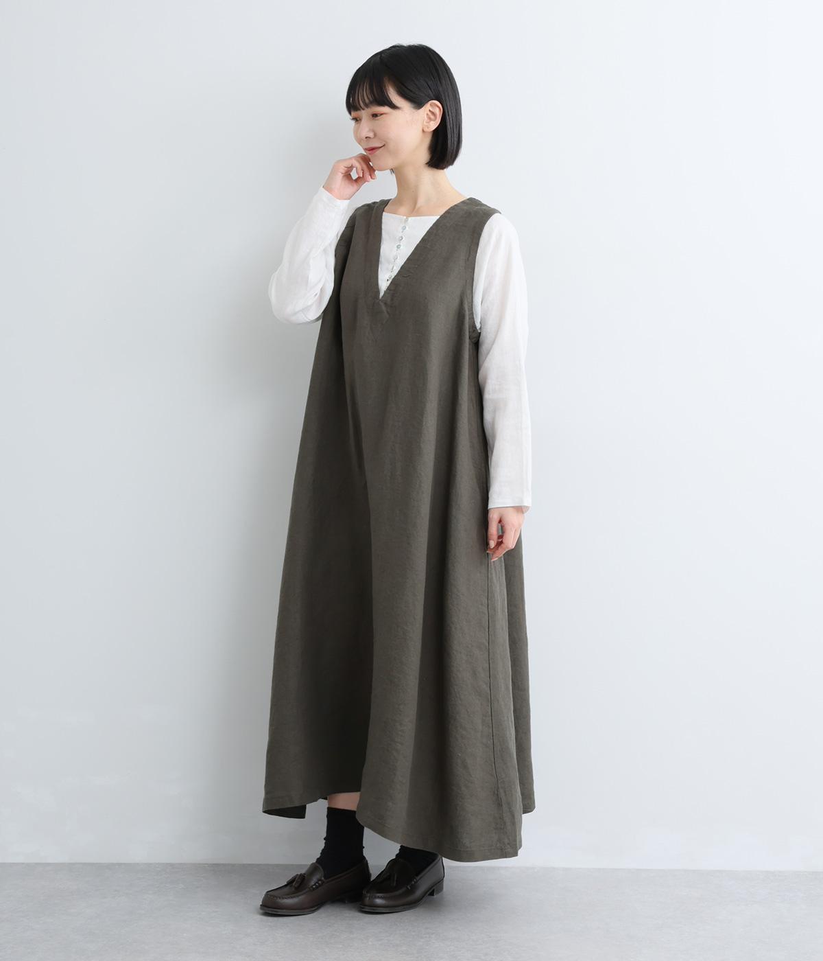 やや太めの糸で織った9番手リネンでワンピース部分を、やや細めの14番手リネンでブブラウス部分を仕立てました。しなやかなハリが美しいシルエットを保ちます。