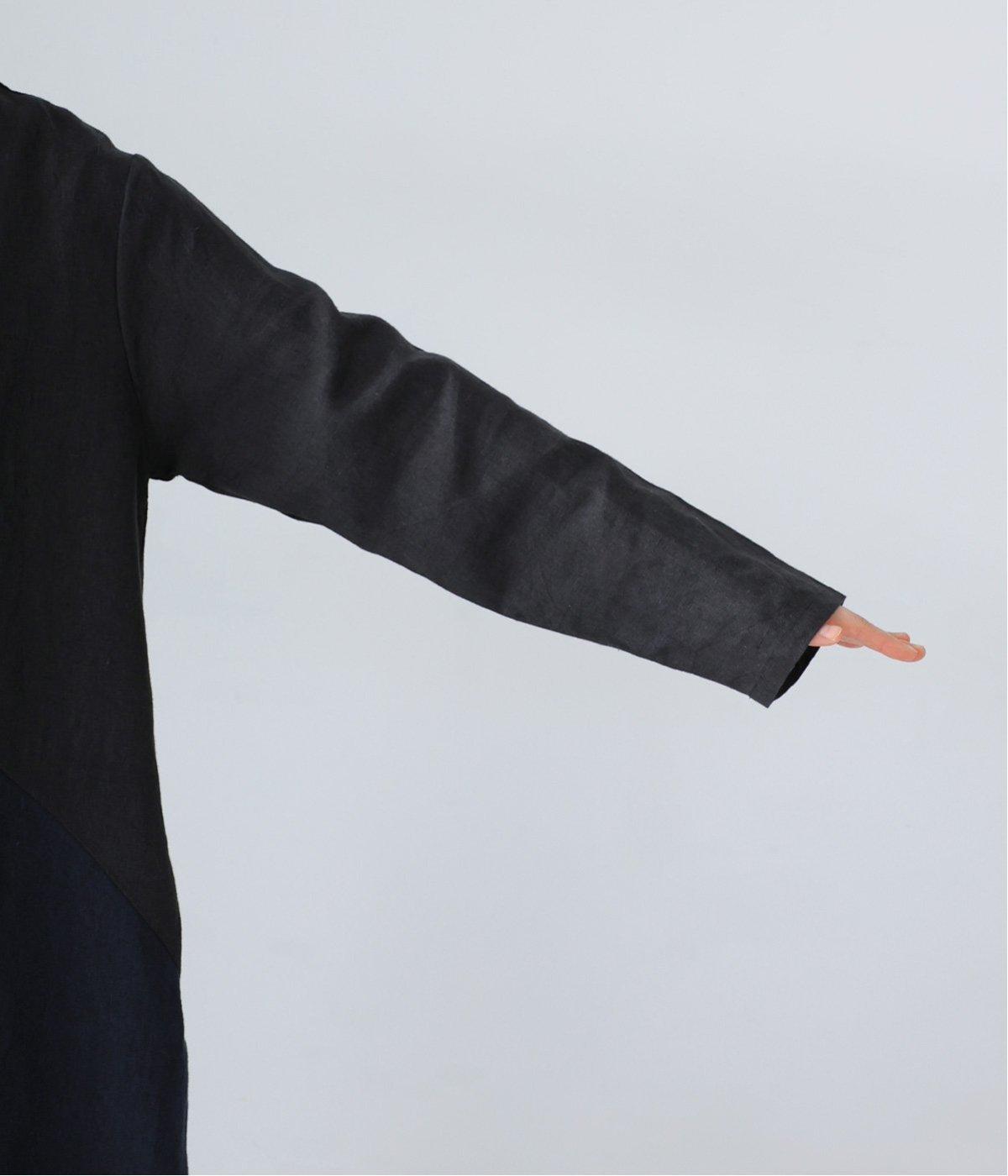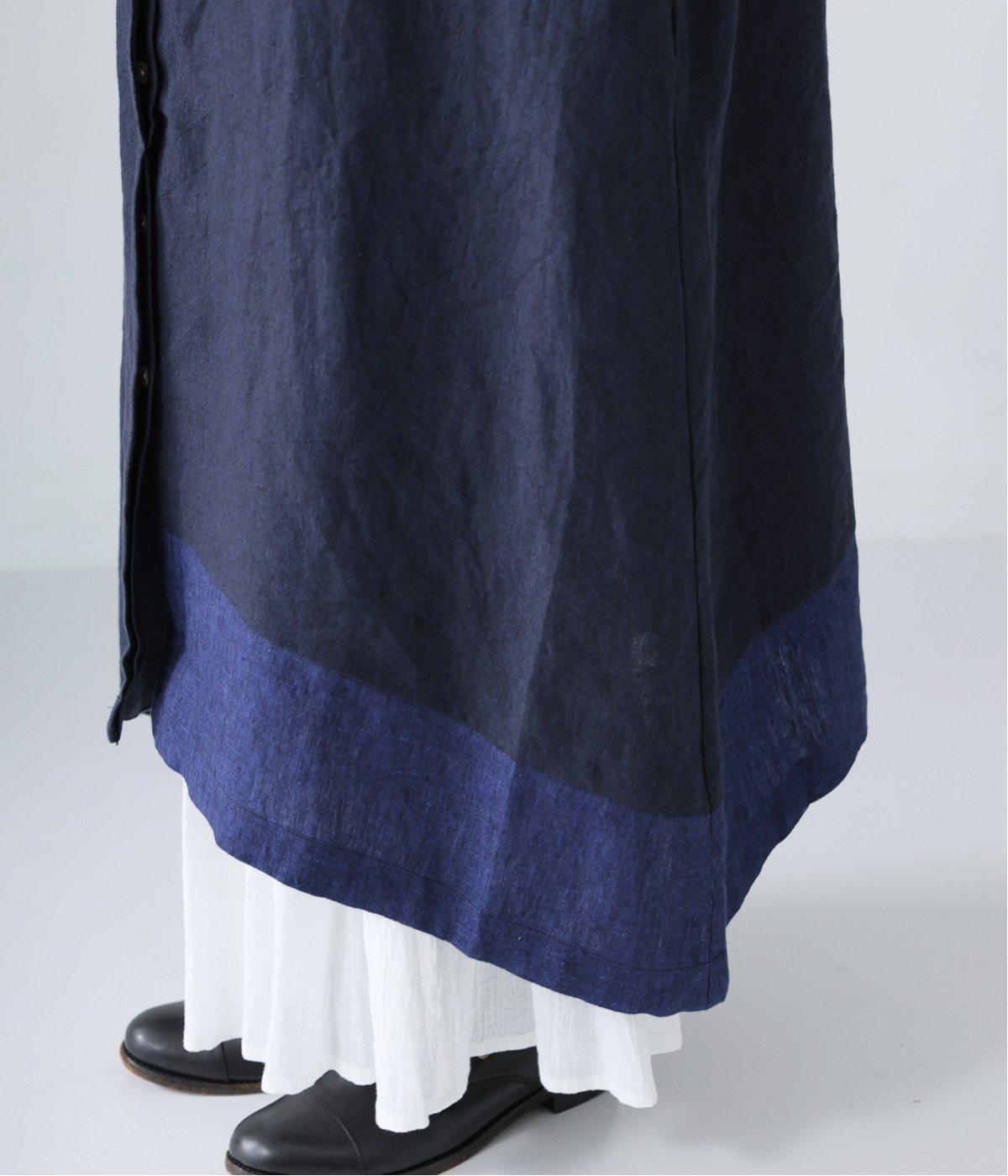 裾の片側に配したインディゴカラーが、動きのあるシルエットにさりげない彩りをプラス。