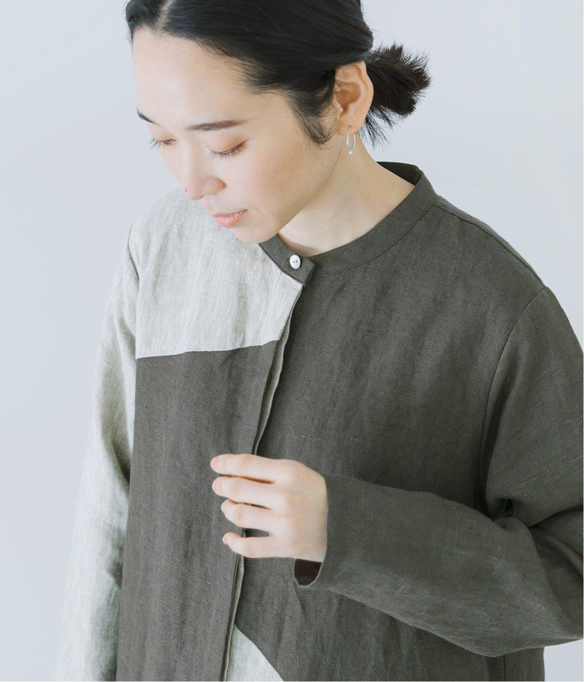 3色のリネン生地を組み合わせることで、シンプルながら奥行きのある表情を生み出しています。
