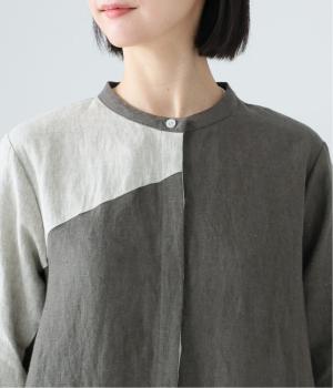 バンドカラーと、比翼仕立てのディテールが上品な印象。