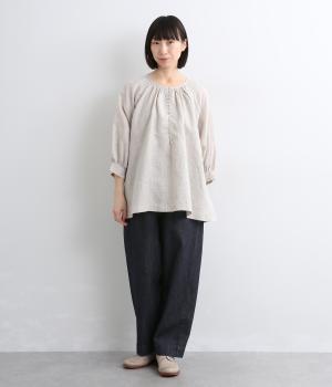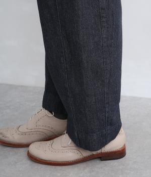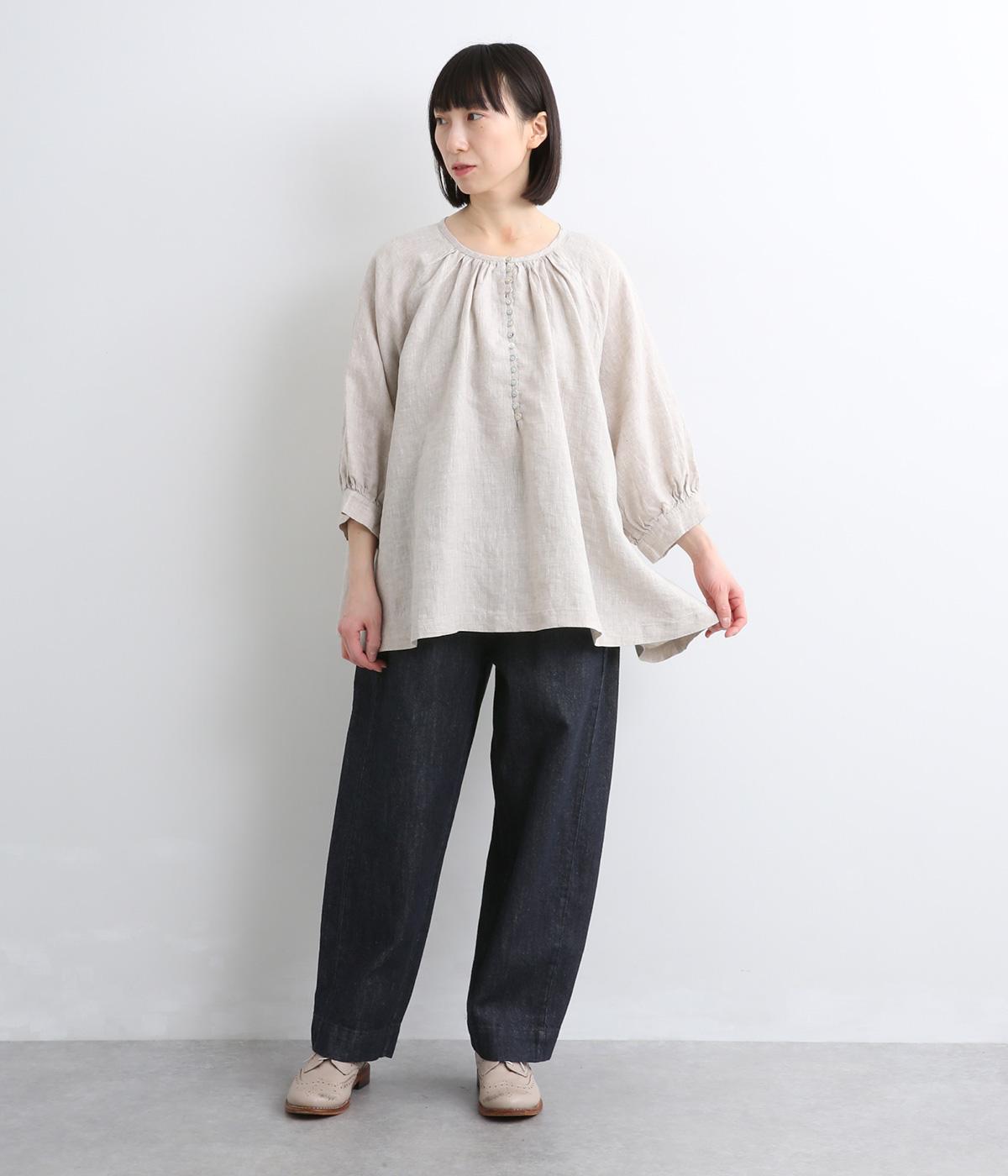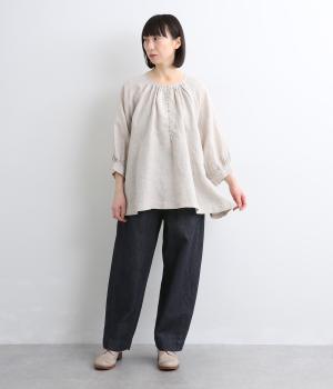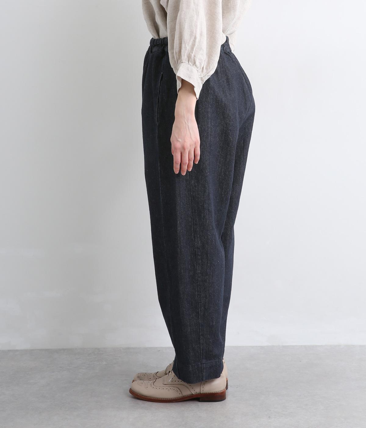 デニムらしいタフさを残しながらもナチュラル感を高めたリネンコットンを使用。オールシーズン着まわせる中厚手生地で、経年変化もたのしみです。