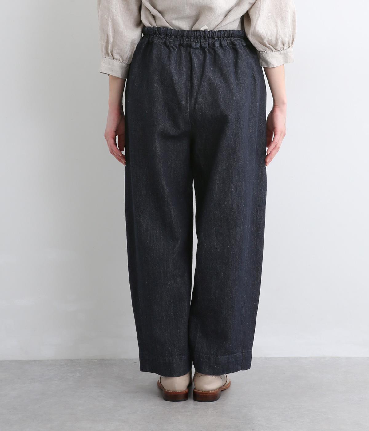 立体的でゆったりとしたはき心地とすっきり感を兼ね備えた脇の切り替えがこだわりポイント。スタイリングしやすくデイリースタイルの欠かせない一本に。ウエストはオールゴムに調整紐入りのイージー仕様。
