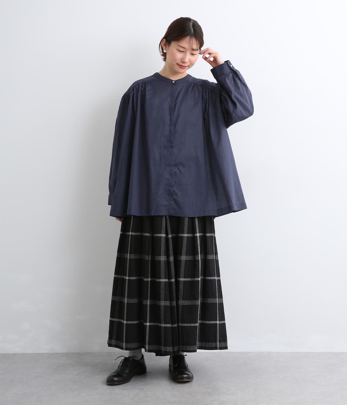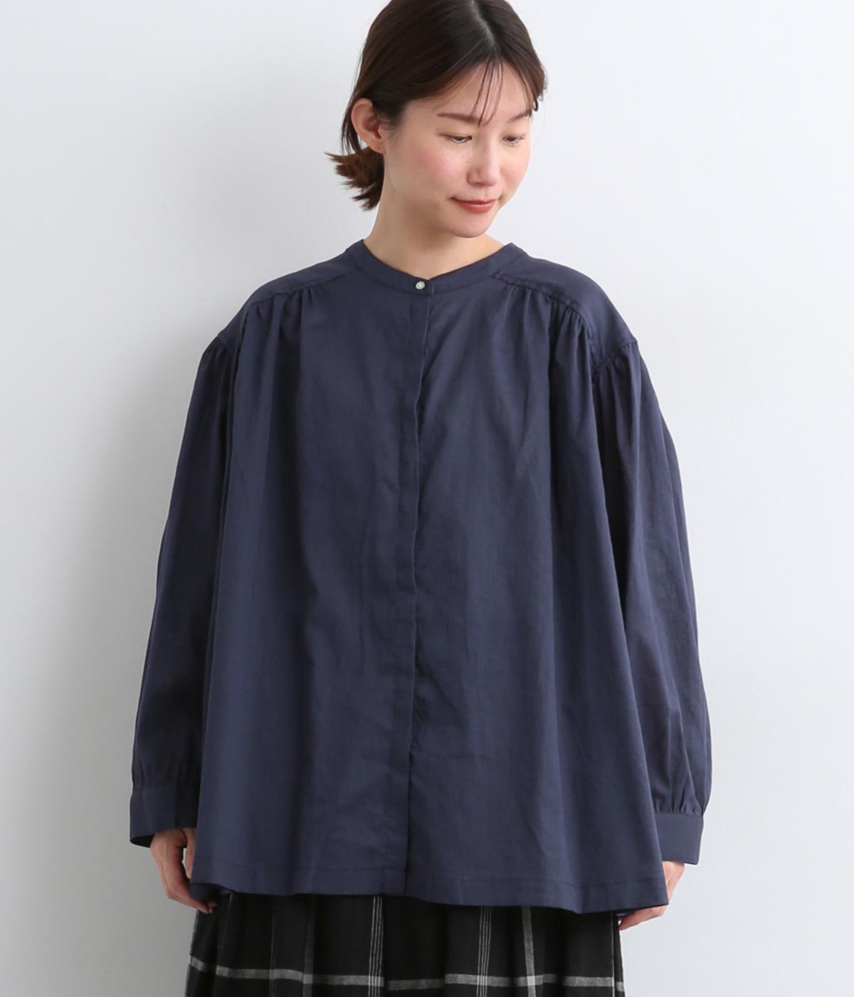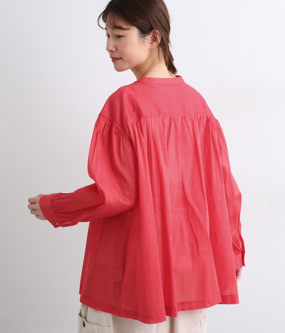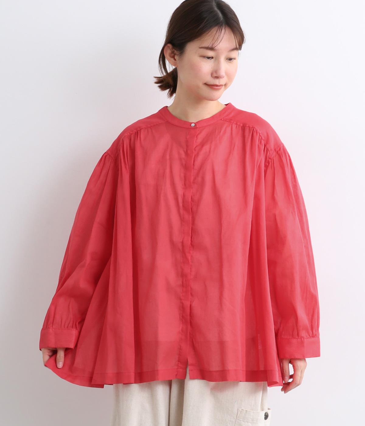 肩ヨークにギャザーを入れてフレアシルエットに仕立てた、シンプルながらも着映えするブラウス。ハリ感のある素材がエアリーな着心地を生み、ほんのり透けるのでレイヤードもたのしめます。比翼仕立てで羽織り使いもおすすめ。