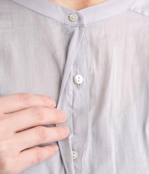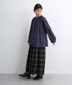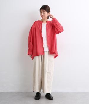 薄手で透け感のあるラミーコットンを使用しています。ほのかなコシやふくらみがあるので着映え力もあり、やさしい微光沢でナチュラルななかにも品の良さを感じさせます。