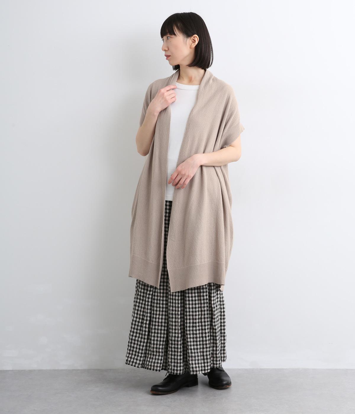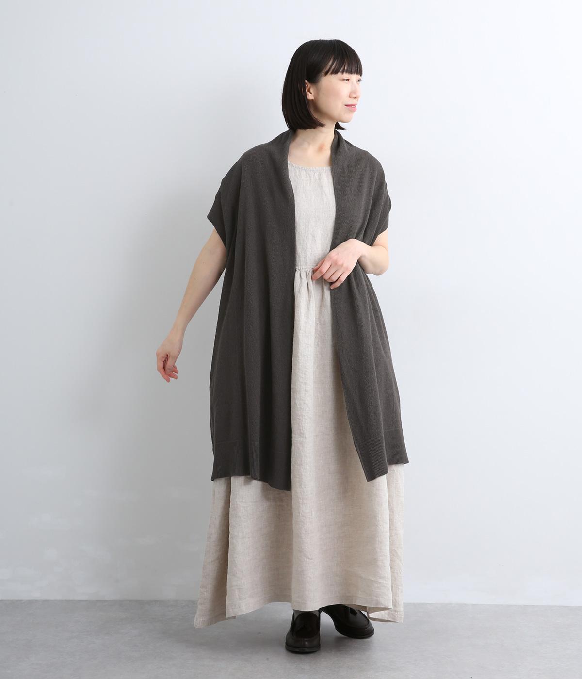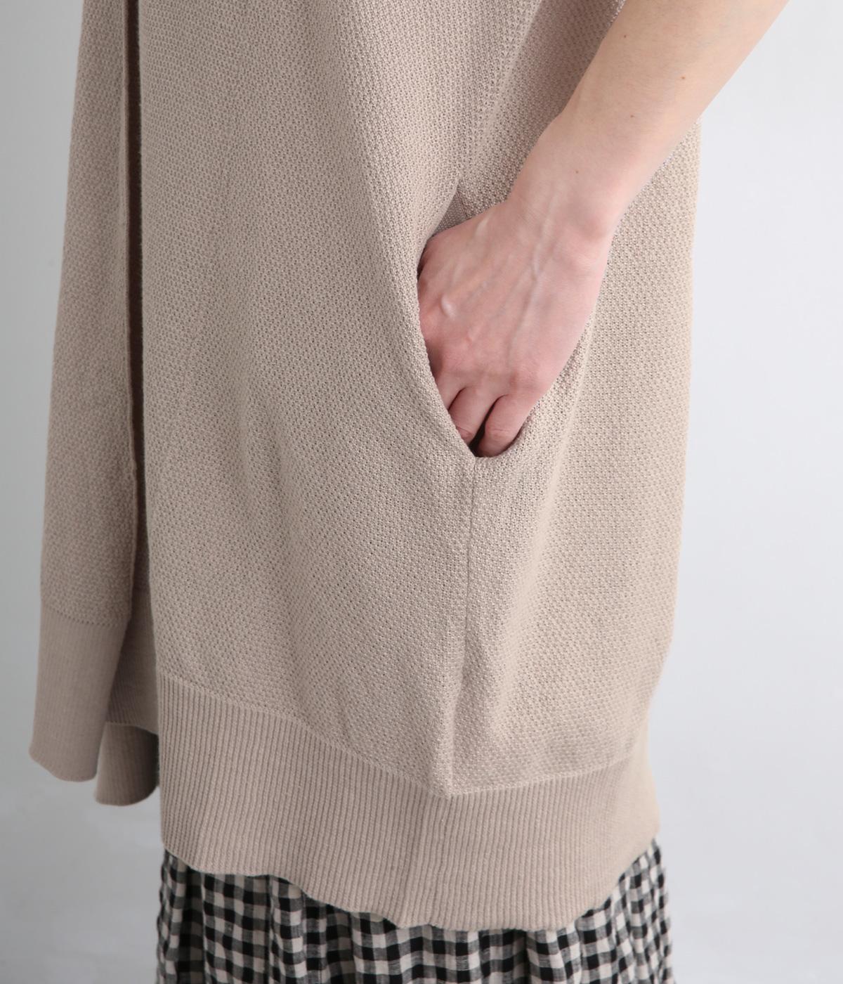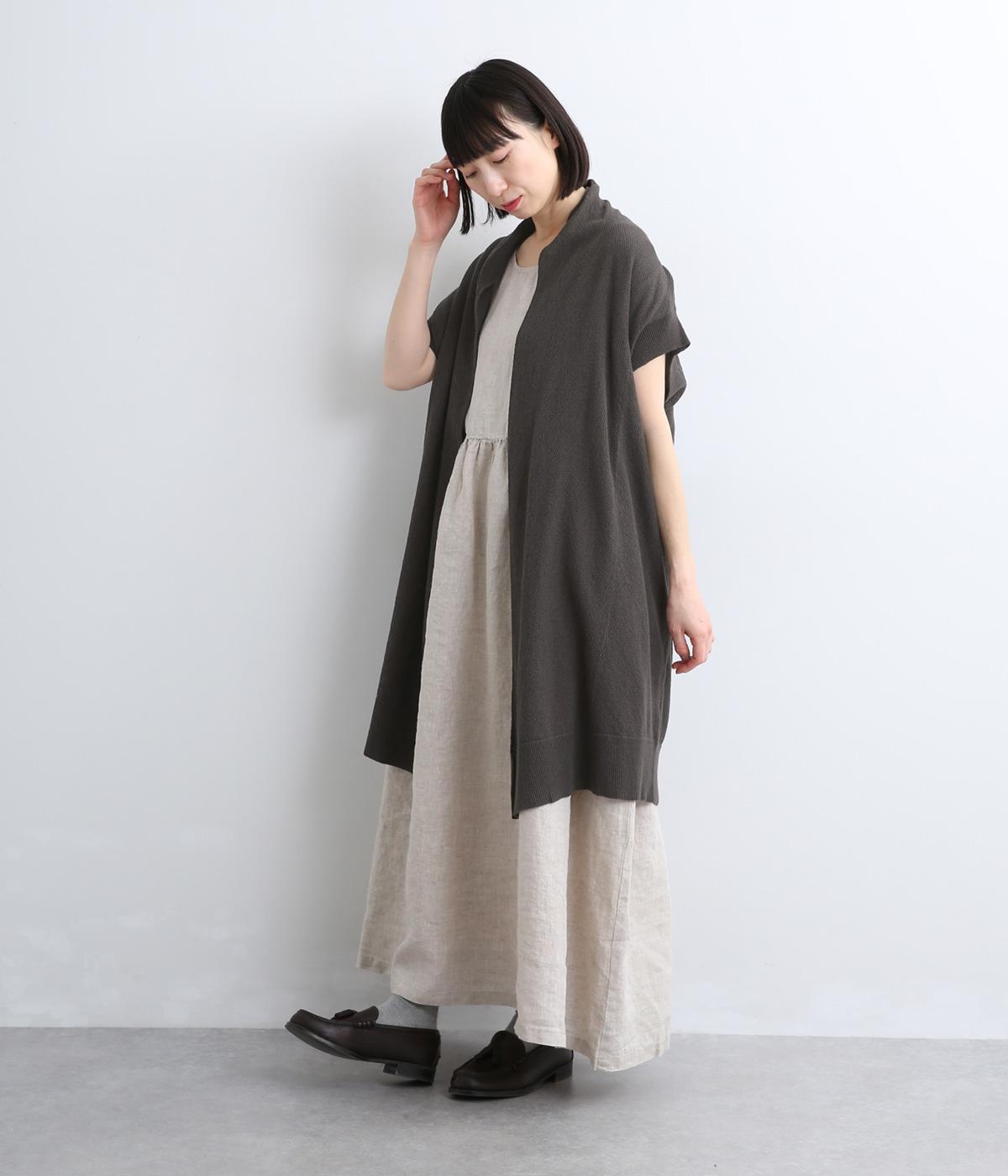さらりとしたドライタッチに感触のある表面感が着心地の良さを約束するコットンリネンの鹿の子編みニット。やや薄手で伸縮性もあるのでレイヤードに最適な生地感です。