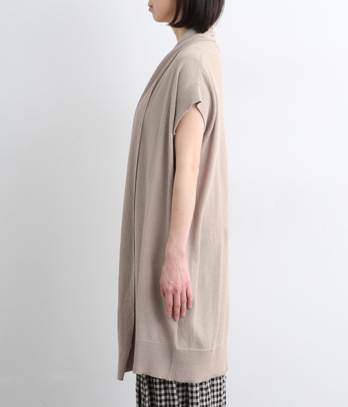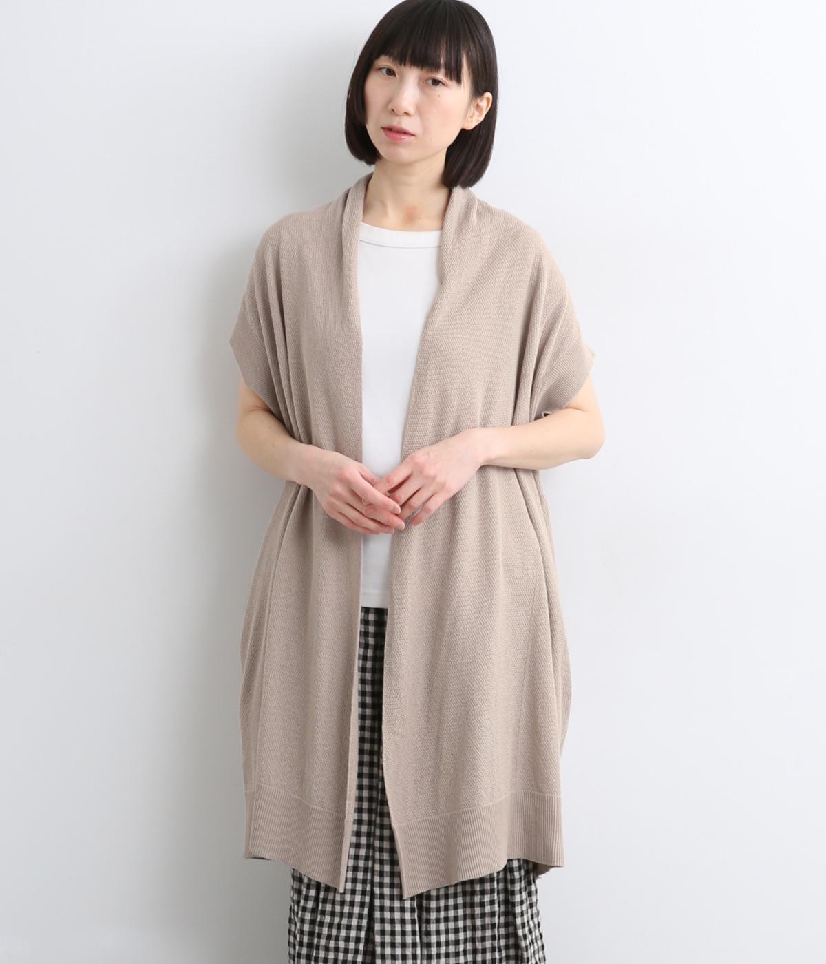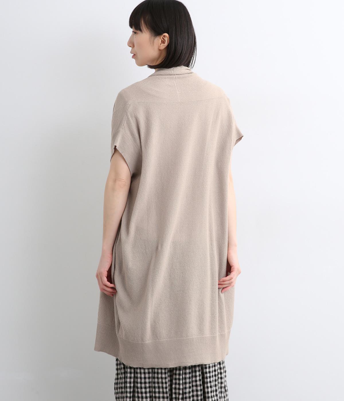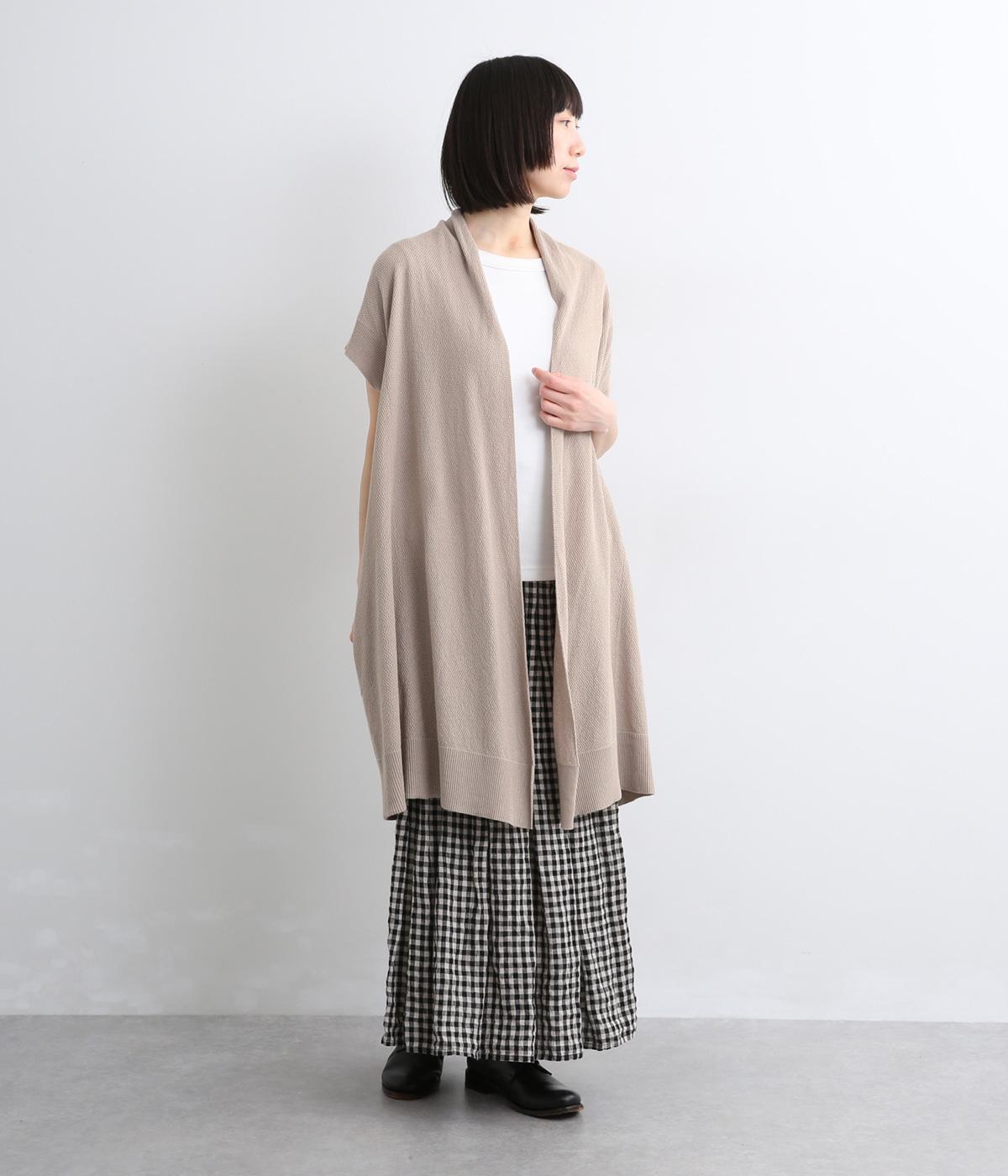 さらりとしたドライタッチに感触のある表面感が着心地の良さを約束するコットンリネンの鹿の子編みニット。やや薄手で伸縮性もあるのでレイヤードに最適な生地感です。