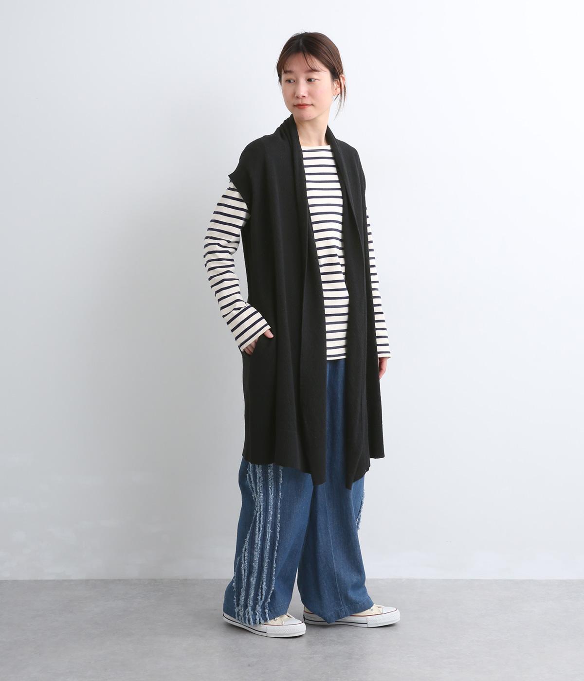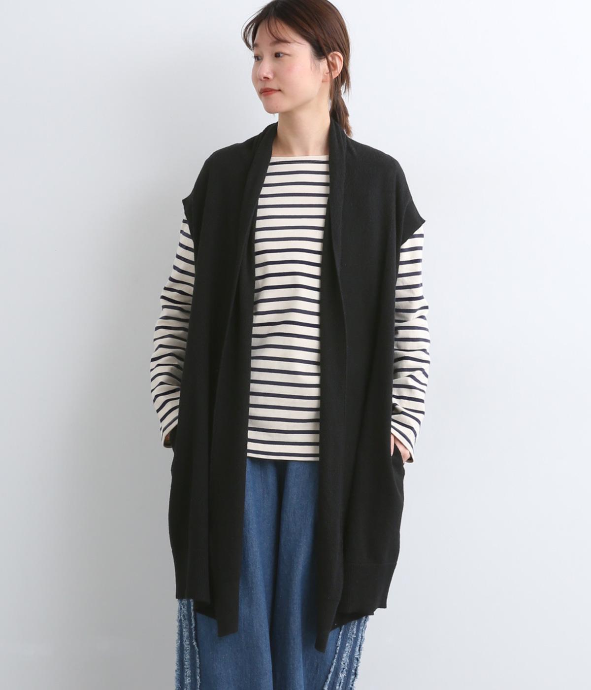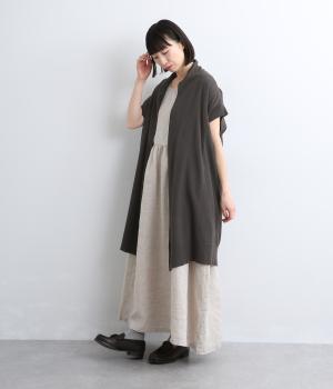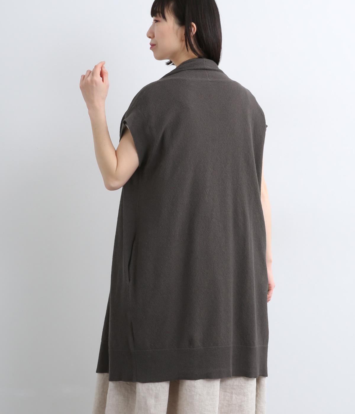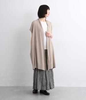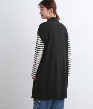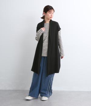 ロングジレのようにラフにレイヤードするだけでサマになる、ノースリーブ仕様のロング羽織り。スタイリングにタテラインをつくるので、全体をすっきり&優雅にまとめてくれます。便利なポケットつきで実用性も◎。