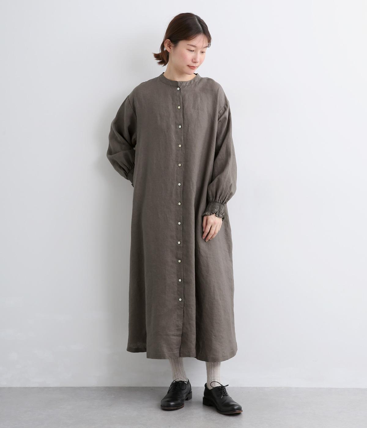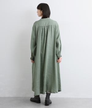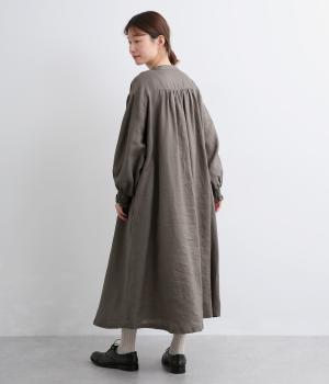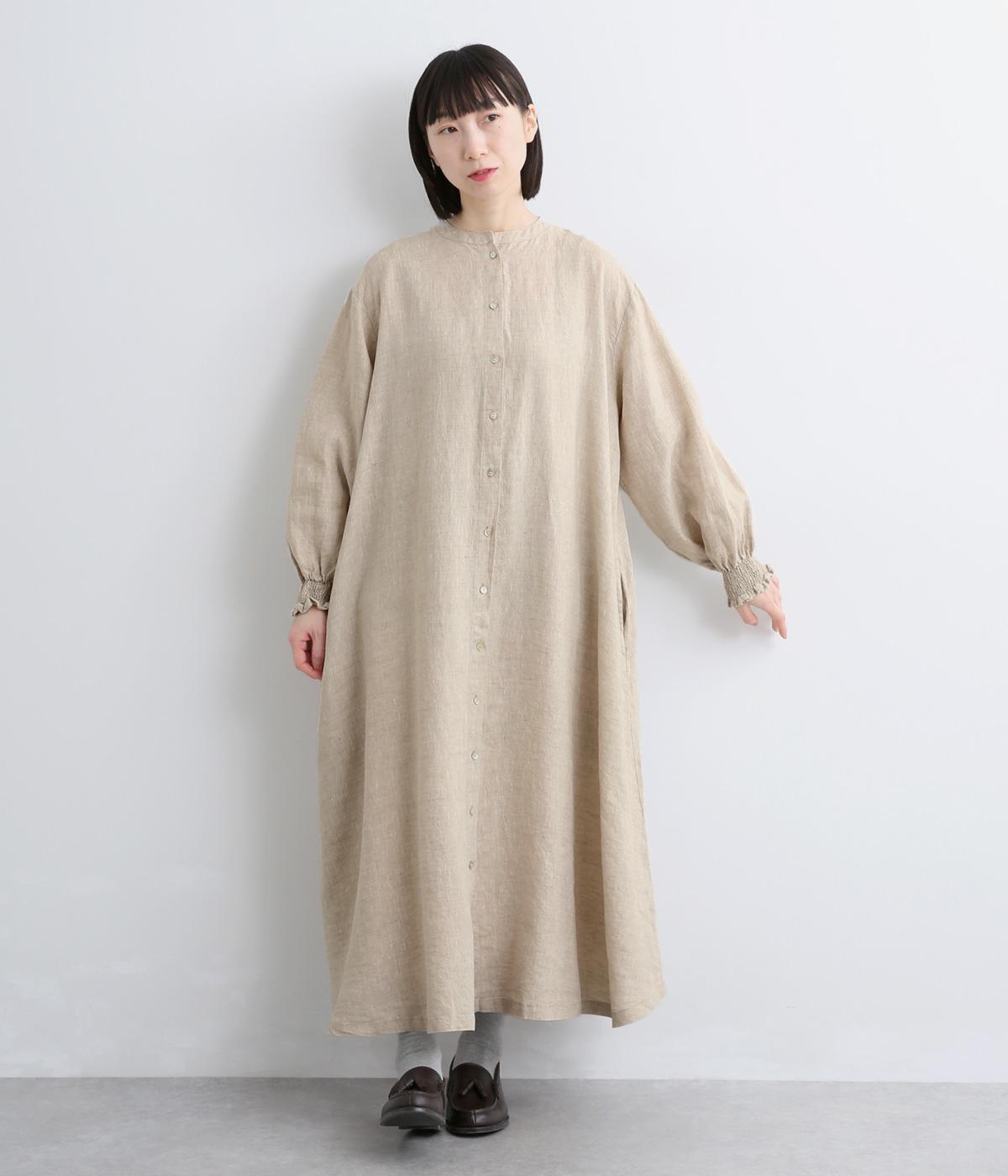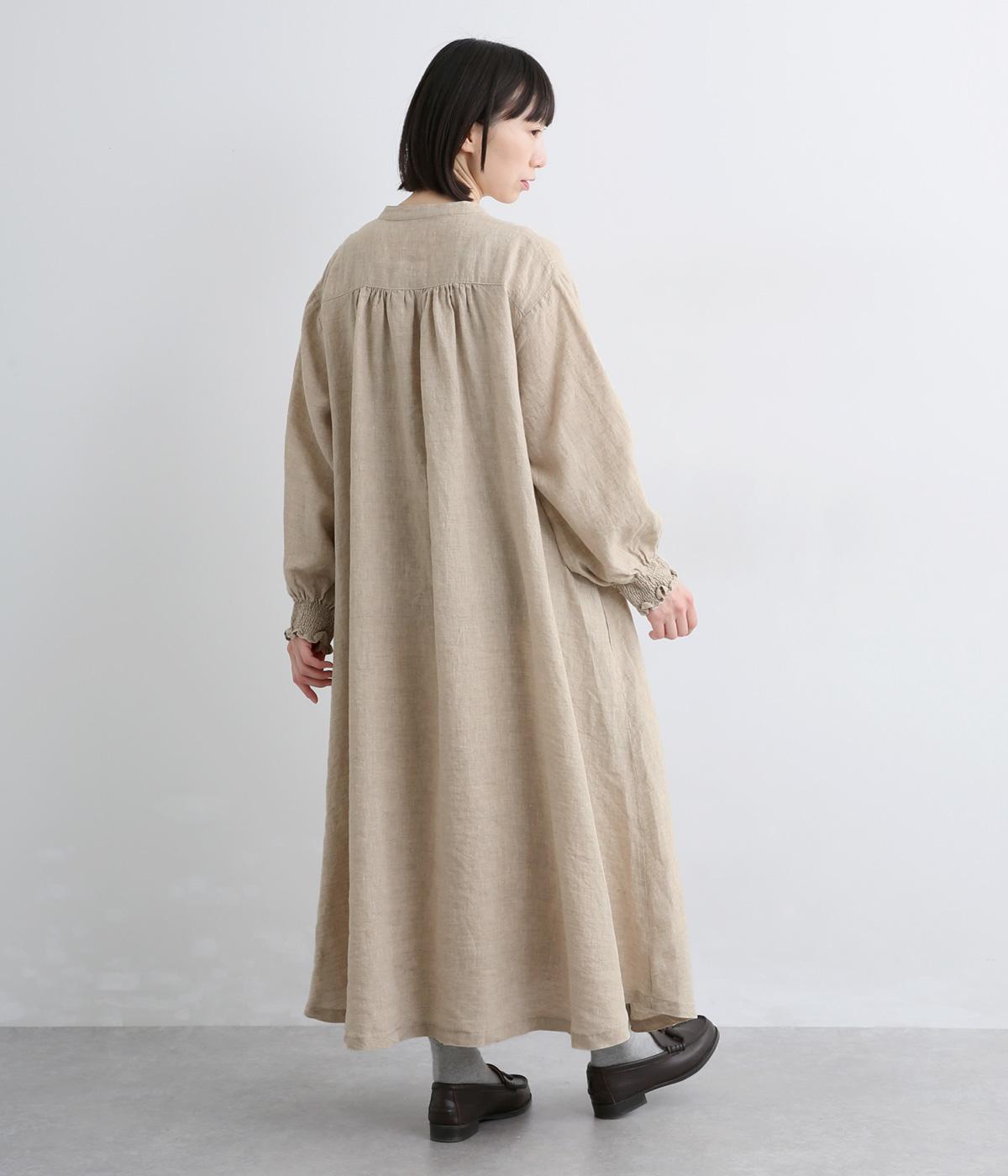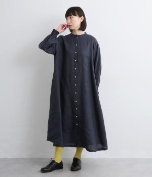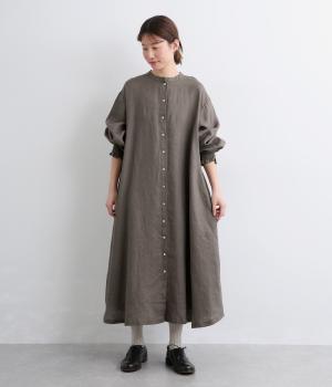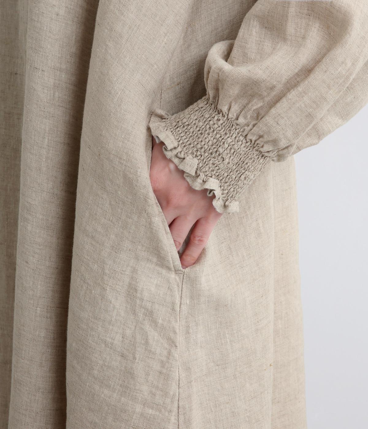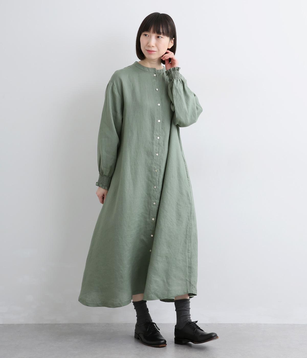 身頃はゆったりとシンプルに仕立て、シャーリングを寄せた袖がシンプルなワンピースをぐっとロマンティックに魅せます。袖口はゴム仕様になっているので、たくし上げてさらにボリュームを持たせても◎。
