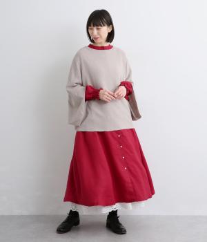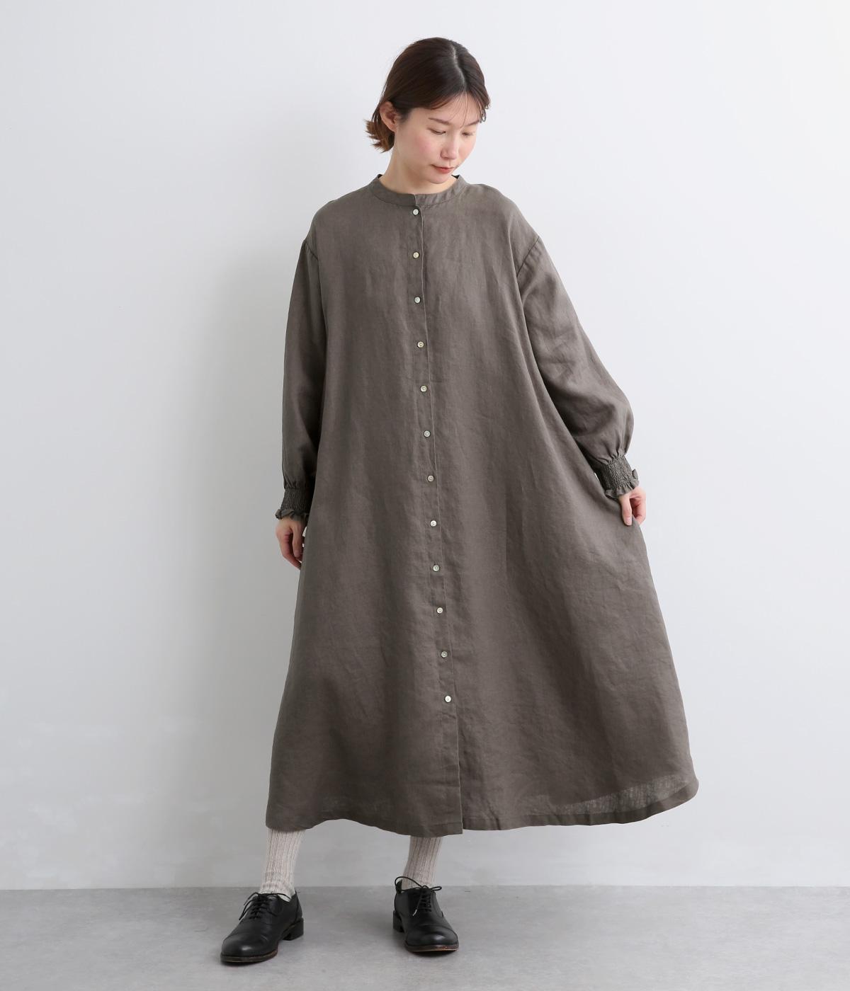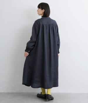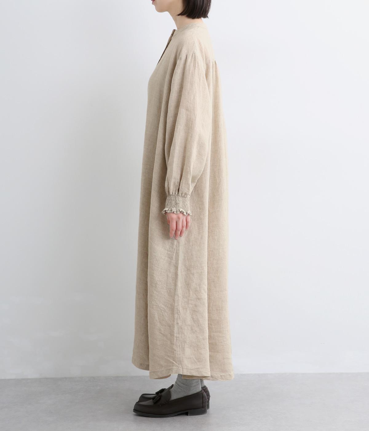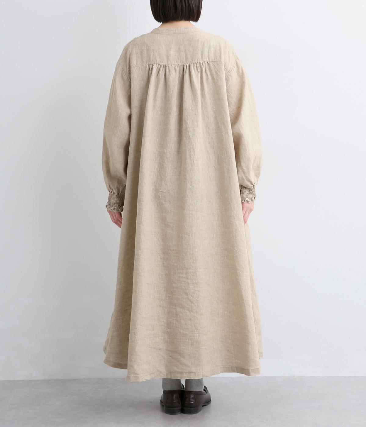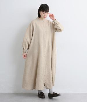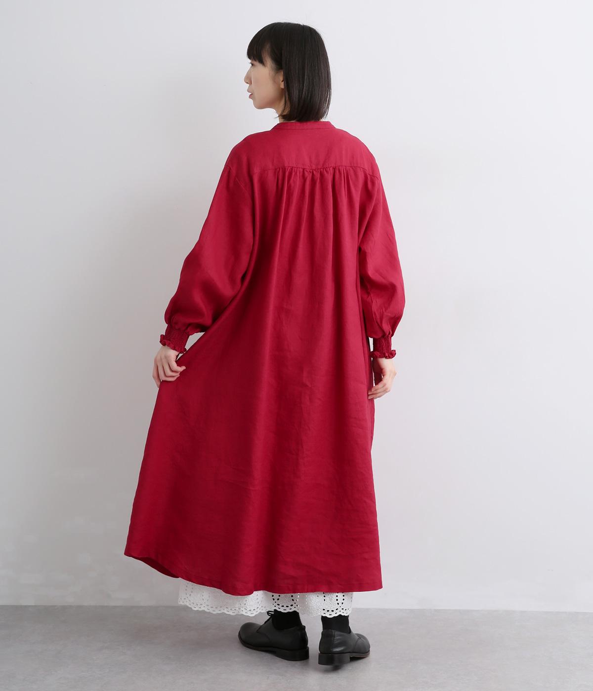 身頃はゆったりとシンプルに仕立て、シャーリングを寄せた袖がシンプルなワンピースをぐっとロマンティックに魅せます。袖口はゴム仕様になっているので、たくし上げてさらにボリュームを持たせても◎。