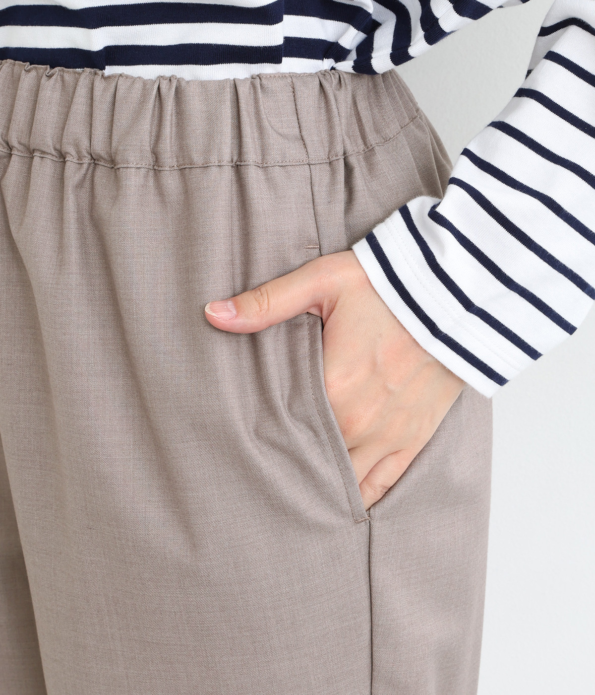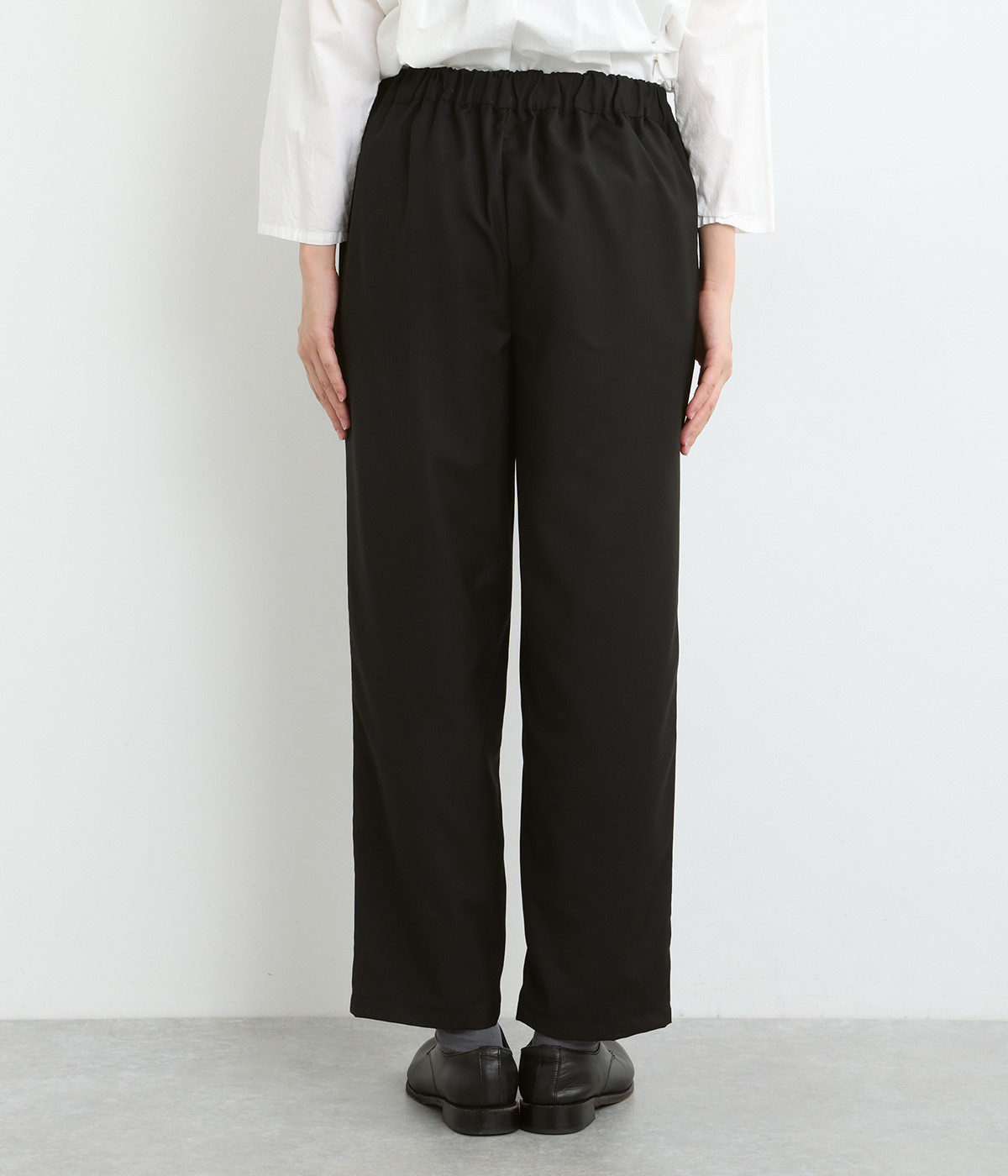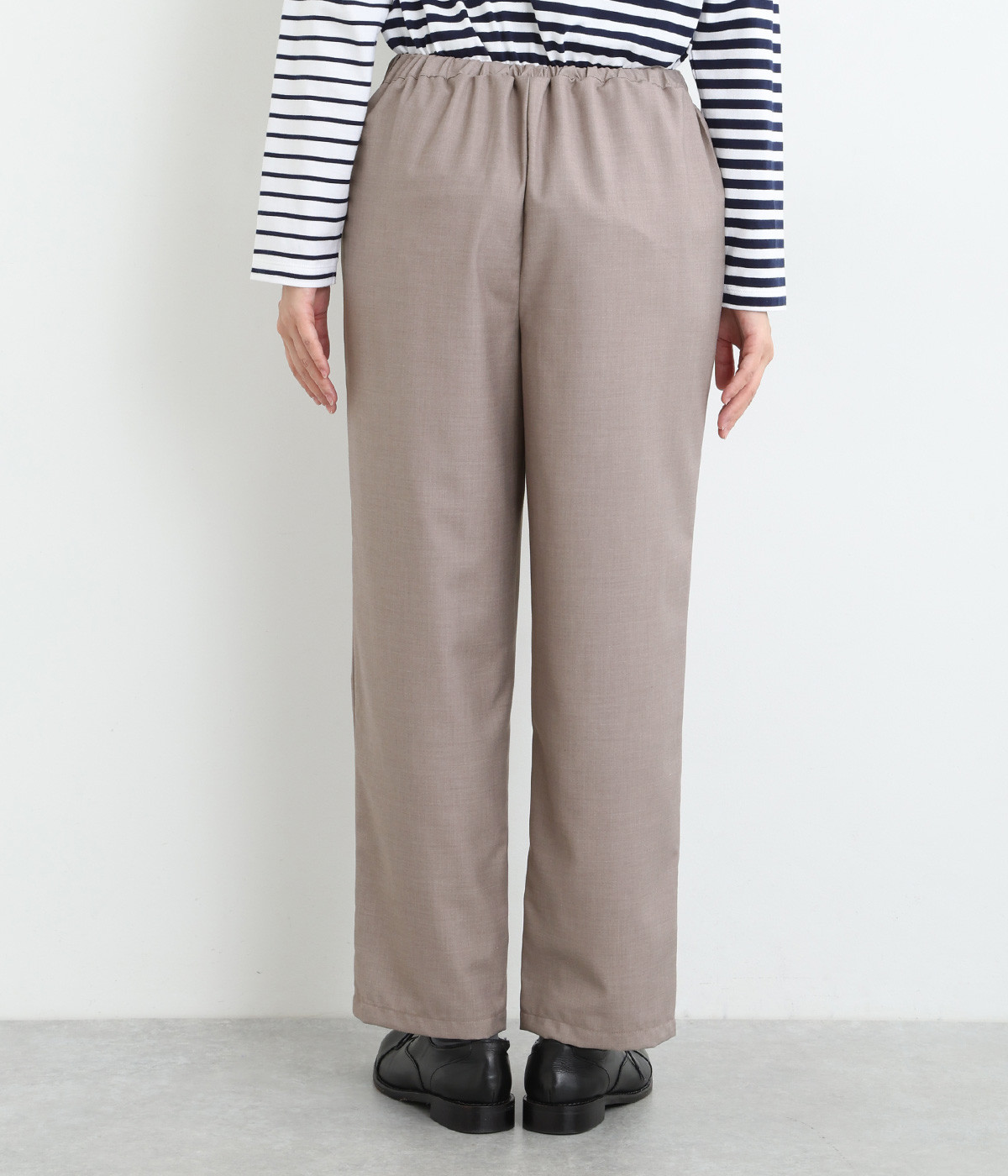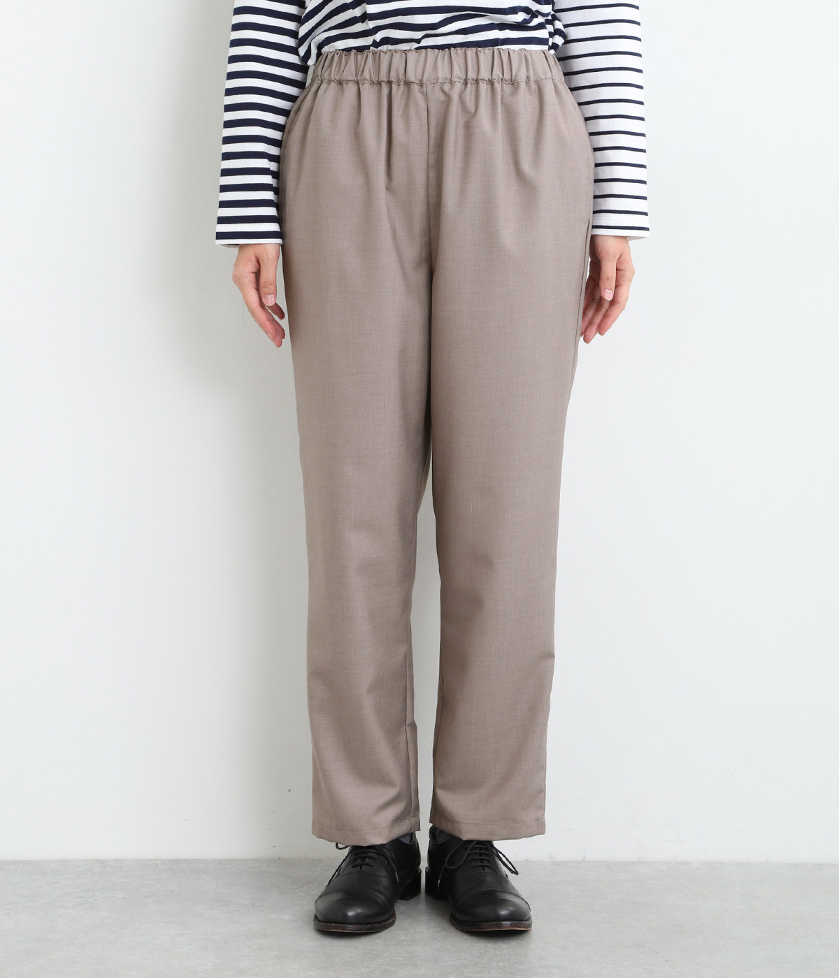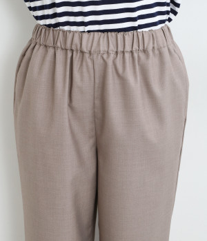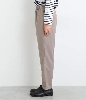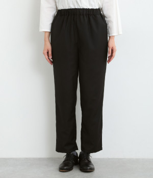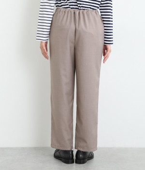 きれいめのパンツながらもウエストは総ゴムで楽な履き心地、内側の紐でフィット感の調整も可能